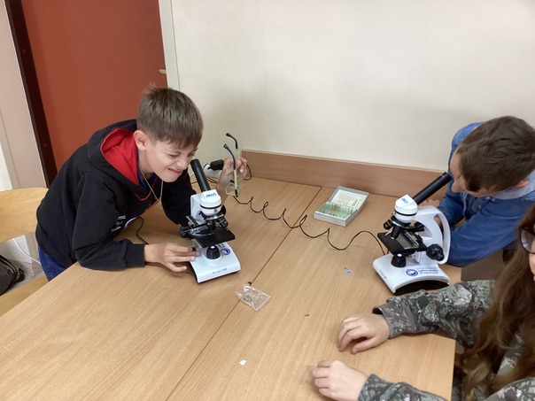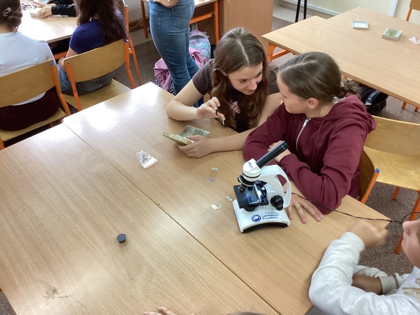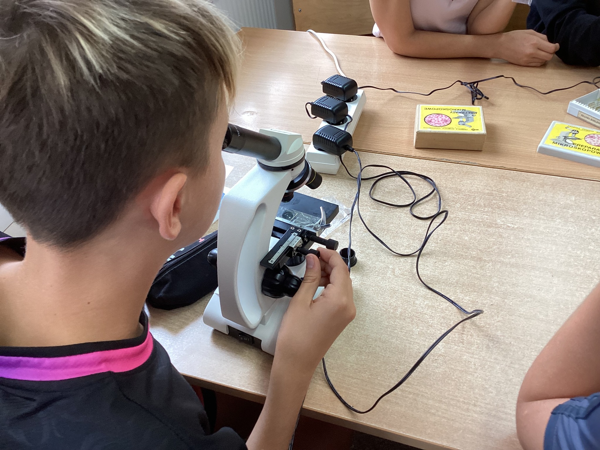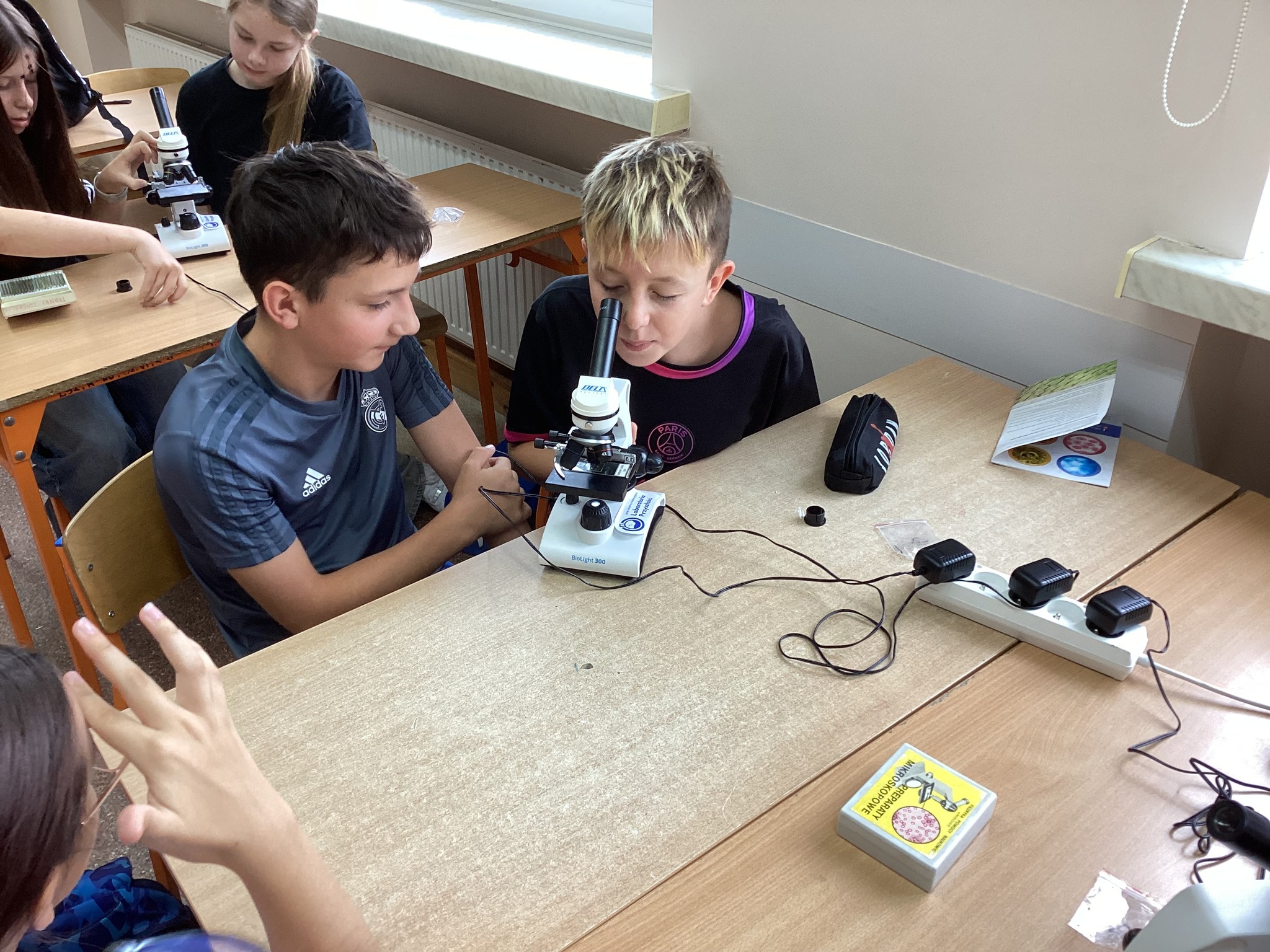Obserwacje mikroskopowe w klasie 6c podczas lekcji biologii