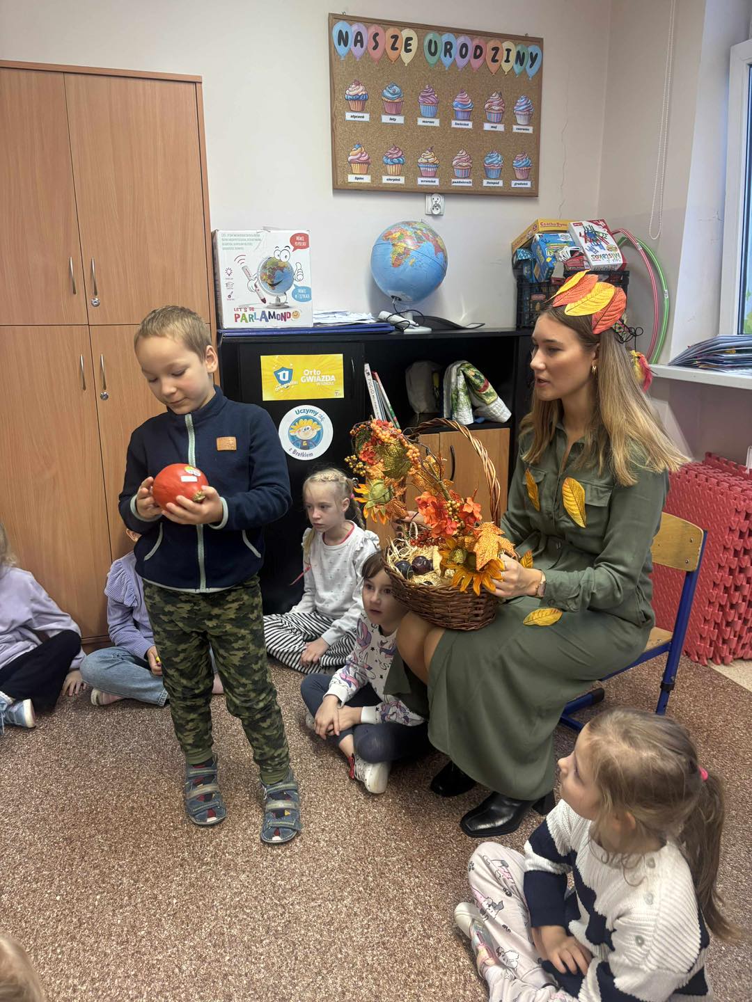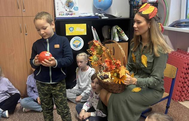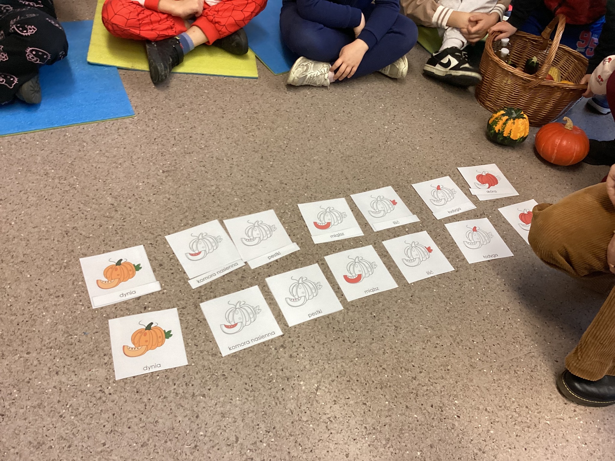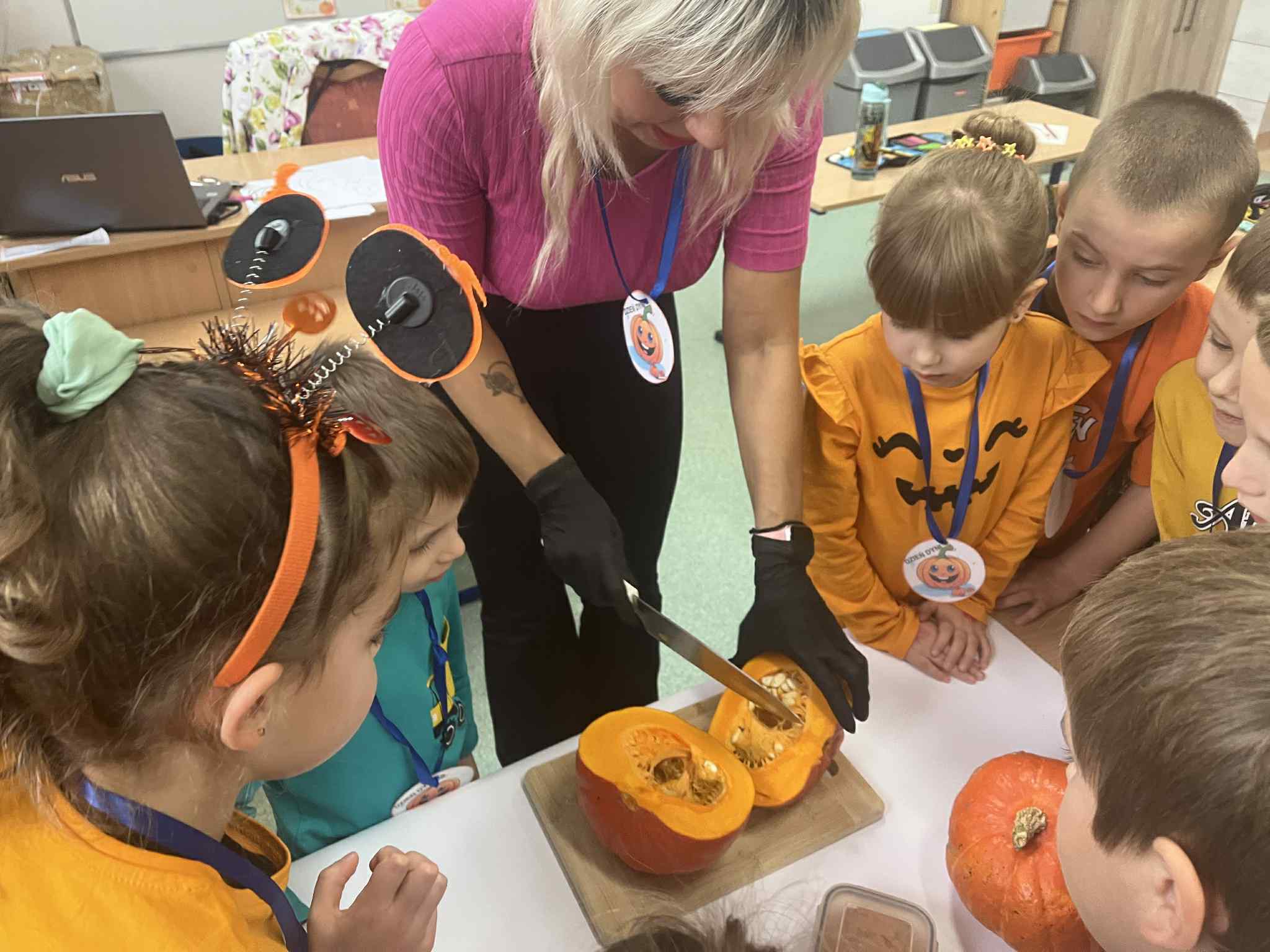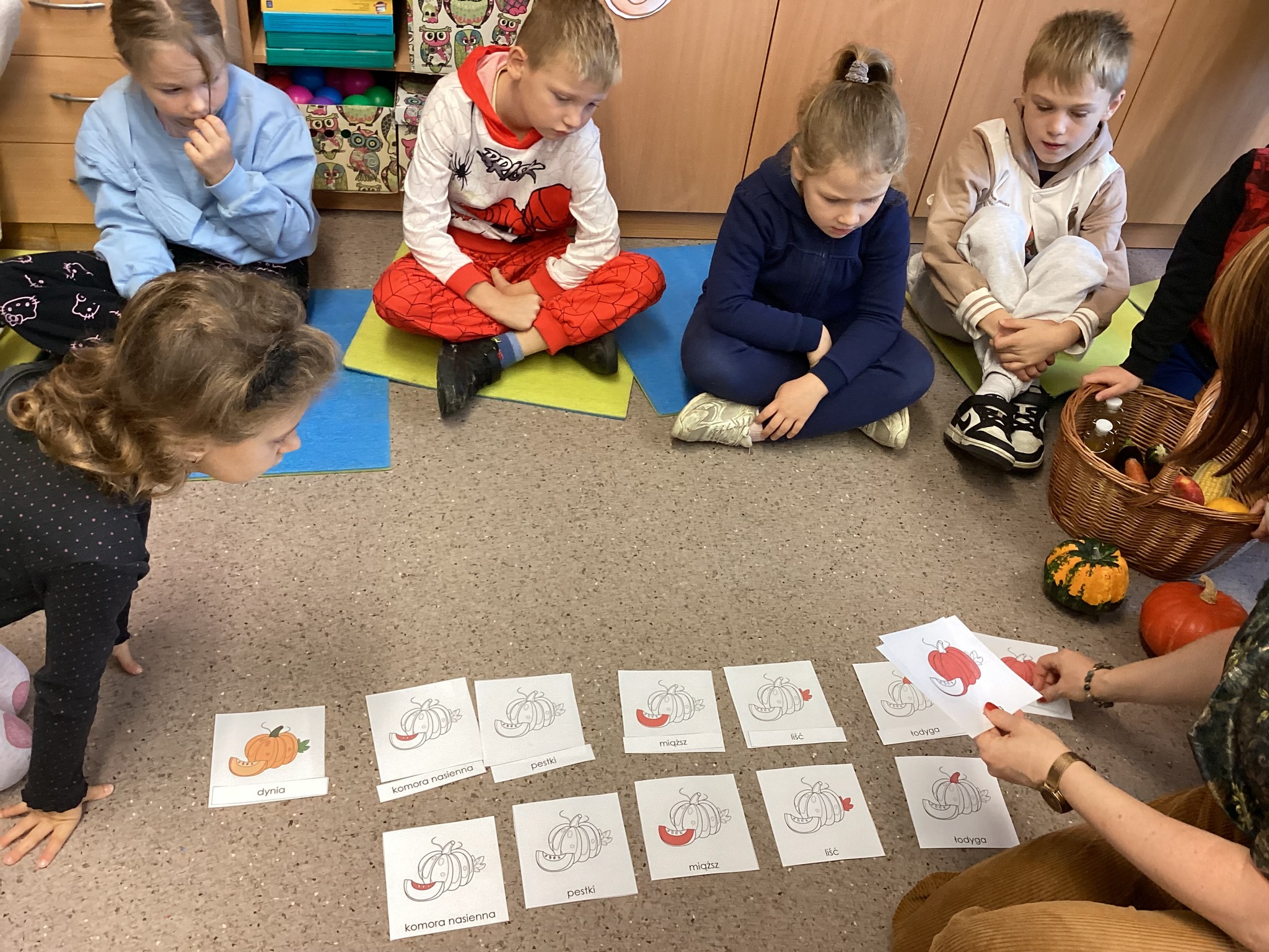 Klasa 1a poznaje jesienne warzywa i owoce oraz budowę dyni