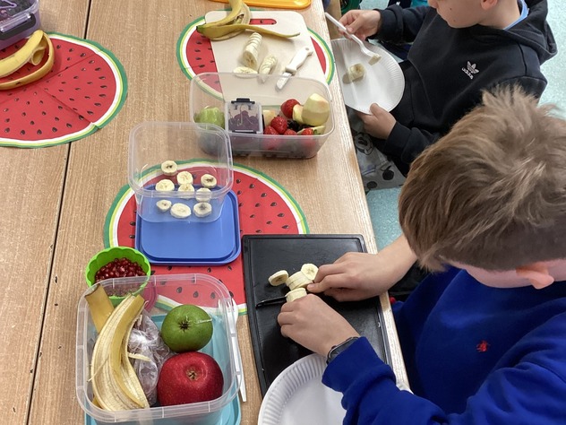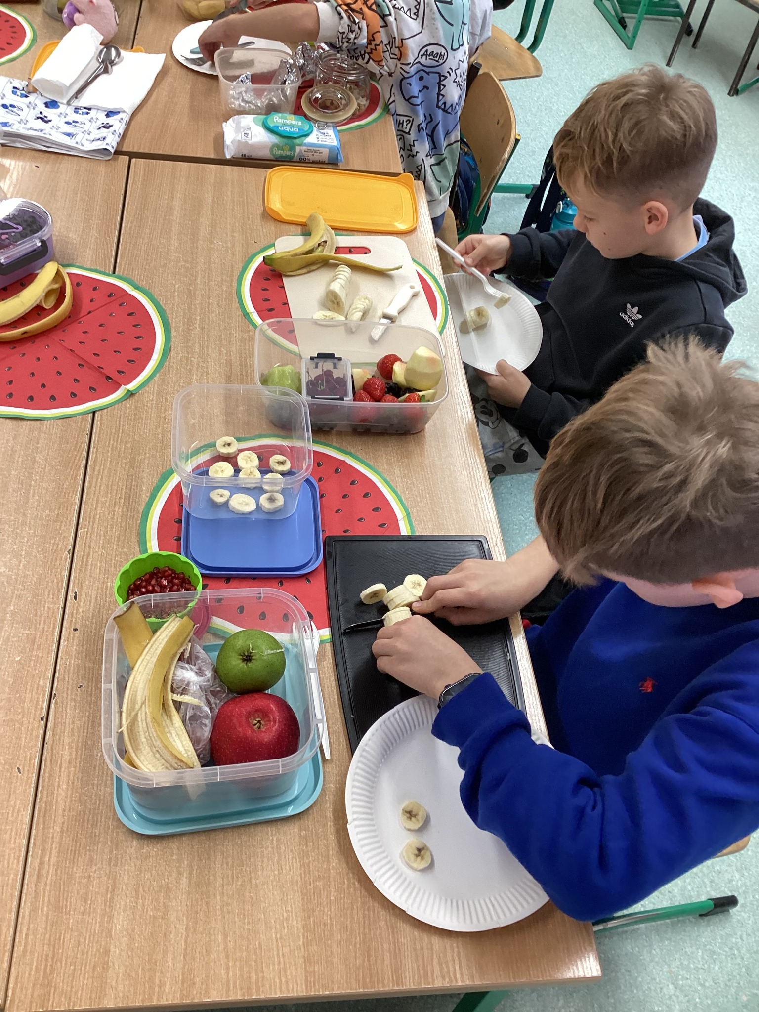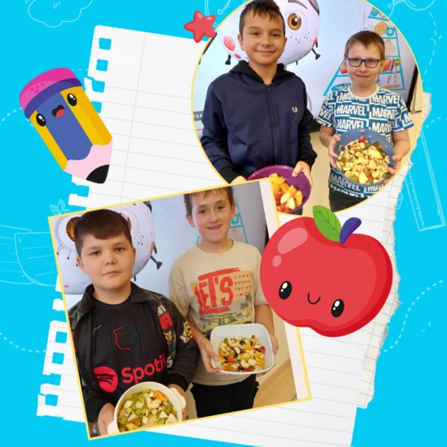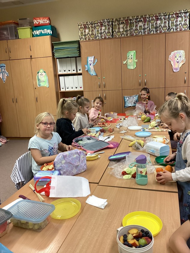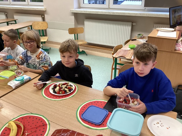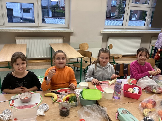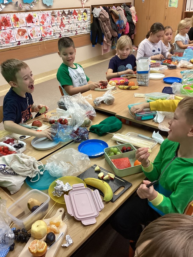 W ramach realizacji programu "Program dla szkół" uczniowie klas pierwszych przygotowali owocowe szaszłyki. Celem programu jest zmiana nawyków żywieniowych wśród najmłodszych poprzez zwiększenie udziału warzyw i owoców.