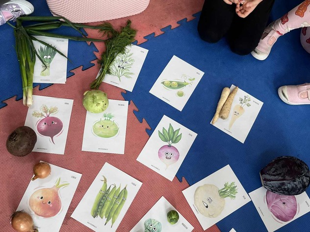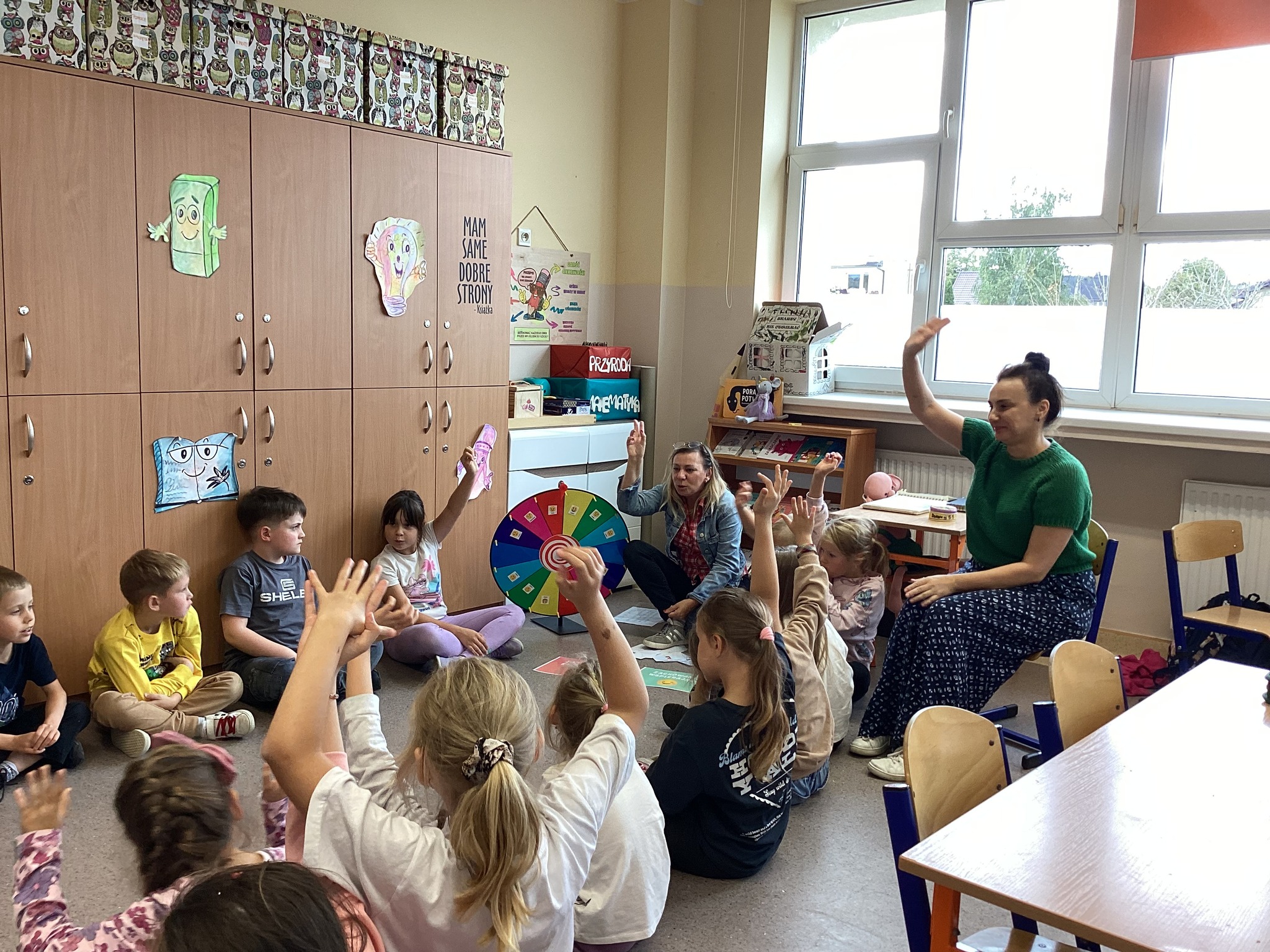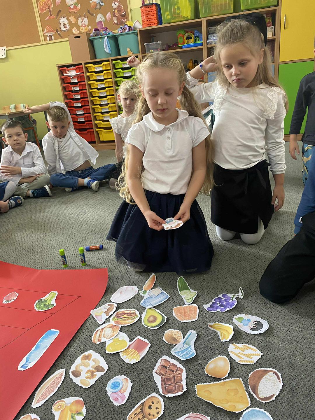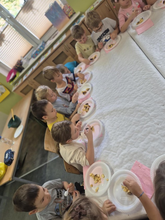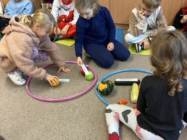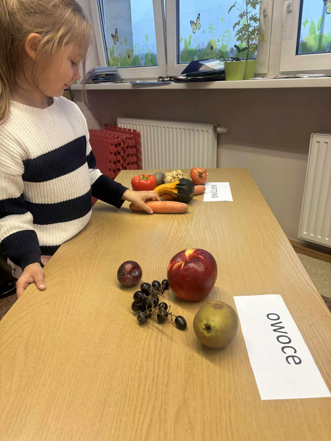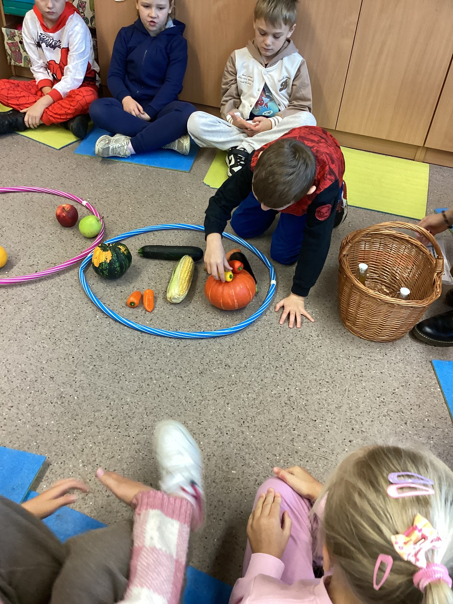 Klasa 0b omawiała temat związany ze zdrowym odżywianiem. Dzieci wysłuchały wiersza Jana Brzechwy pt. „Na straganie”, dzięki któremu poznały różne warzywa i ich znaczenie w codziennej diecie. Następnie uczniowie dopasowywali prawdziwe warzywa do ich ilustracji, utrwalając w ten sposób ich wygląd i nazwy. W ramach zabaw matematycznych przeliczali zebrane warzywa, porównywali ich wielkość i kolory, a także omawiali ich cechy charakterystyczne – kształt, kolor, smak i zapach.Zajęcia miały na celu rozwijanie wiedzy o zdrowym stylu życia, wzbogacanie słownictwa oraz kształtowanie nawyków prozdrowotnych poprzez zabawę i bezpośredni kontakt z naturalnymi produktami