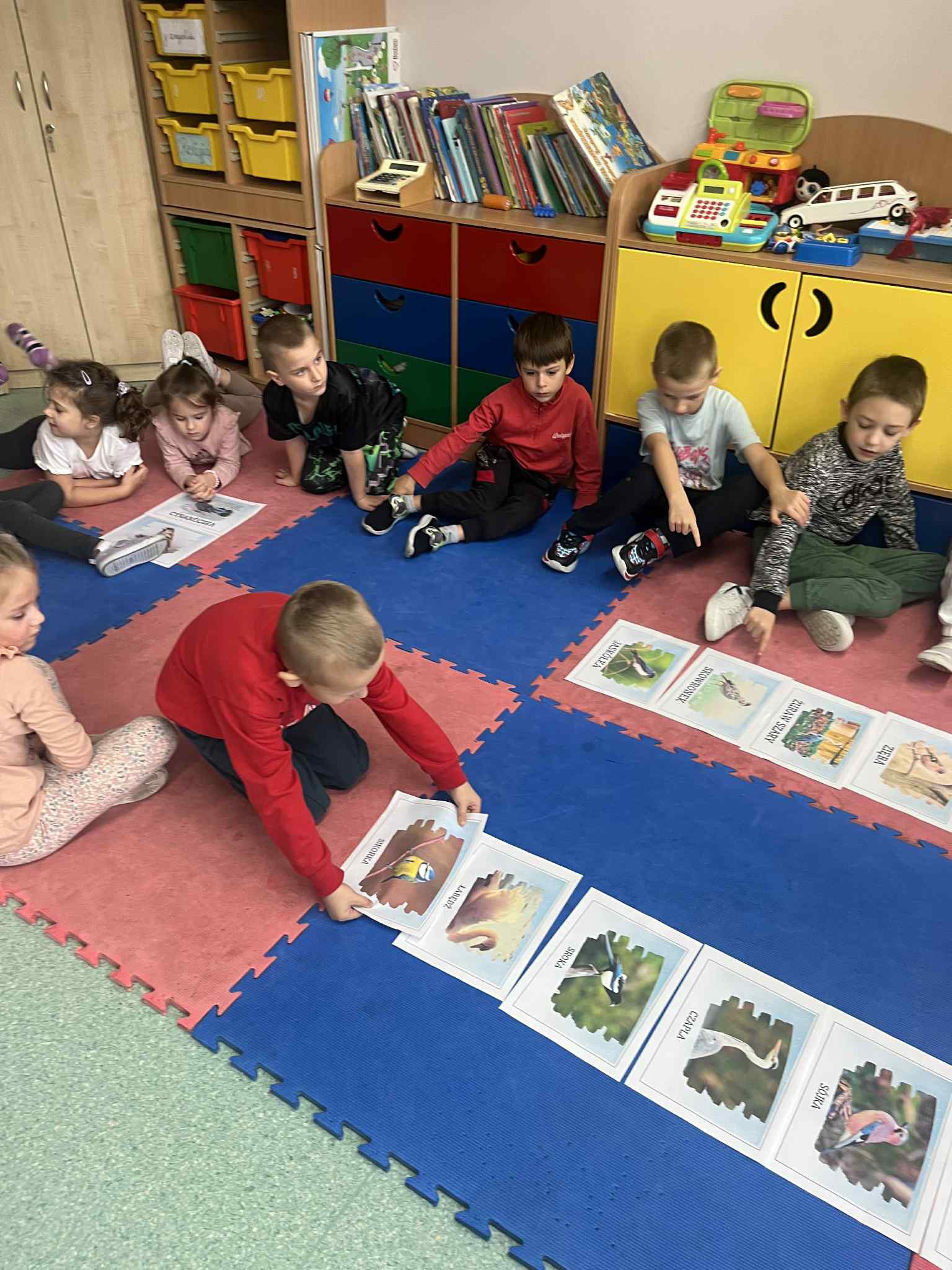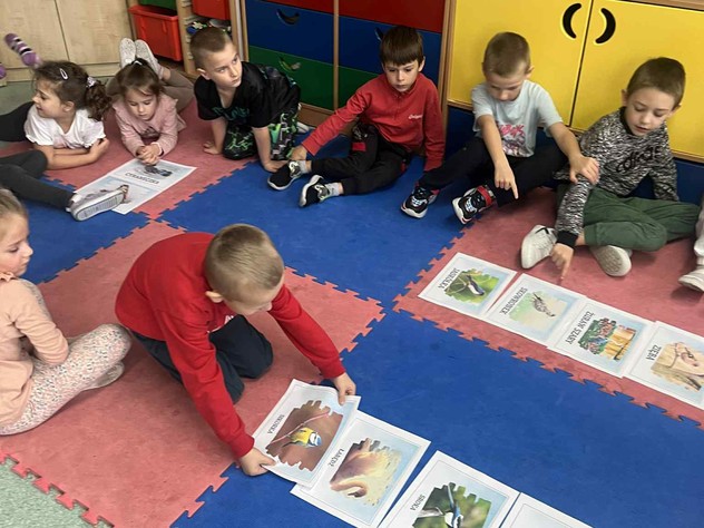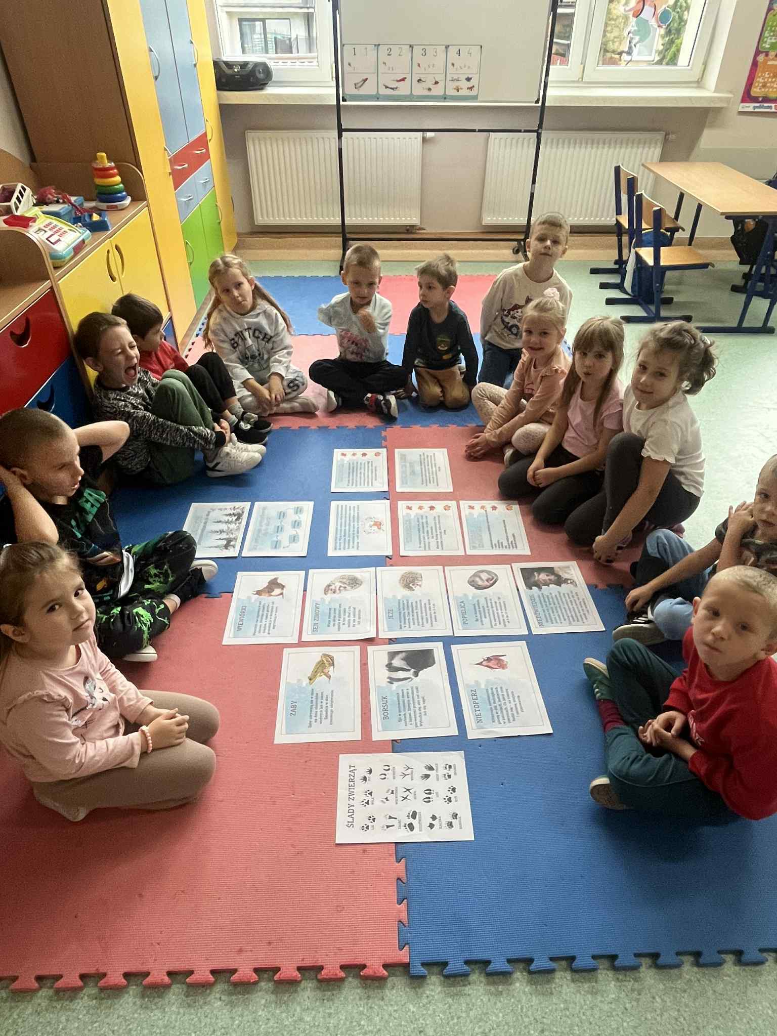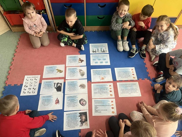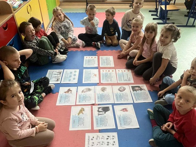 W poniedziałek 27.10.2025 r. uczniowie klasy 0b rozmawiali o tym, jak zwierzęta przygotowują się do zimy. Dzieci poznały różne sposoby przetrwania zwierząt w chłodnych miesiącach – dowiedziały się, które z nich zapadają w sen zimowy, które gromadzą zapasy, a które odlatują do ciepłych krajów.Podczas zajęć dzieci rozróżniały i przeliczały zwierzęta przedstawione na ilustracjach, sortowały ptaki na te, które odlatują i te, które pozostają z nami na zimę. Dzięki zabawom dydaktycznym utrwalały wiedzę przyrodniczą, rozwijały spostrzegawczość i umiejętność logicznego myślenia.