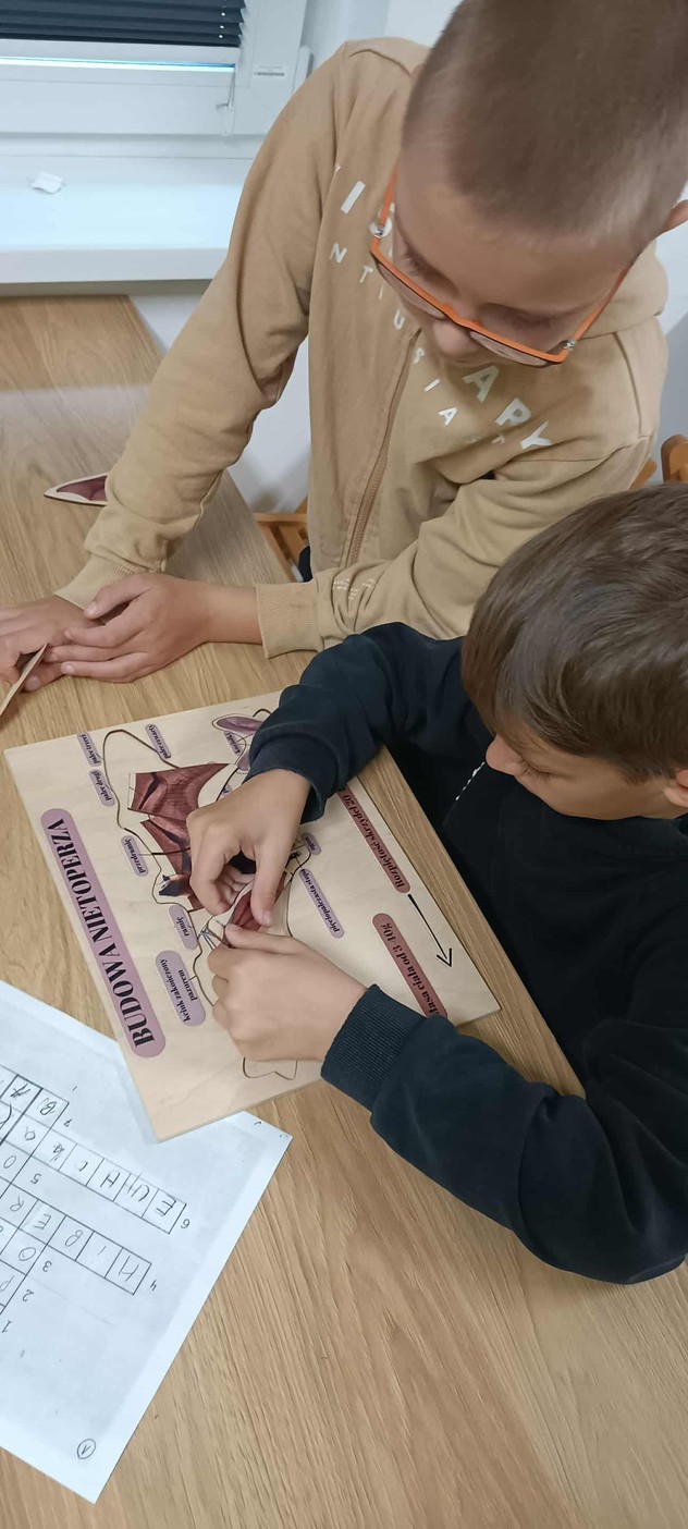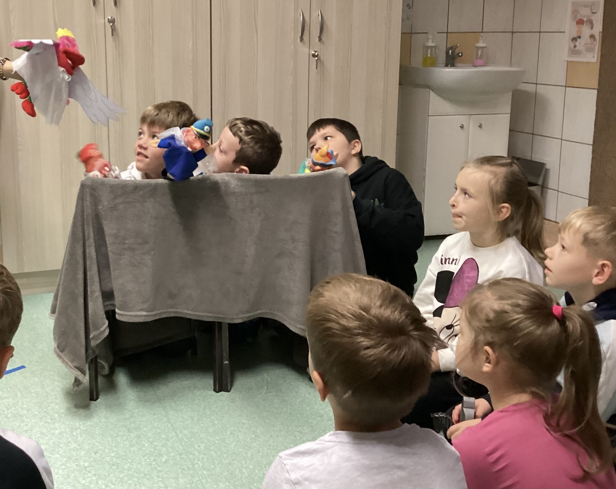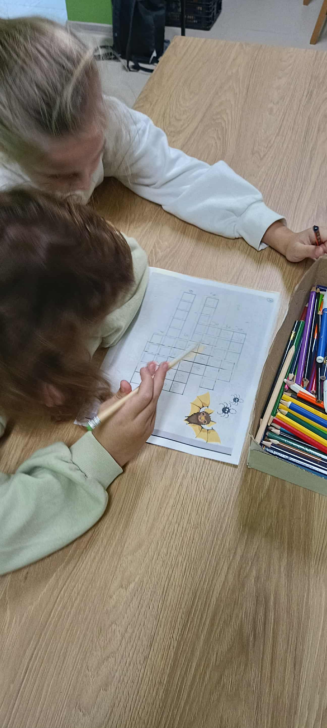W poniedziałek 27.10.2025 r. uczniowie klasy 0b rozmawiali o tym, jak zwierzęta przygotowują się do zimy. Dzieci poznały różne sposoby przetrwania zwierząt w chłodnych miesiącach – dowiedziały się, które z nich zapadają w sen zimowy, które gromadzą zapasy, a które odlatują do ciepłych krajów.Podczas zajęć dzieci rozróżniały i przeliczały zwierzęta przedstawione na ilustracjach, sortowały ptaki na te, które odlatują i te, które pozostają z nami na zimę. Dzięki zabawom dydaktycznym utrwalały wiedzę przyrodniczą, rozwijały spostrzegawczość i umiejętność logicznego myślenia.
