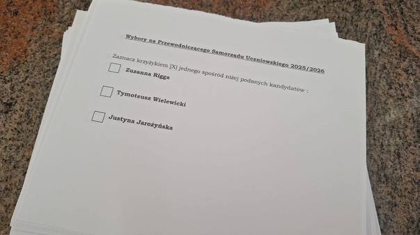 w wyborach na Przewodniczącego Samorządu Uczniowskiego. Uczniowie klas 4-8 chętnie brali udziału w głosowaniu. Nowym Przewodniczącym SU został Tymoteusz z klasy 8a, zdobywając 102 głosy. Mamy również dwie Zastępczynie - Zuzannę z klasy 7b oraz Justynę z klasy 8c. Naszym kandydatom gratulujemy i dziękujemy za tegoroczną kandydaturę. Serdecznie dziękujemy wszystkim Uczniom za tak liczne przybycie na głosowanie.