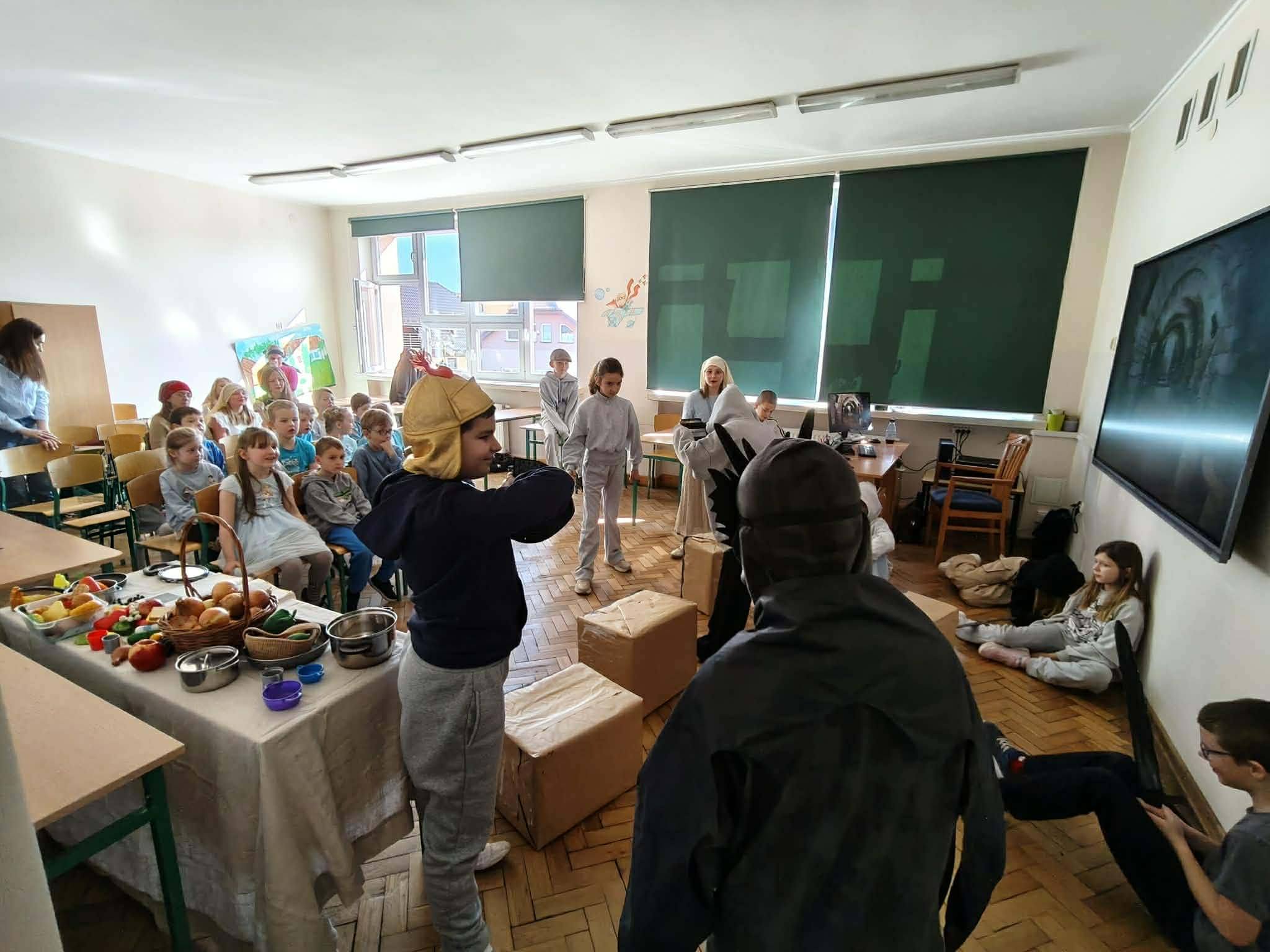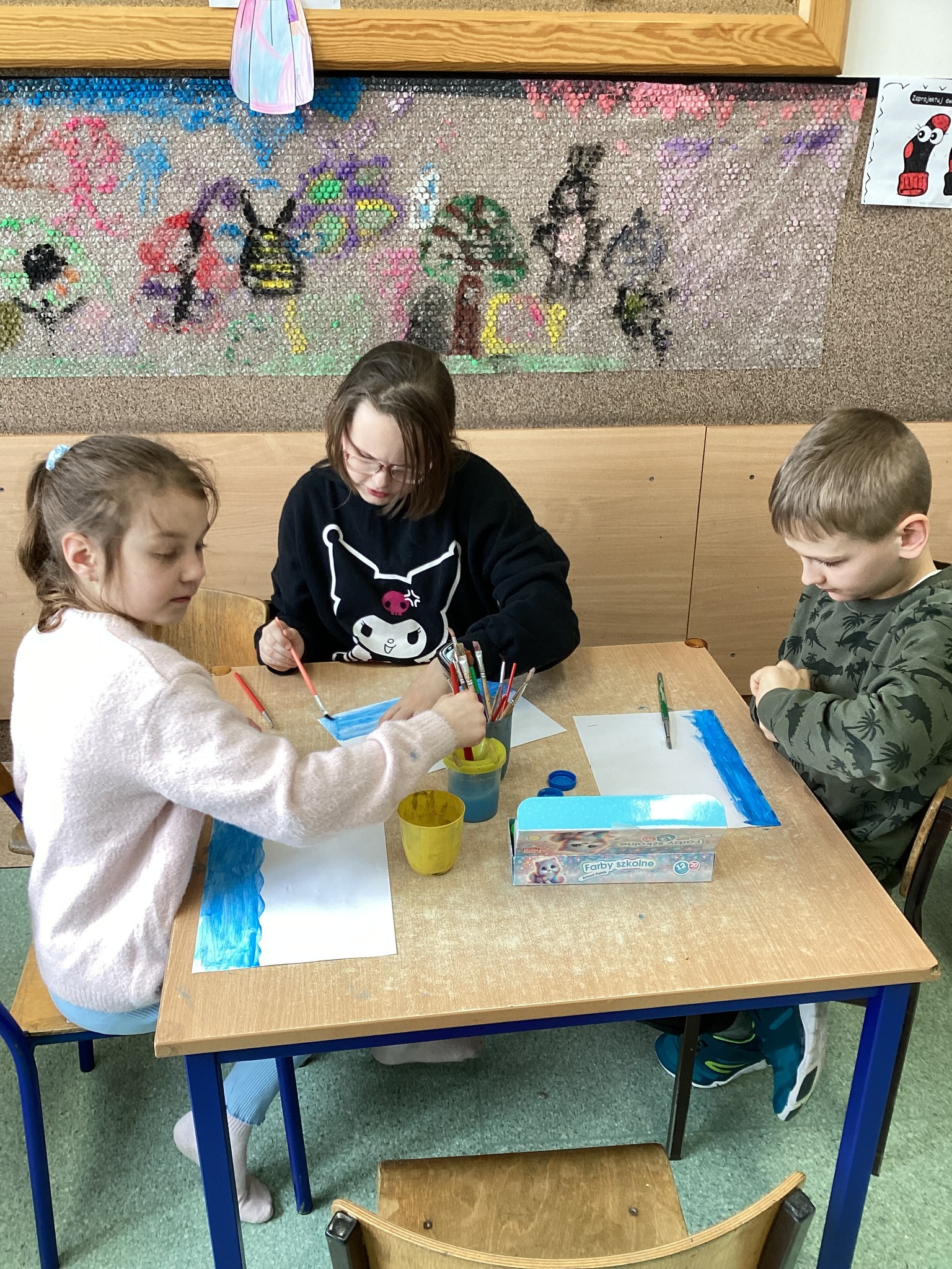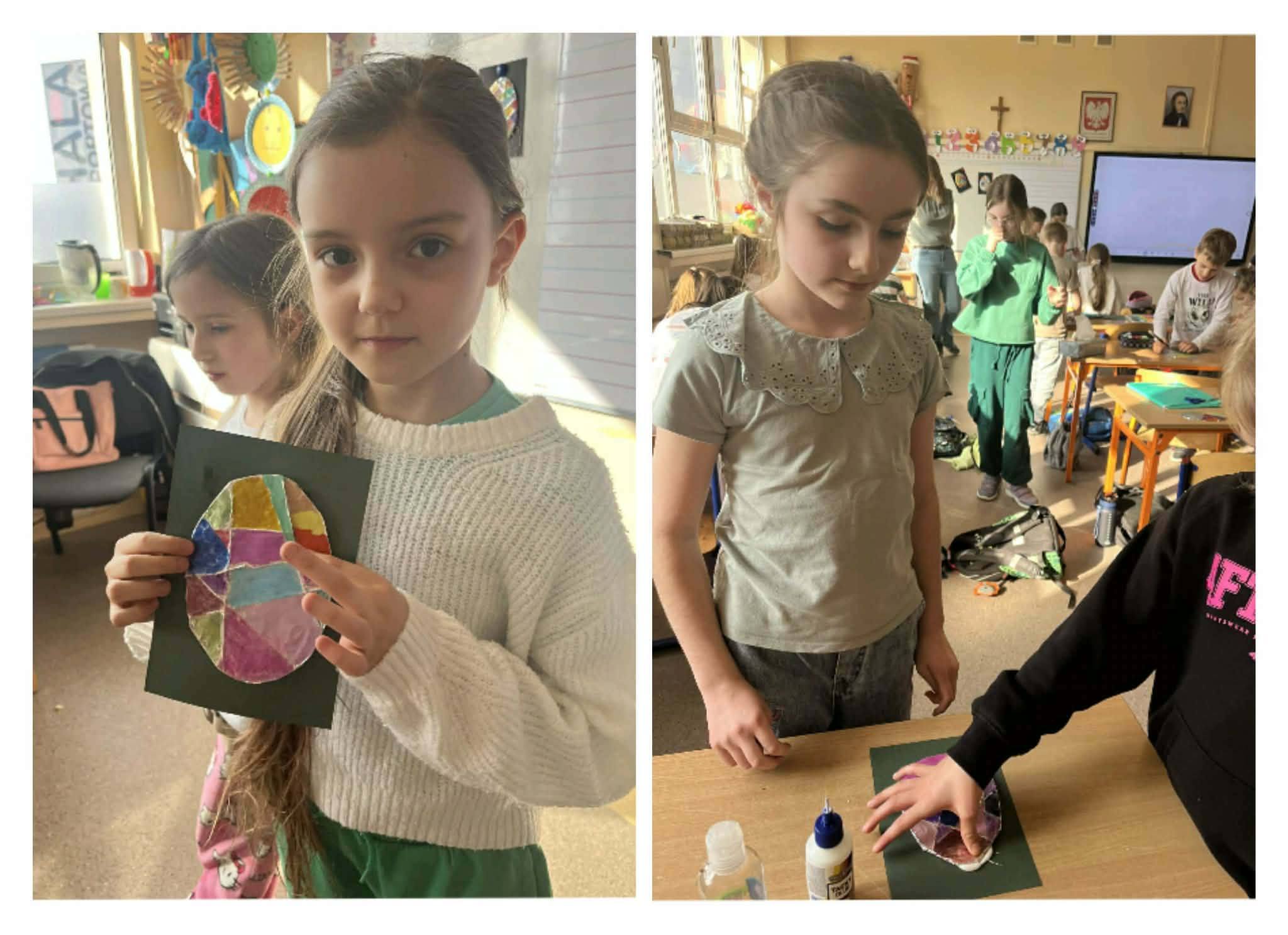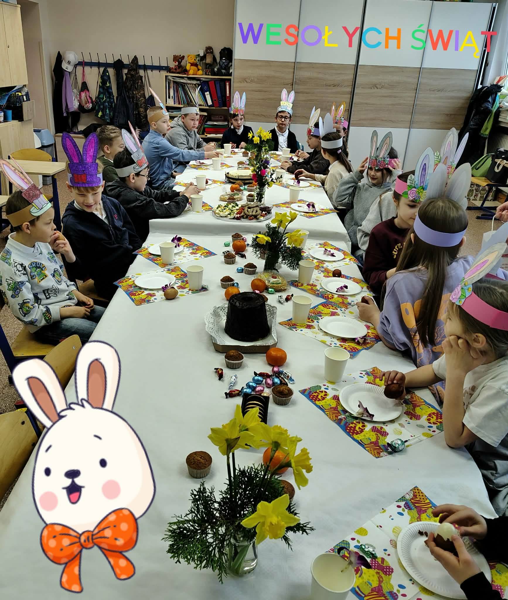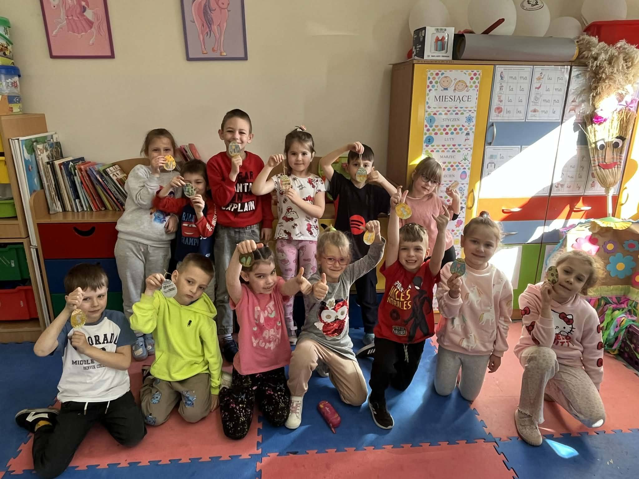 W części artystycznej uczniowie kolorowali drewniane pisanki, wykazując się dużą kreatywnością i starannością. Gotowe prace każde dziecko zabrało ze sobą do domu jako świąteczną pamiątkę.Zajęcia przebiegły w miłej, radosnej atmosferze i pozwoliły dzieciom lepiej poznać tradycje wielkanocne oraz rozwijać swoje umiejętności plastyczne i społeczne.