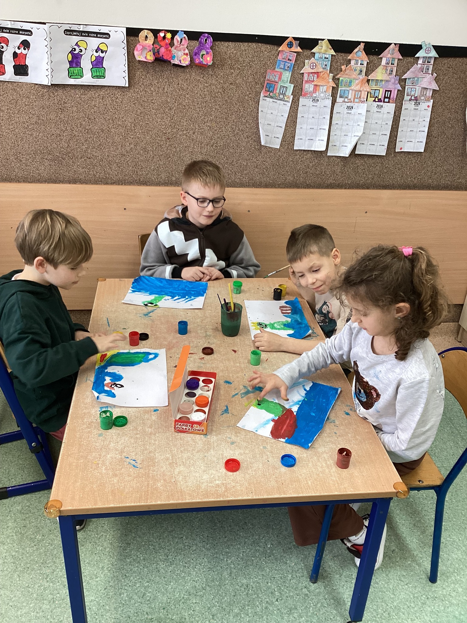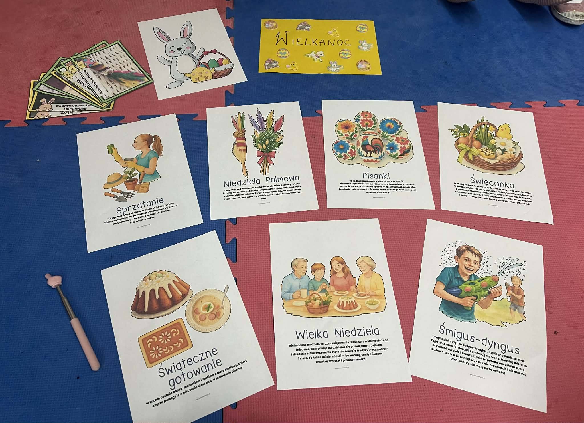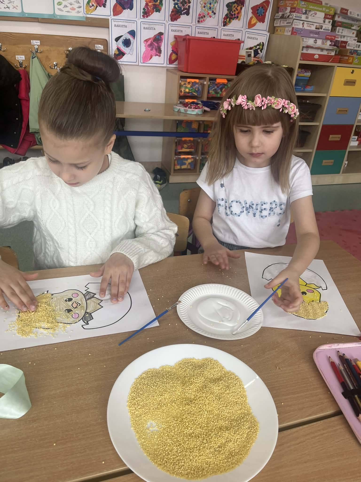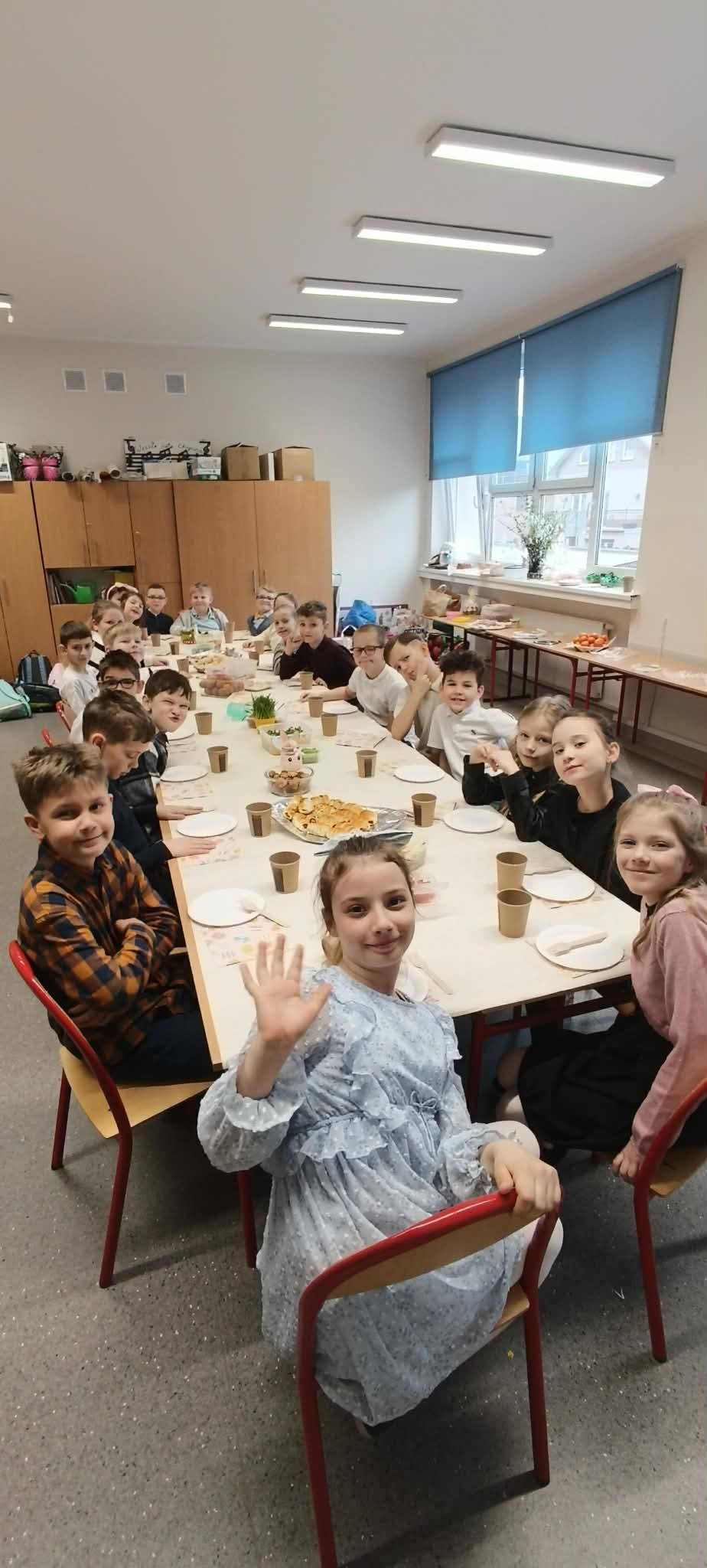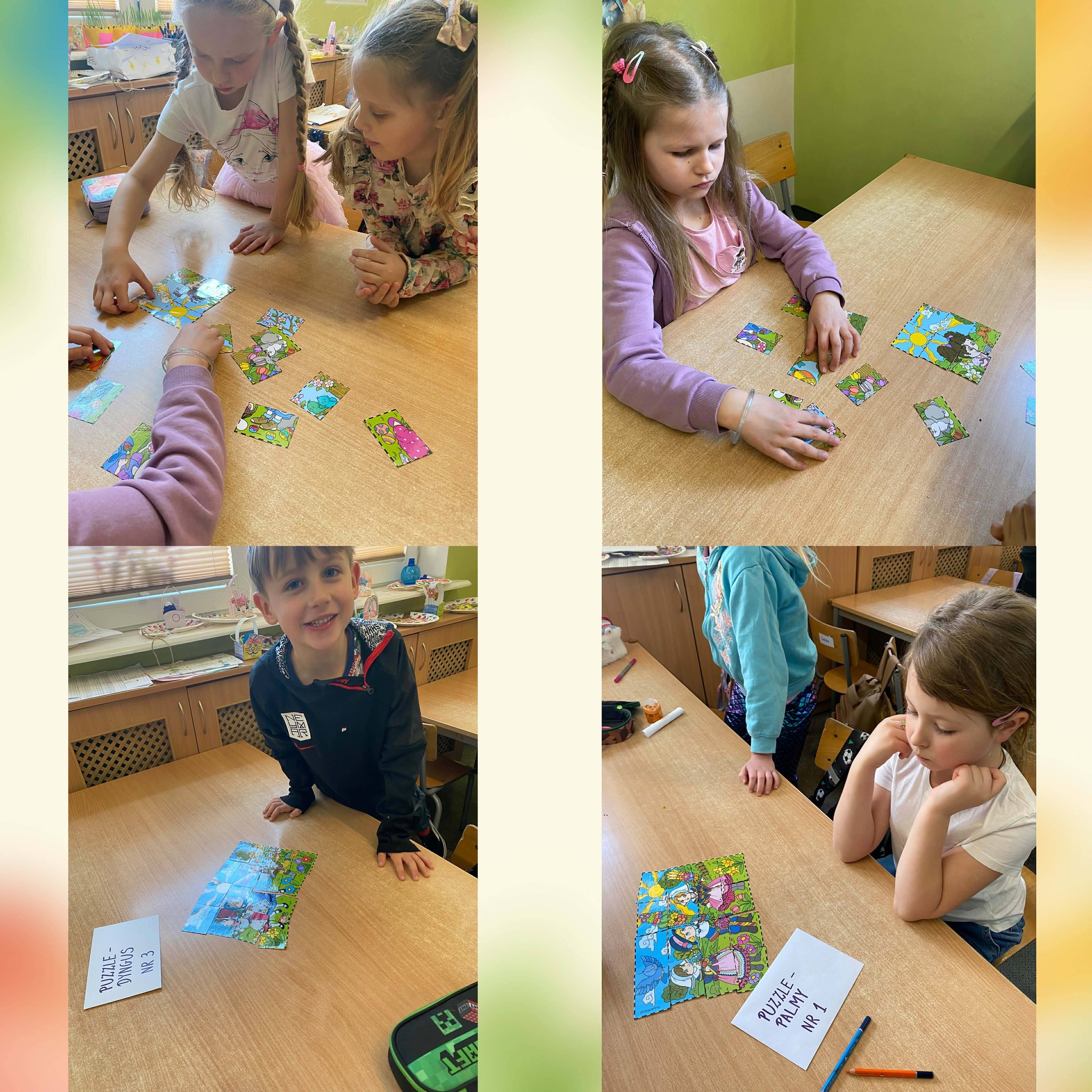 W części artystycznej uczniowie kolorowali drewniane pisanki, wykazując się dużą kreatywnością i starannością. Gotowe prace każde dziecko zabrało ze sobą do domu jako świąteczną pamiątkę.Zajęcia przebiegły w miłej, radosnej atmosferze i pozwoliły dzieciom lepiej poznać tradycje wielkanocne oraz rozwijać swoje umiejętności plastyczne i społeczne.