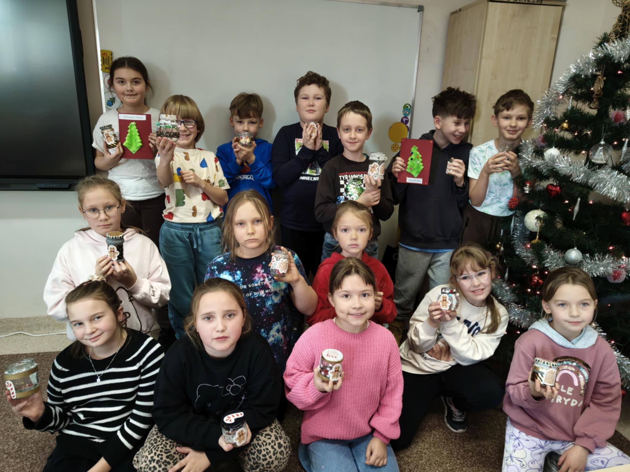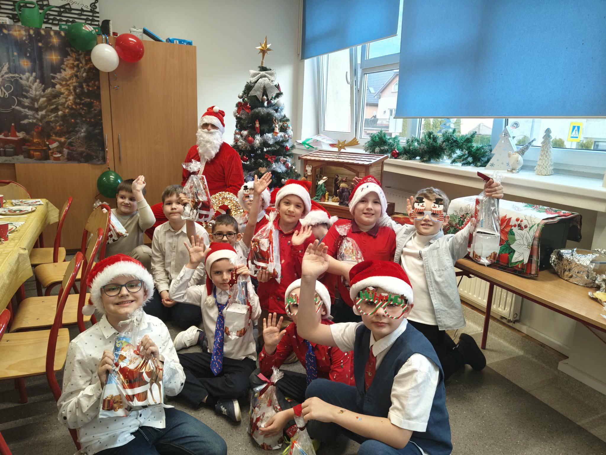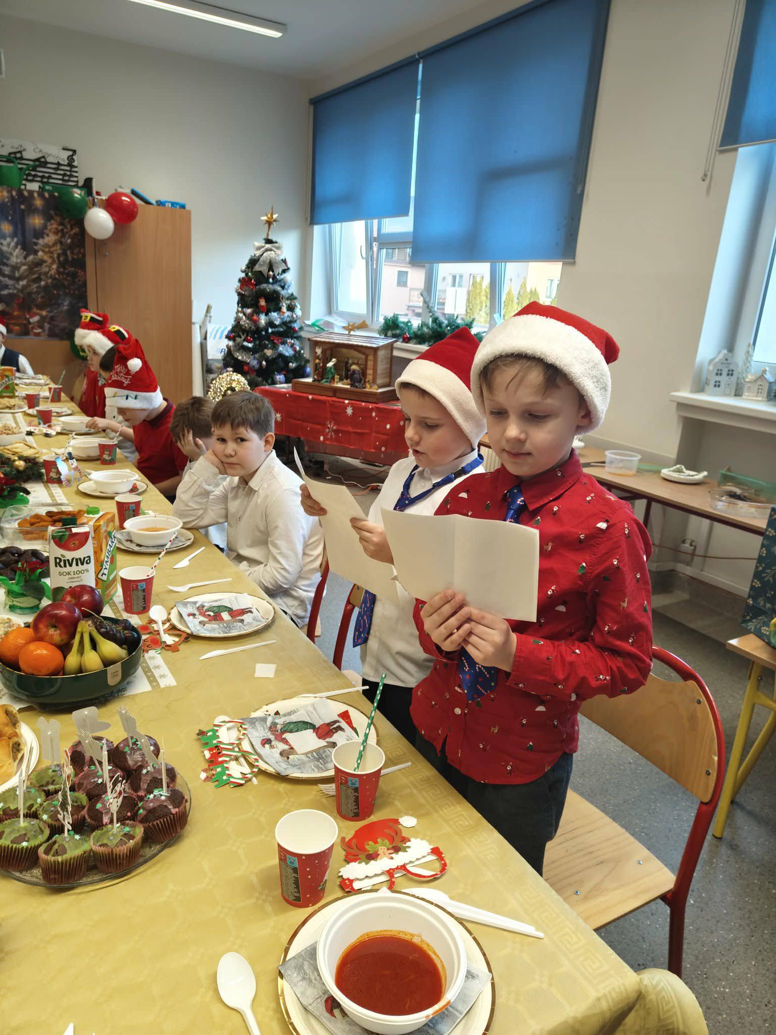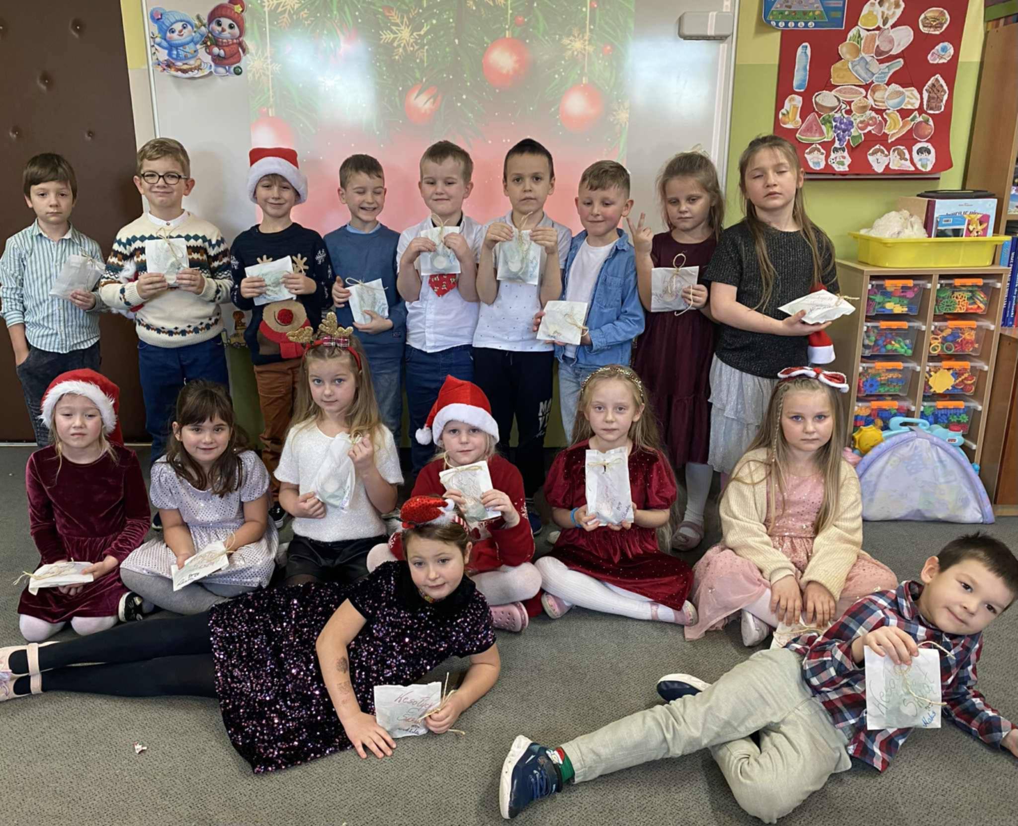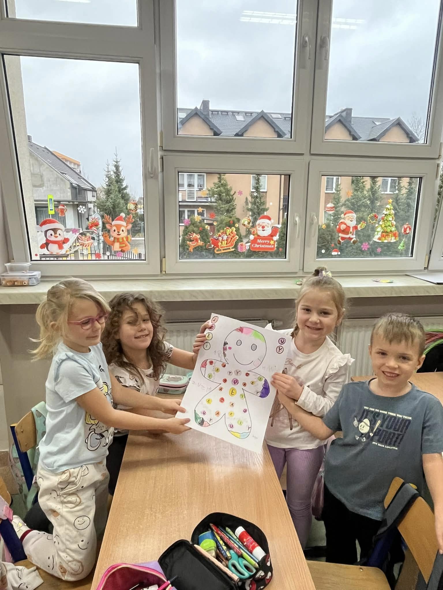Klasa 0b to grupa pełna zdolnych, ciekawych świata dzieci. Niektórzy z nich już potrafią czytać i z dużym zaangażowaniem rozwijają swoje umiejętności. Uczniowie chętnie pomagają pani w czytaniu zagadek oraz informacji dotyczących symboli związanych ze zbliżającymi się świętami. Z zainteresowaniem poznają także tradycyjne potrawy świąteczne i ich znaczenie. Wspólna praca sprawia dzieciom wiele radości, sprzyja nauce współdziałania oraz pogłębianiu wiedzy w przyjaznej, świątecznej atmosferze. Dzieci tworzyli ozdoby świąteczne dla swoich ukochanych Rodziców.