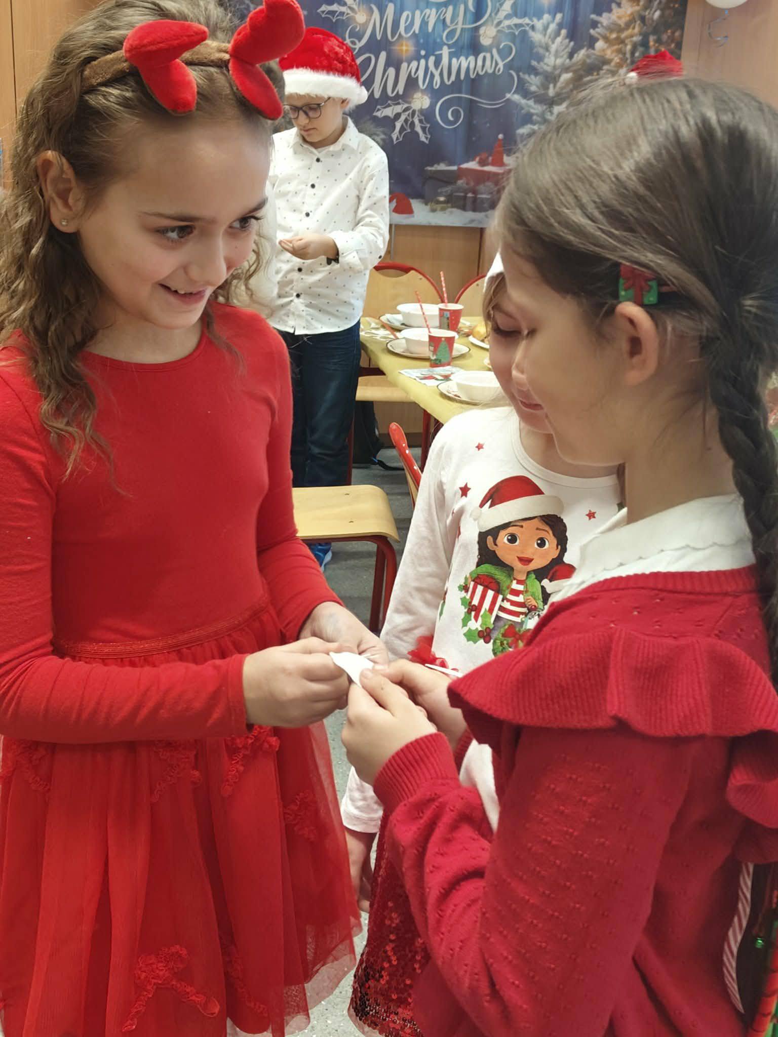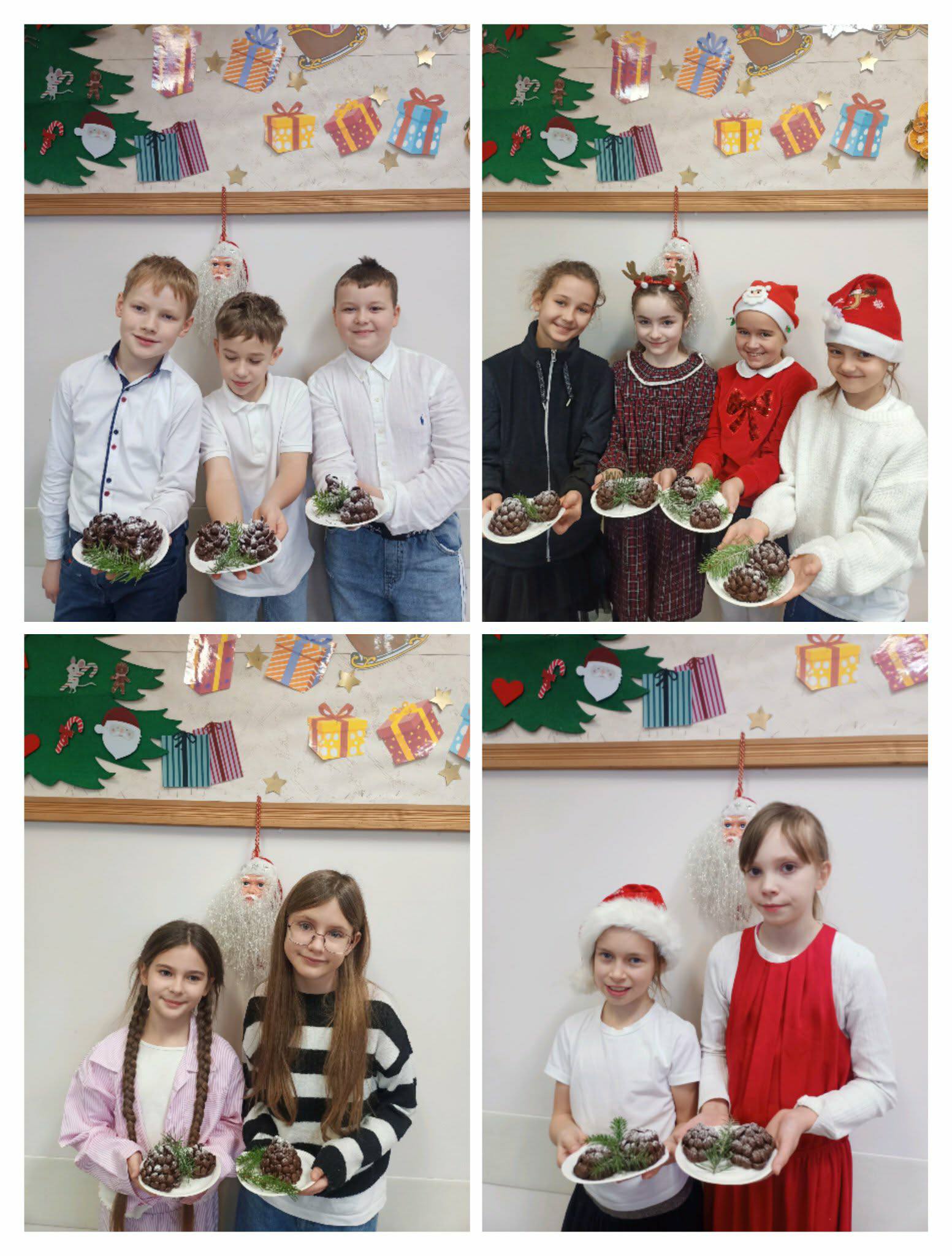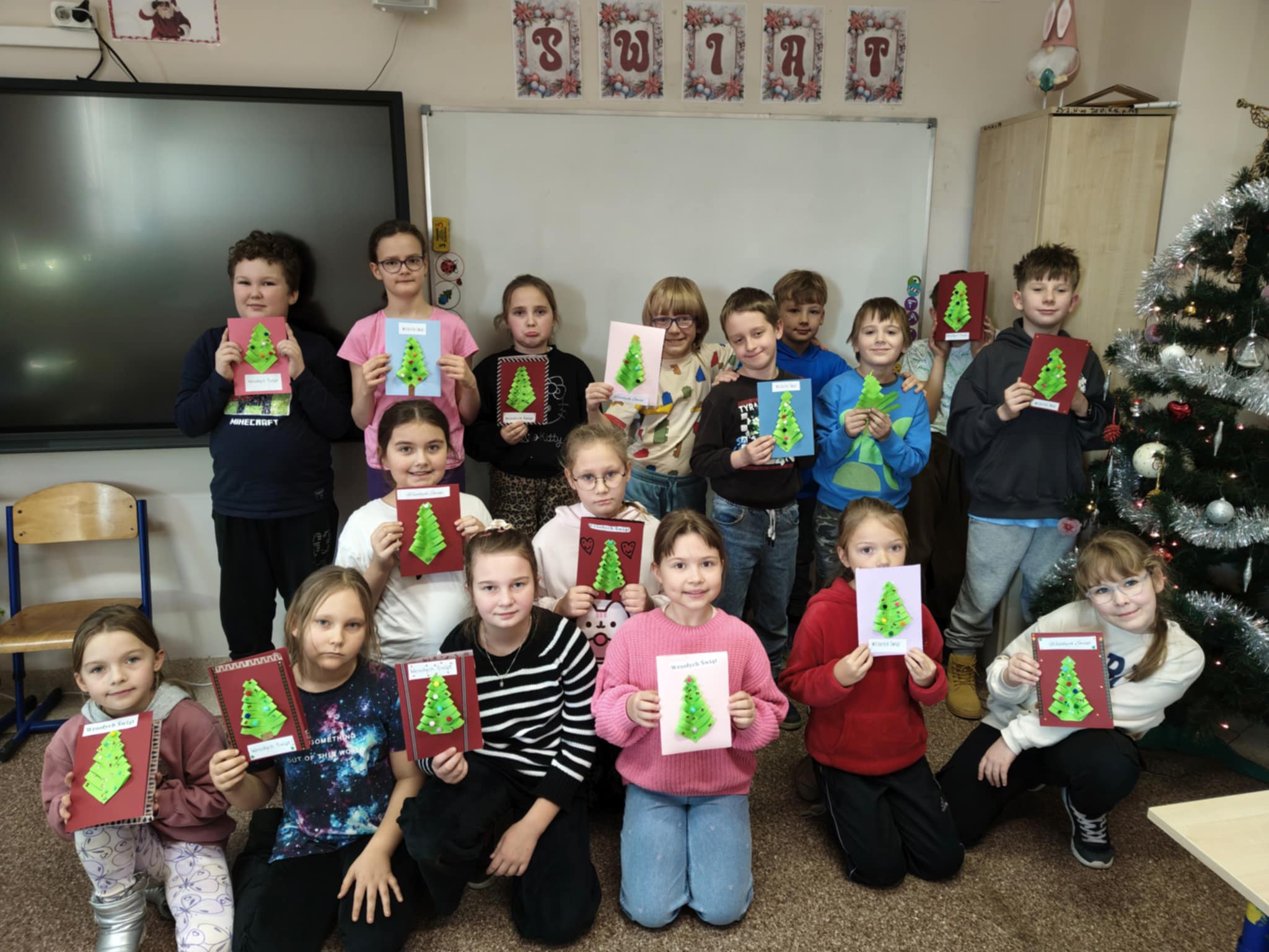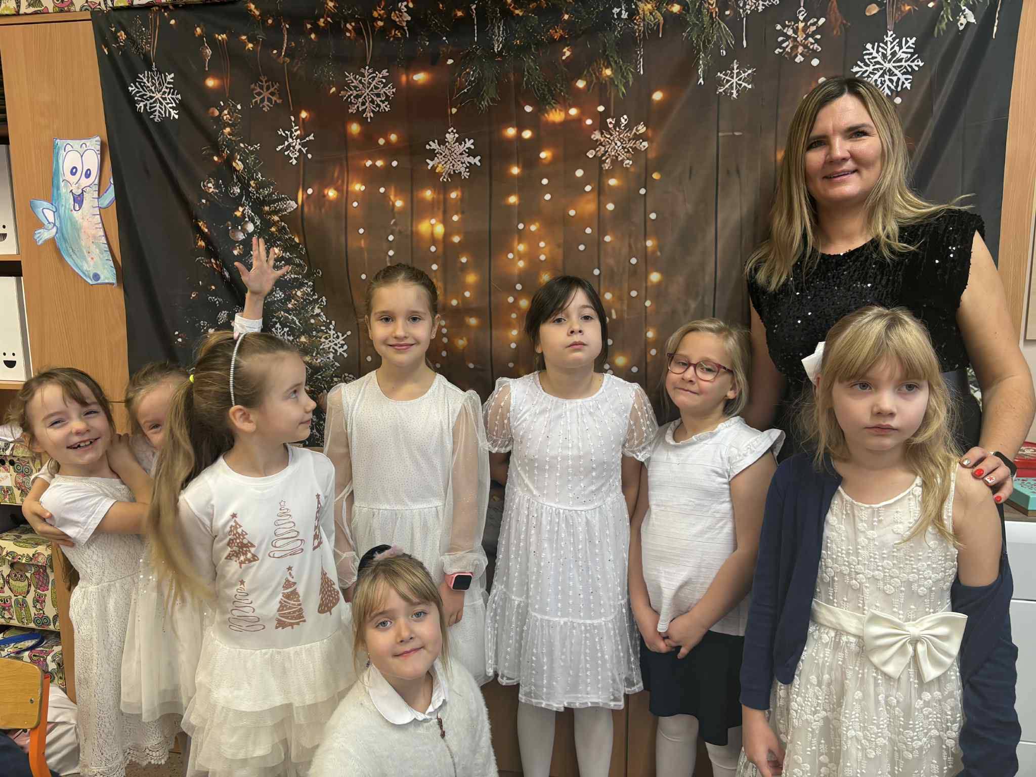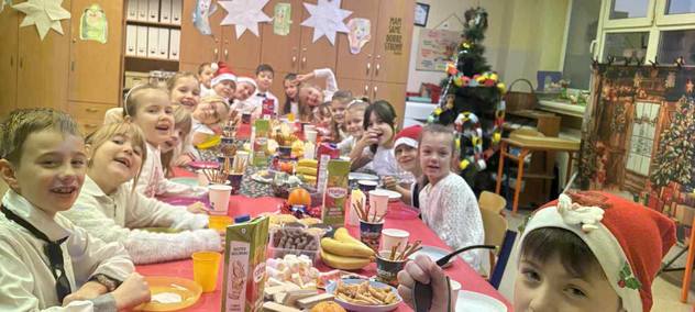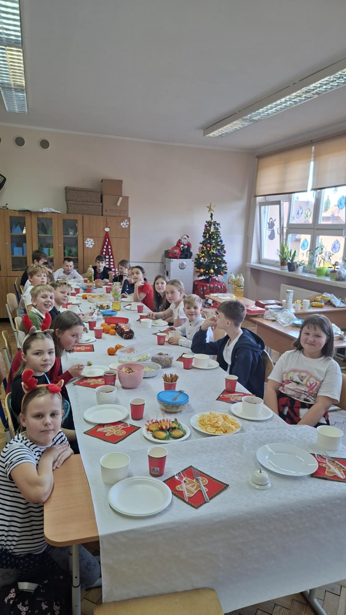Klasa 0b to grupa pełna zdolnych, ciekawych świata dzieci. Niektórzy z nich już potrafią czytać i z dużym zaangażowaniem rozwijają swoje umiejętności. Uczniowie chętnie pomagają pani w czytaniu zagadek oraz informacji dotyczących symboli związanych ze zbliżającymi się świętami. Z zainteresowaniem poznają także tradycyjne potrawy świąteczne i ich znaczenie. Wspólna praca sprawia dzieciom wiele radości, sprzyja nauce współdziałania oraz pogłębianiu wiedzy w przyjaznej, świątecznej atmosferze. Dzieci tworzyli ozdoby świąteczne dla swoich ukochanych Rodziców.