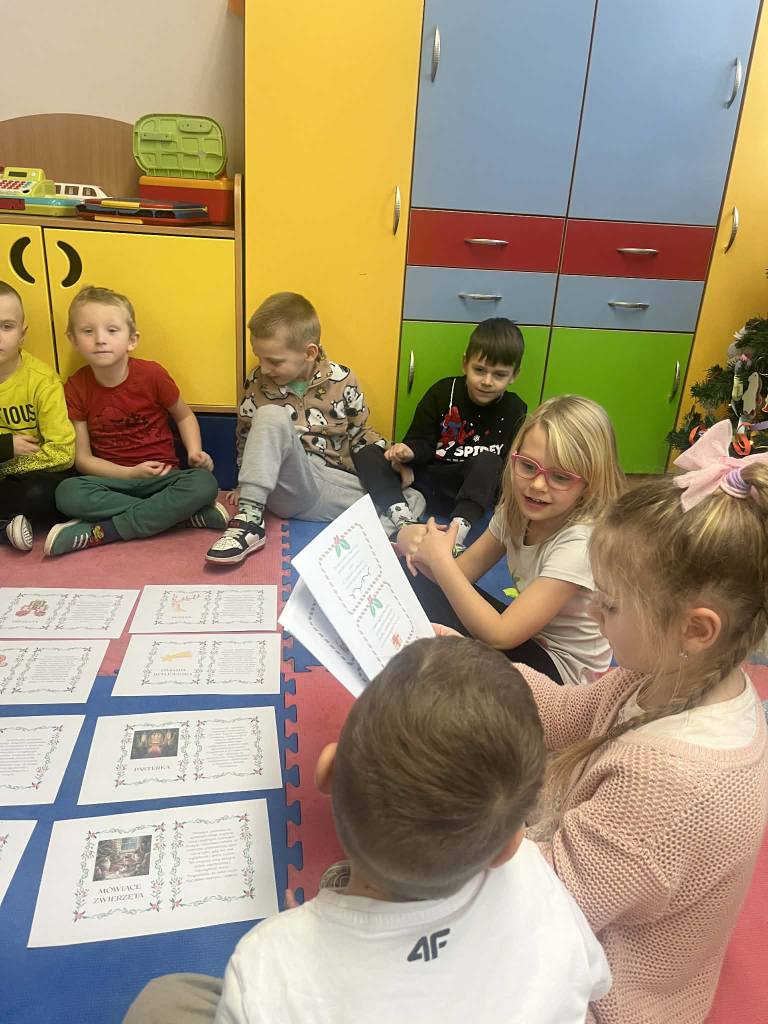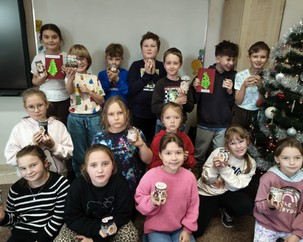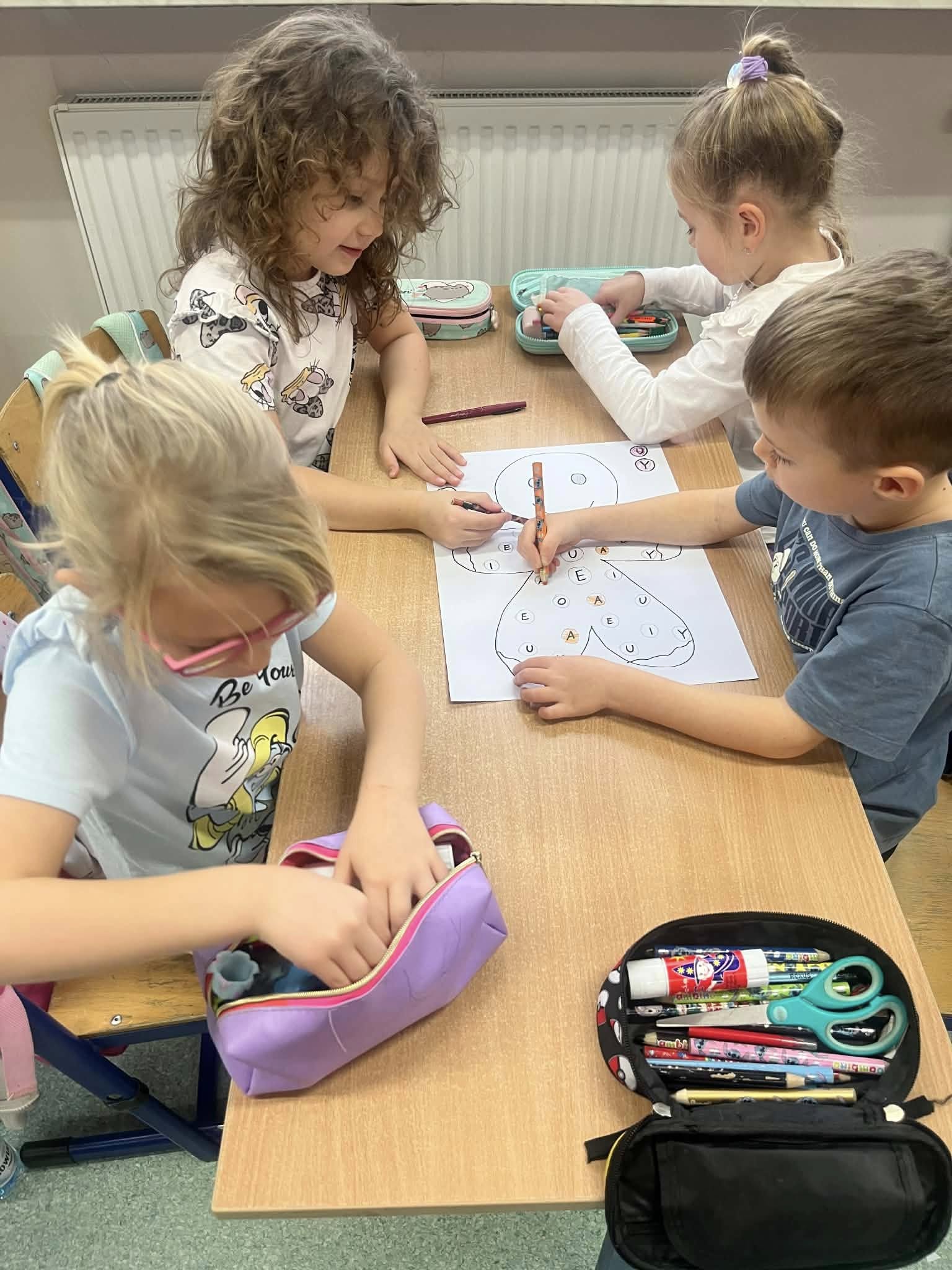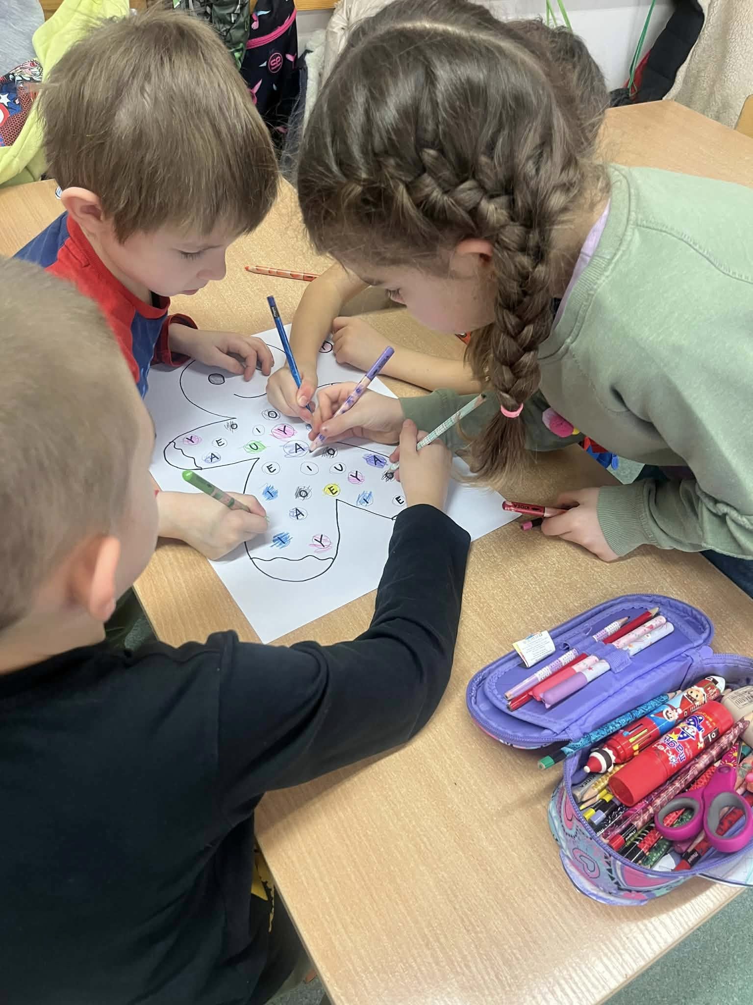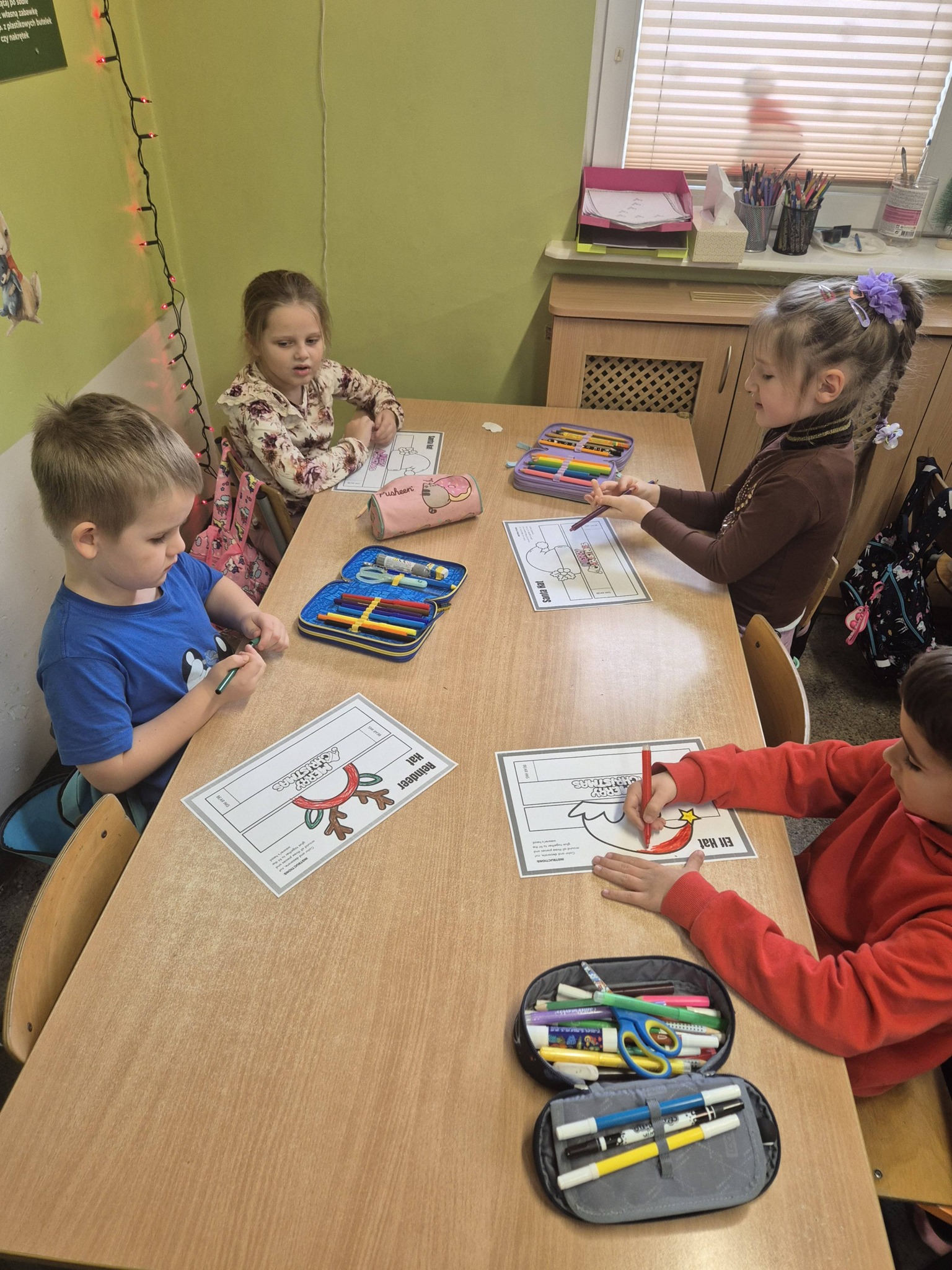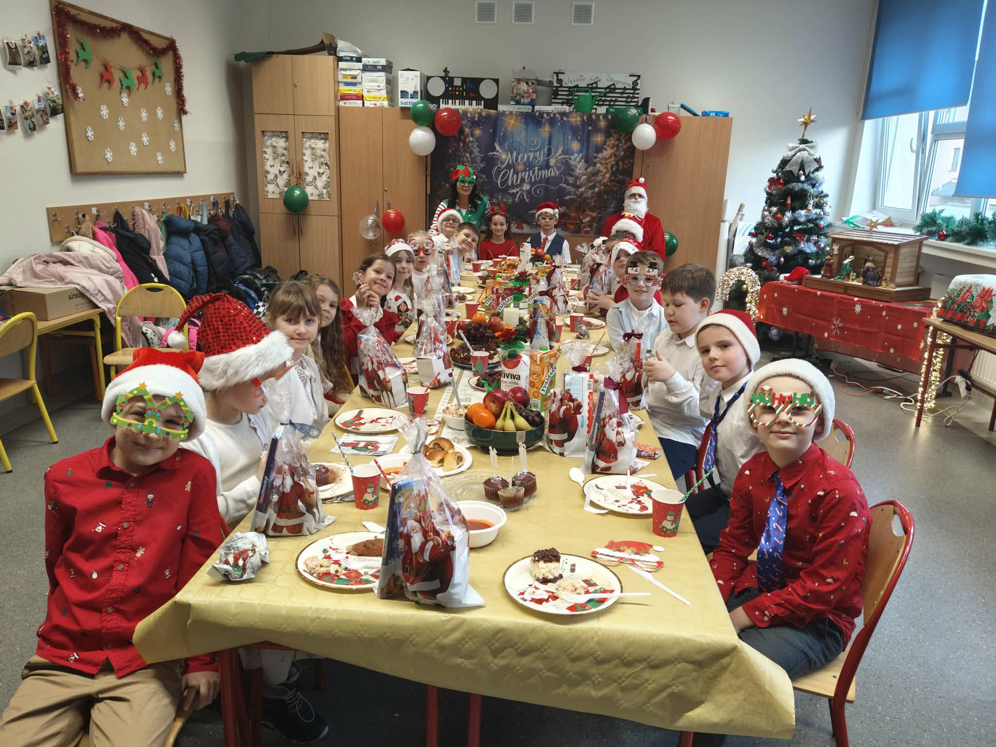 Klasa 0b to grupa pełna zdolnych, ciekawych świata dzieci. Niektórzy z nich już potrafią czytać i z dużym zaangażowaniem rozwijają swoje umiejętności. Uczniowie chętnie pomagają pani w czytaniu zagadek oraz informacji dotyczących symboli związanych ze zbliżającymi się świętami. Z zainteresowaniem poznają także tradycyjne potrawy świąteczne i ich znaczenie. Wspólna praca sprawia dzieciom wiele radości, sprzyja nauce współdziałania oraz pogłębianiu wiedzy w przyjaznej, świątecznej atmosferze. Dzieci tworzyli ozdoby świąteczne dla swoich ukochanych Rodziców.
