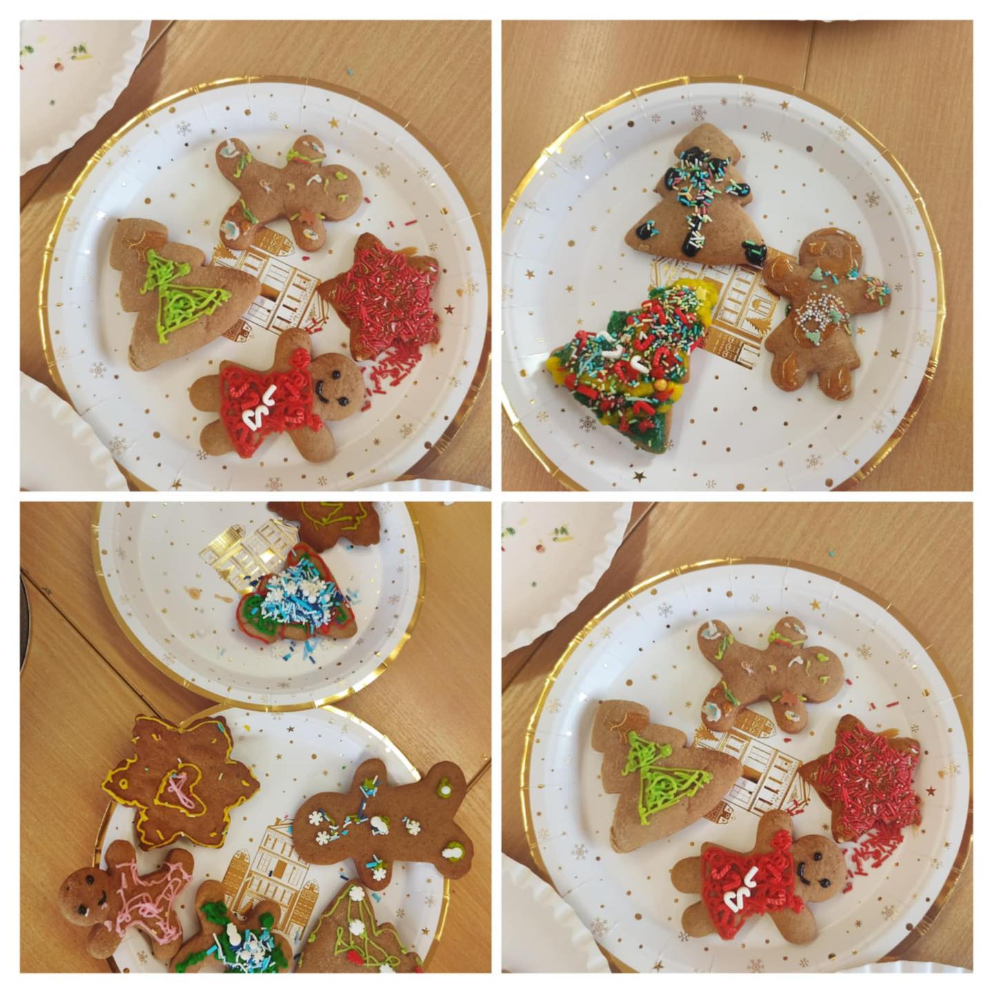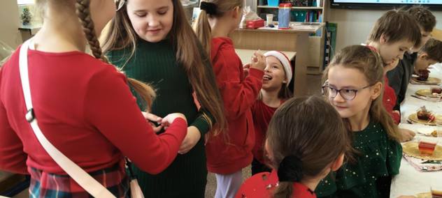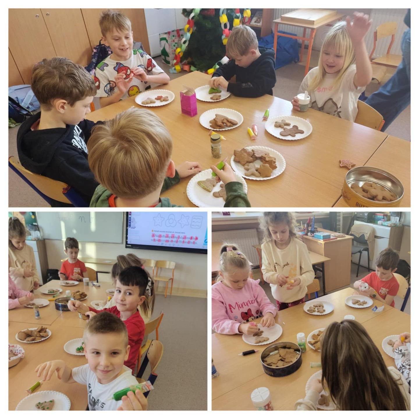 W klasie 2c odbyło się szalone ubieranie choinki. Bombki błyszczały, łańcuchy plątały się szybciej niż myśli na matematyce, a choinka z minuty na minutę stawała się coraz piękniejsza. Było wesoło, świątecznie i bardzo kolorowo. W klasie 2a było słodko i kolorowo. Uczniowie dekorowali pierniki, świetnie się bawiąc i rozwijając swoją kreatywność.