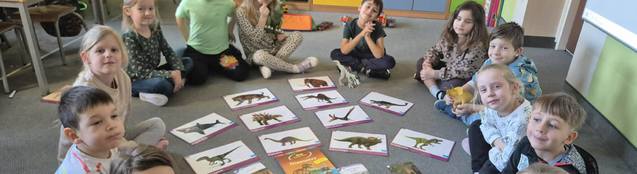 Dzieci poznały ciekawostki o dinozaurach, dowiedziały się, kiedy żyły i dlaczego wyginęły. Obejrzeliśmy film edukacyjny oraz poznaliśmy nazwy dinozaurów. Rozmawialiśmy też o zwierzętach żyjących dziś, np. kura domowa, które są potomkami dinozaurów. Były zagadki, kodowanie, wyścigi dinozaurów oraz gry memory i dopasowywanki. To był dzień pełen nauki i świetnej zabawy! W czwartek 26.02.2026 r. klasa 0A odkrywała fascynujący świat dinozaurów. Wspólnie szukaliśmy ciekawostek w książkach przniesionych przez dzieci i dopasowywaliśmy informacje do przyniesionych figurek oraz maskotek. Nie zabrakło również świetnej zabawy przy kodowaniu oraz budowaniu szkieletu dinozaura.