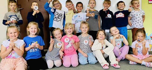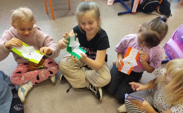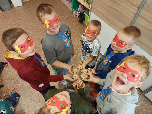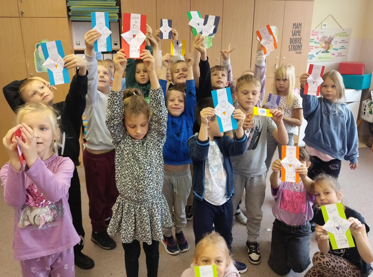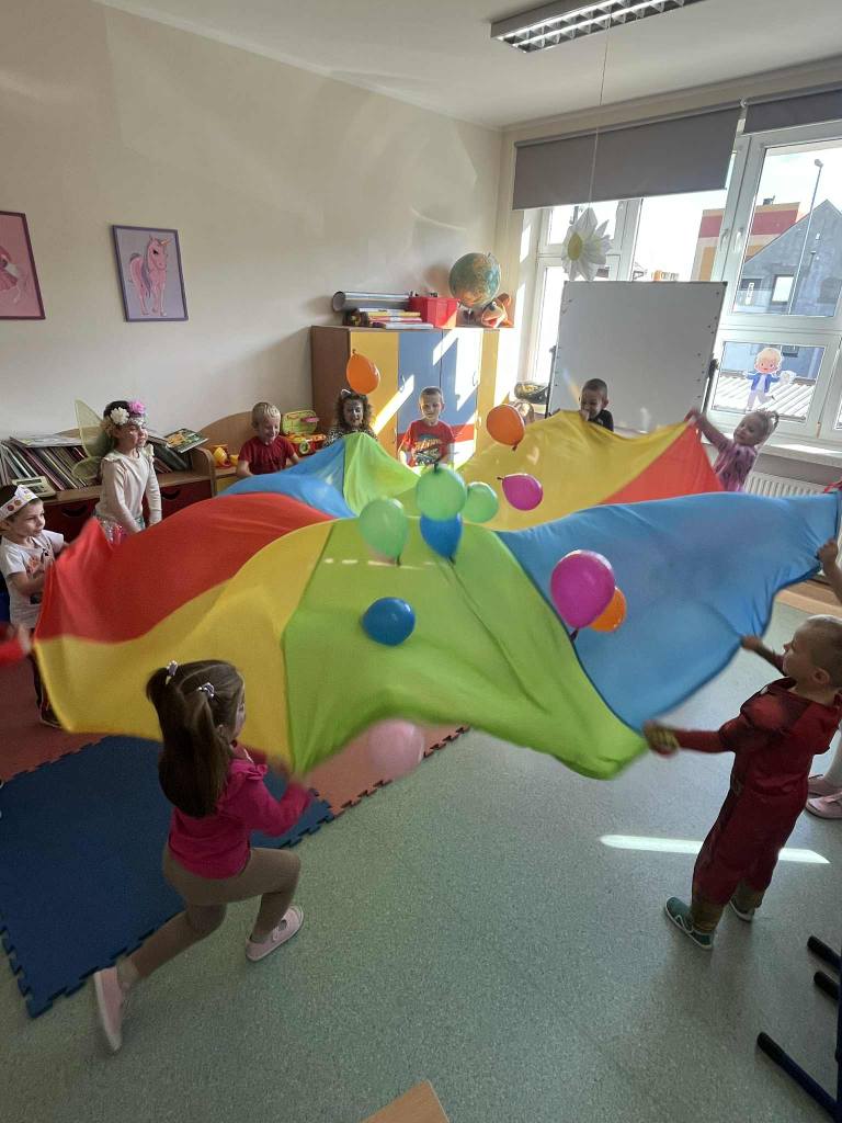 i nauki. Dzieci z klasy 0b bawiły się z kolorową chustą animacyjną, tańczyły przy muzyce i wspólnie tworzyły swoje wyjątkowe Paszporty Super Przedszkolaka. Nie zabrakło też słodkiego poczęstunku, który dodał energii do dalszych harców. Każdy otrzymał dyplom i wierszyk od pani wychowawczyni.