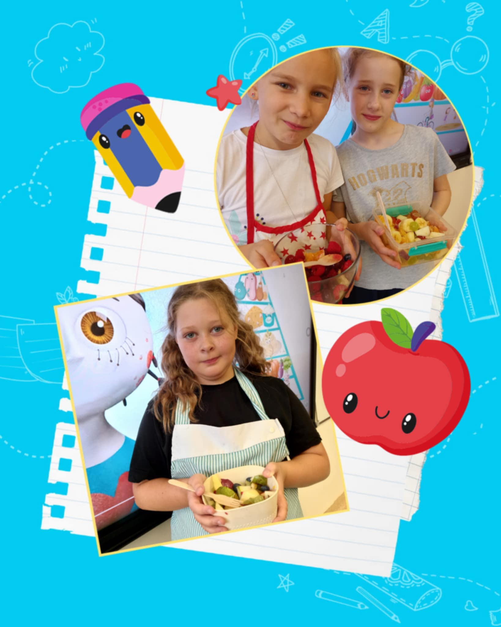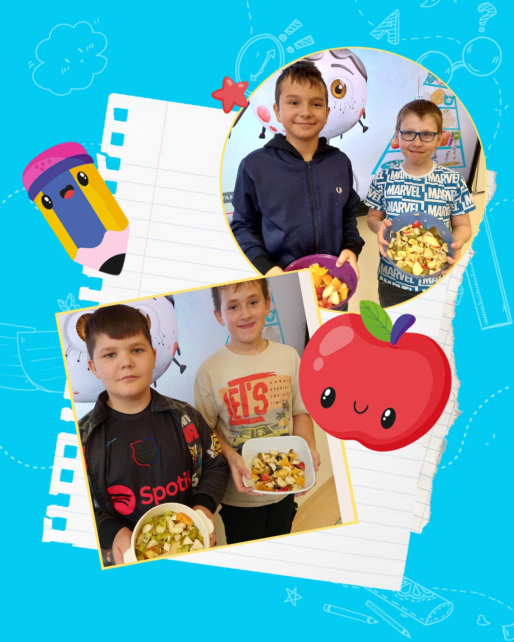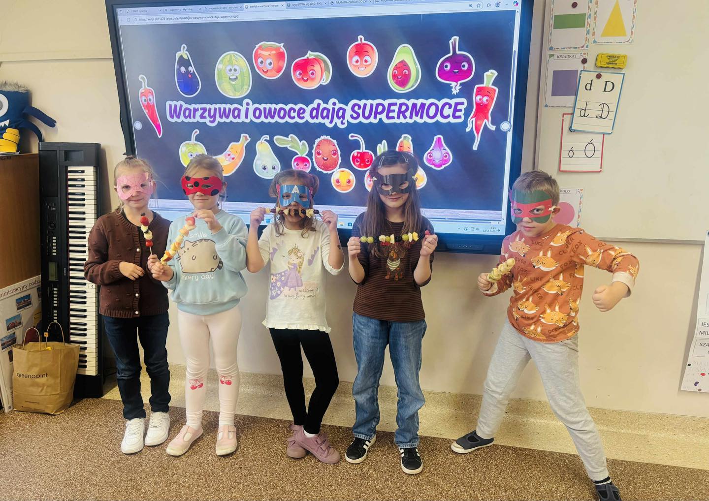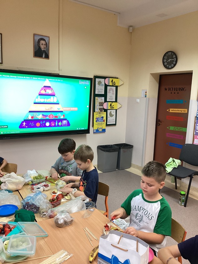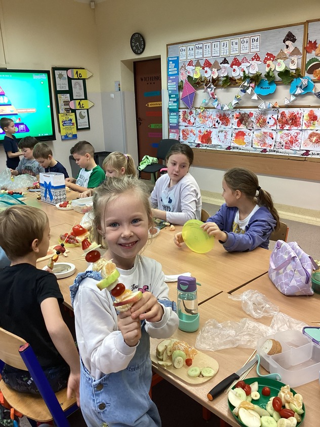 Uczniowie klasy 1b mają prawdziwą moc – potrafią tworzyć przepyszne, kolorowe i zdrowe szaszłyki owocowe, a przy tym zarażać innych radością i uśmiechem! W ramach projektu „Program Szkół” uczniowie poznali piramidę żywienia i nauczyli się, jak dbać o zdrowe nawyki każdego dnia.