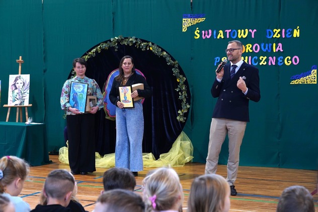 W środę 08.10.2025 r. o samym świcie, reprezentacja naszego chóru jechała aż za Lębork do Szkoły Podstawowej w Leśnicach, gdzie uczestniczyliśmy w szkolnych obchodach Światowego Dnia Zdrowia Psychicznego. Zaśpiewaliśmy piosenki z naszego przedstawienia o hejcie.