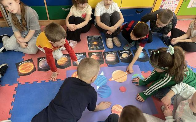 Klasa 0b miała 23.03.2026 r. wyjątkowe zajęcia, podczas których dzieci wyruszyły w fascynującą podróż po kosmosie. Poznały Układ Słoneczny, dowiedziały się, jakie cechy mają poszczególne planety i czym się od siebie różnią. Obejrzeliśmy również krótki film edukacyjny, który w ciekawy sposób przybliżył temat przestrzeni kosmicznej.