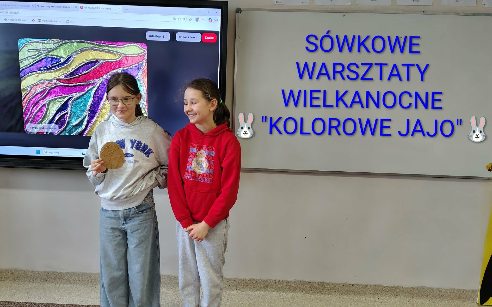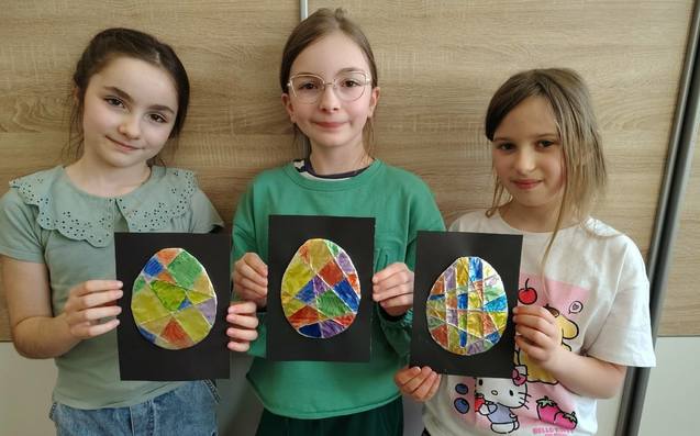 SÓWKOWE WARSZTATY WIELKANOCNE przeprowadziły koleżanki z naszej "Klasy Sowy"(IIIa) Anastazja i Lilka. Robiliśmy piękne kartki z kolorowym jajem. Było dużo zabawy, a efekt? Sami zobaczcie.