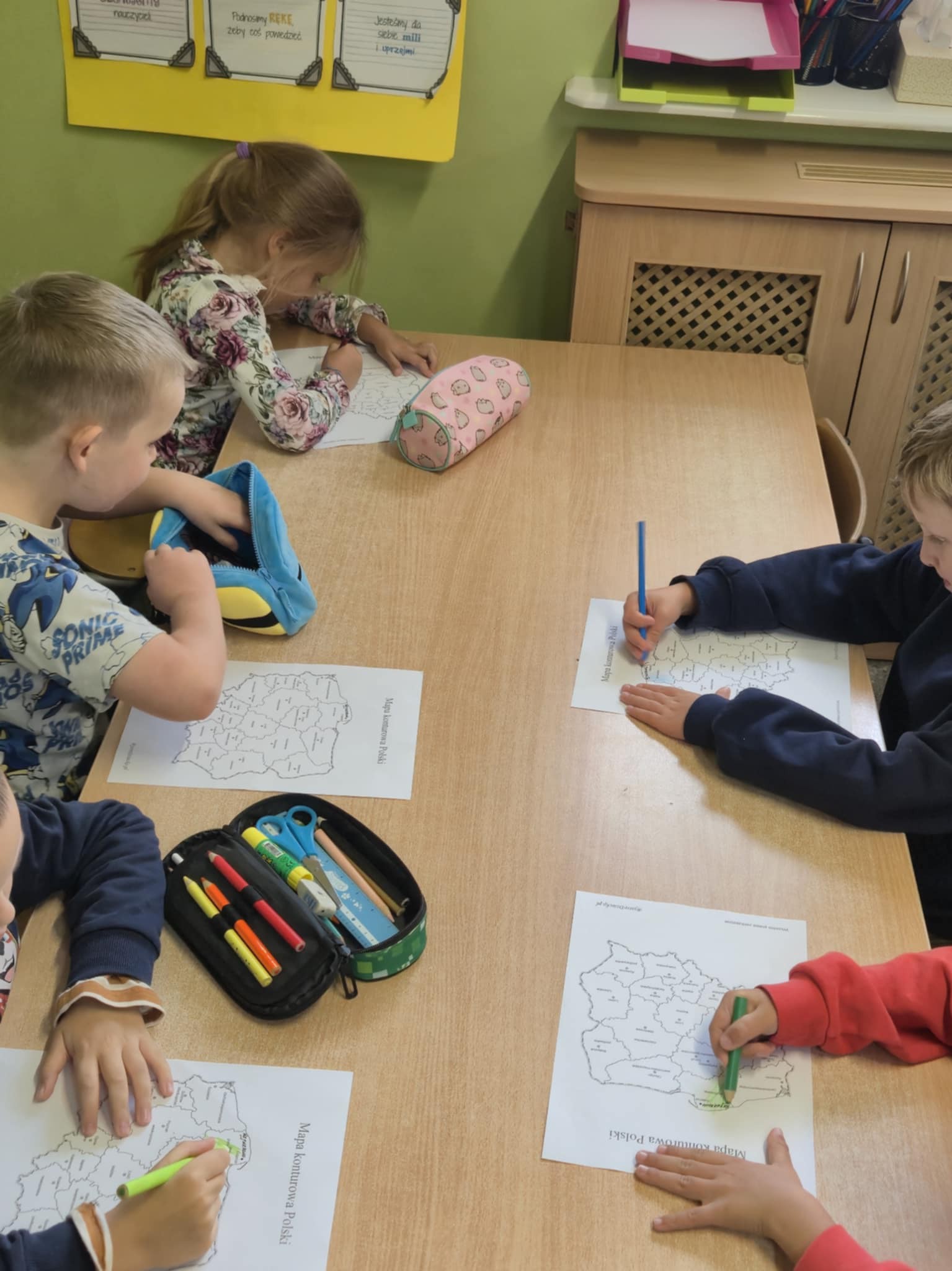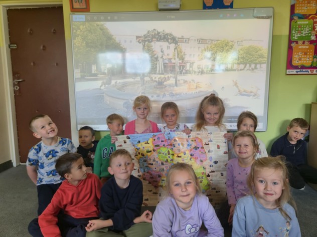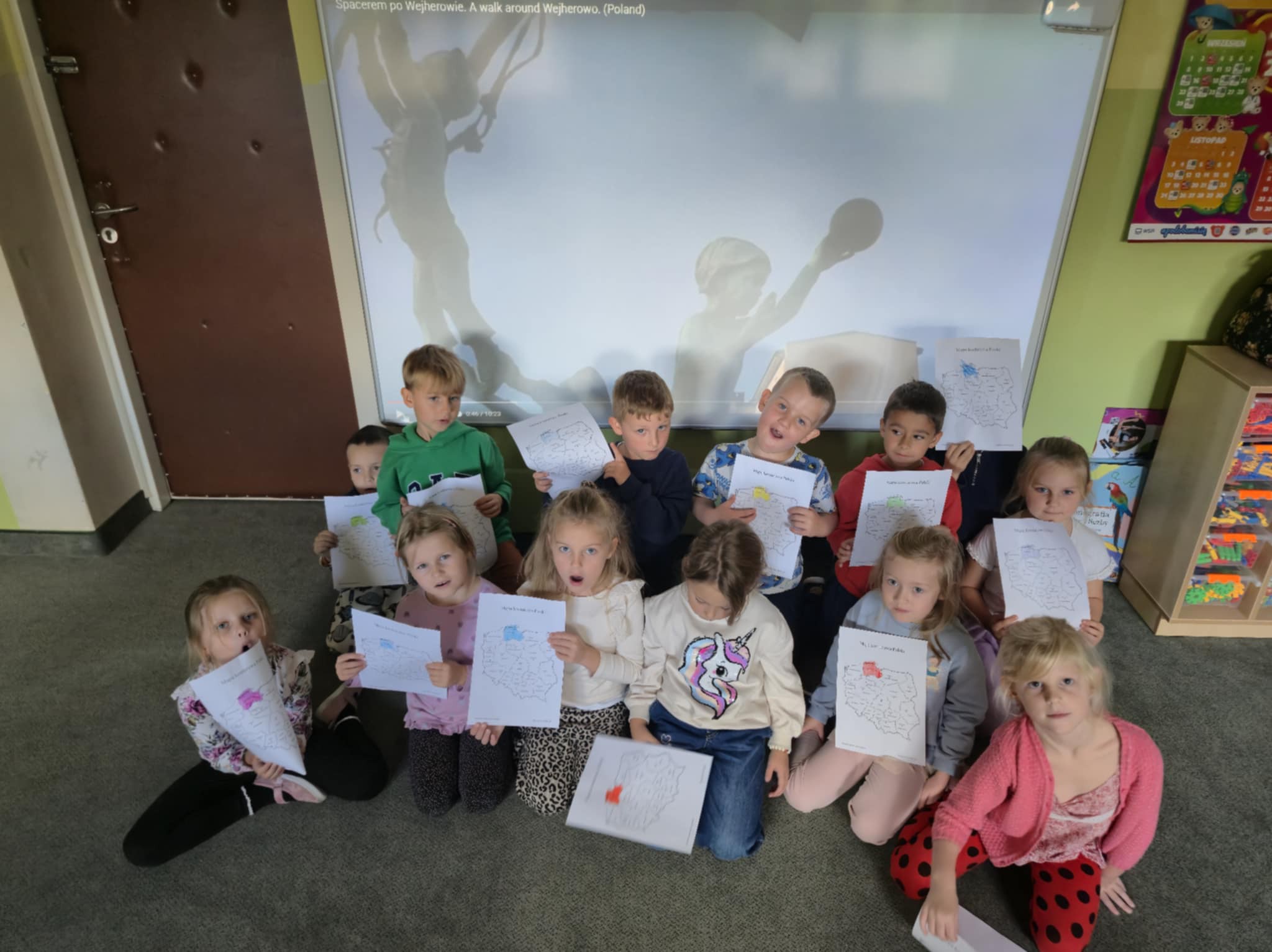 Uczniowie klasy 0a zaangażowali się do udziału w projekcie " To jest Polska, tutaj żyjemy" poznając swoją małą ojczyznę - Wejherowo. Dzieci pokolorowały województwo, w którym położone jest ich miasto (oznaczone na mapie) oraz utrwaliły sobie charakterystyczne miejsca w Wejherowie.