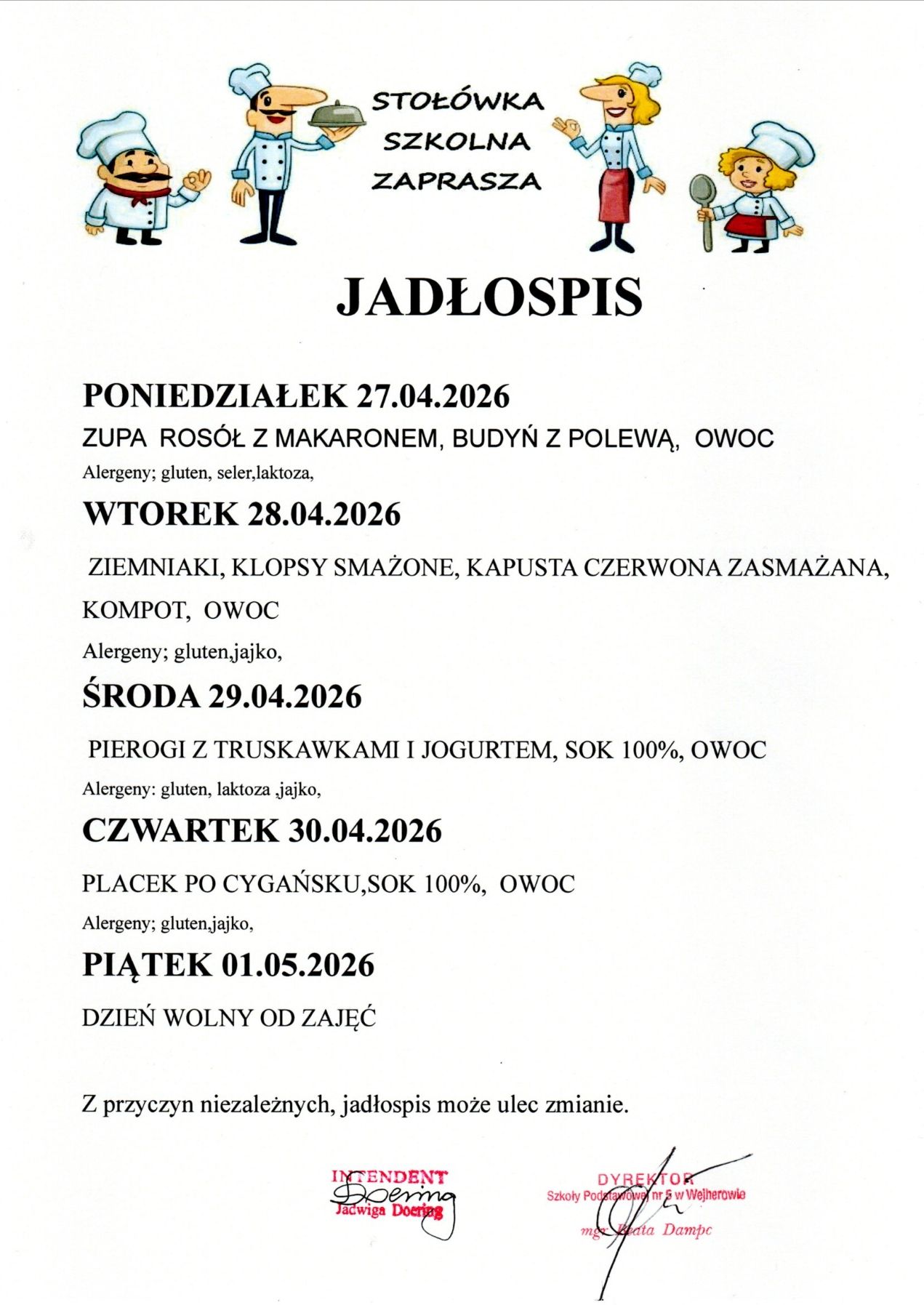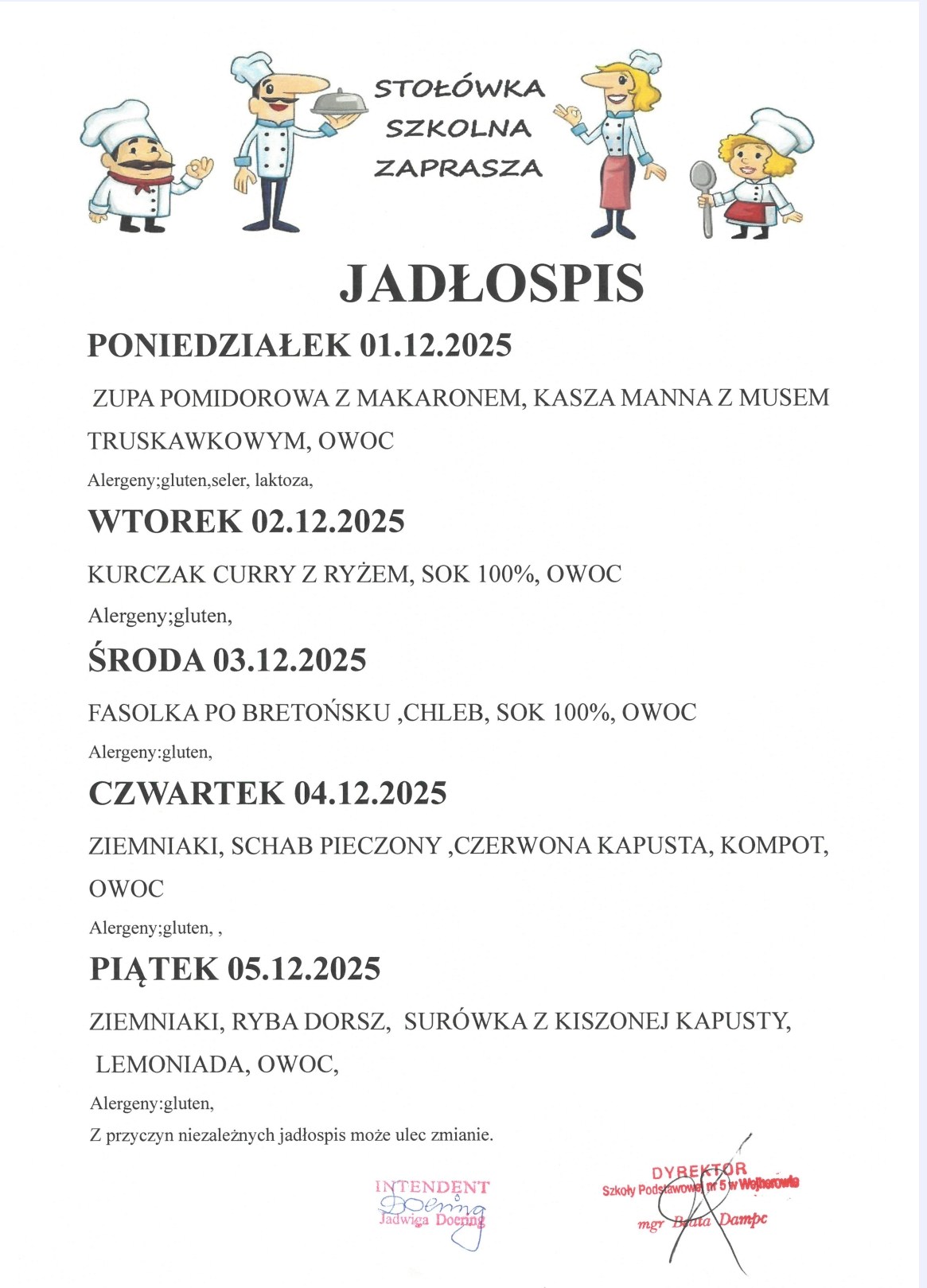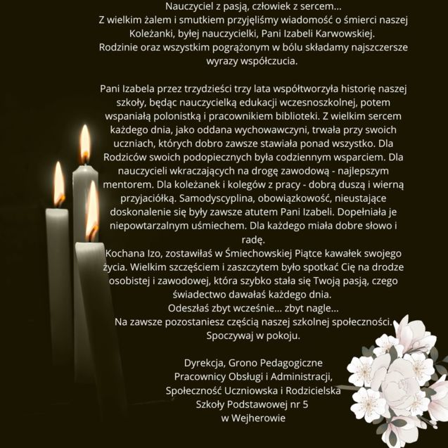 Dyrekcja Szkoły Podstawowej nr 5 w Wejherowie informuje,