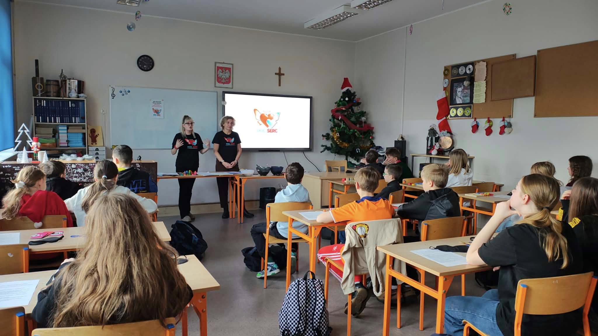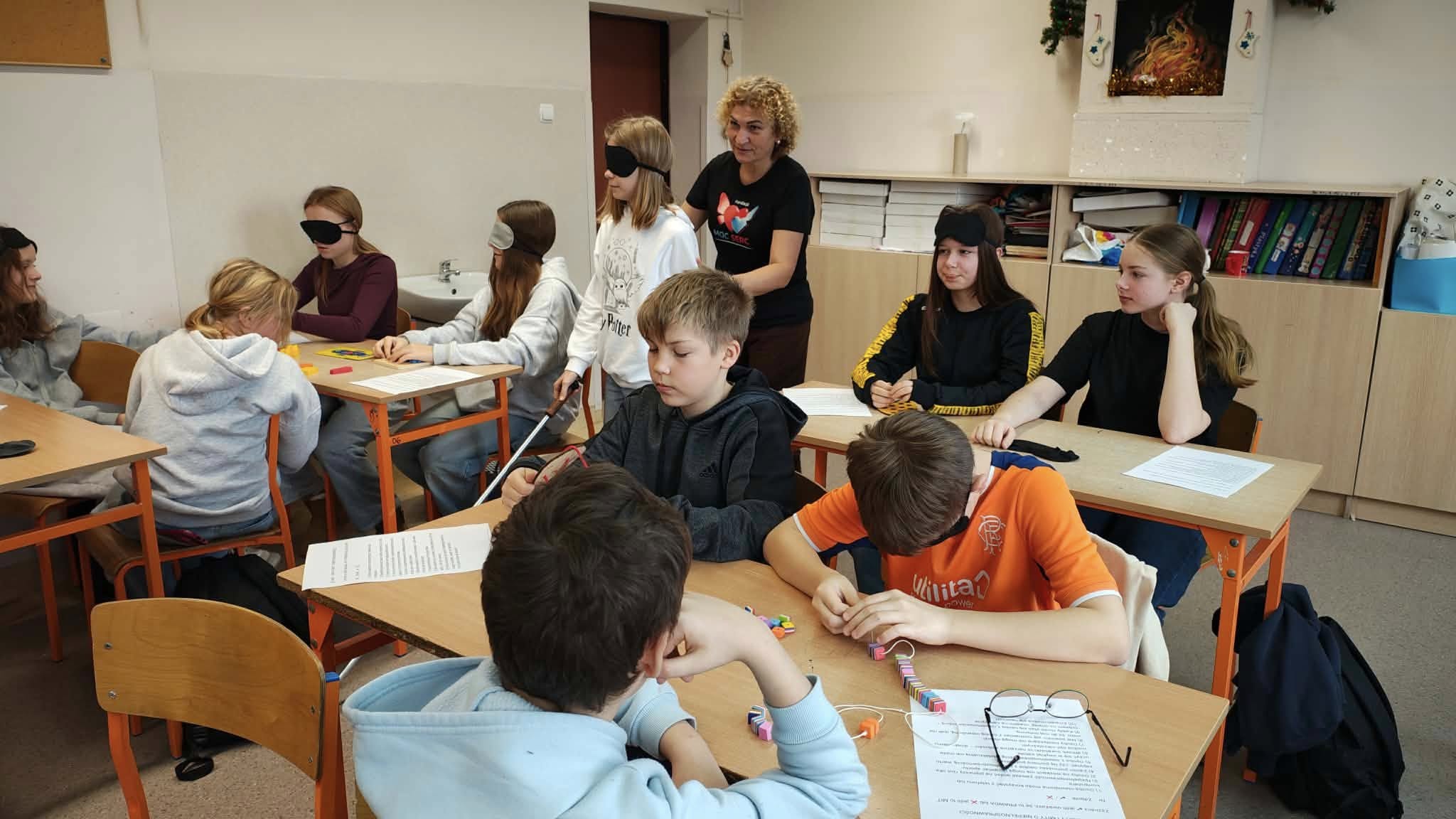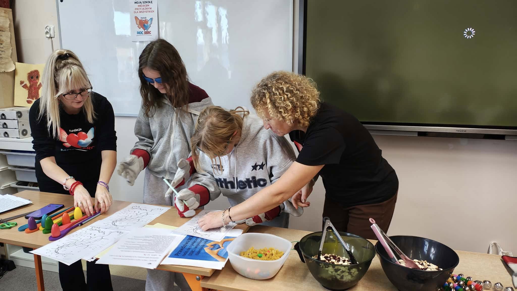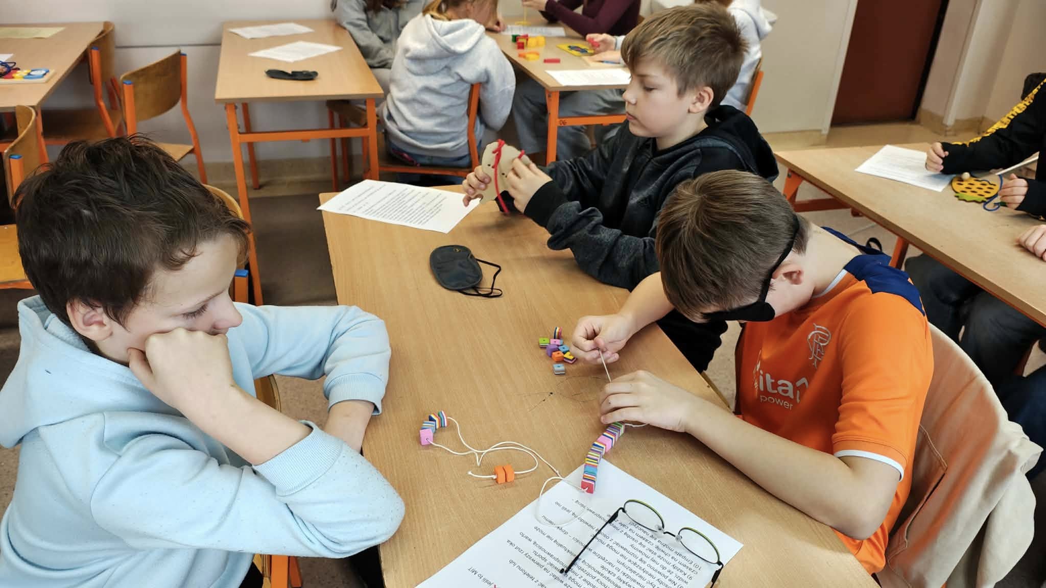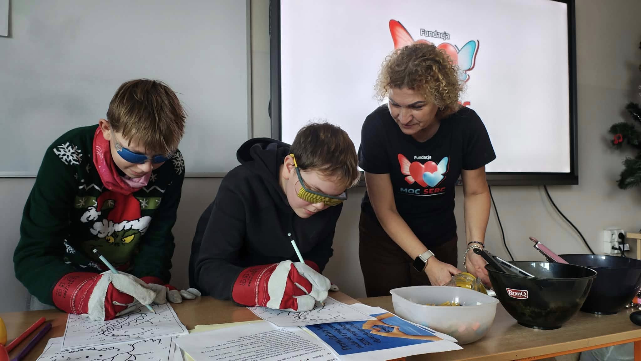Dzięki warsztatom uczniowie mogli doświadczyć wyzwań, z jakimi spotykają się osoby z niepełnosprawnościami podczas wykonywania czynności życia codziennego. Najprostsze zadania, takie jak wycinanie, pisanie czy nawlekanie koralików, stały się niezwykle trudne po założeniu okularów imitujących wady wzroku czy rękawic powodujących wrażenie spastyczności. Uczniowie poznali także wybrane aspekty specyfiki funkcjonowania osób w spektrum autyzmu. Warsztaty zakończyły się prelekcją filmu oraz pogadanką zachęcającą dzieci do akceptacji różnorodności.Serdecznie dziękujemy Fundacji Moc Serc za przeprowadzenie niezwykle ciekawych i wartościowych warsztatów. To doświadczenie z pewnością pozostanie z uczniami na długo.