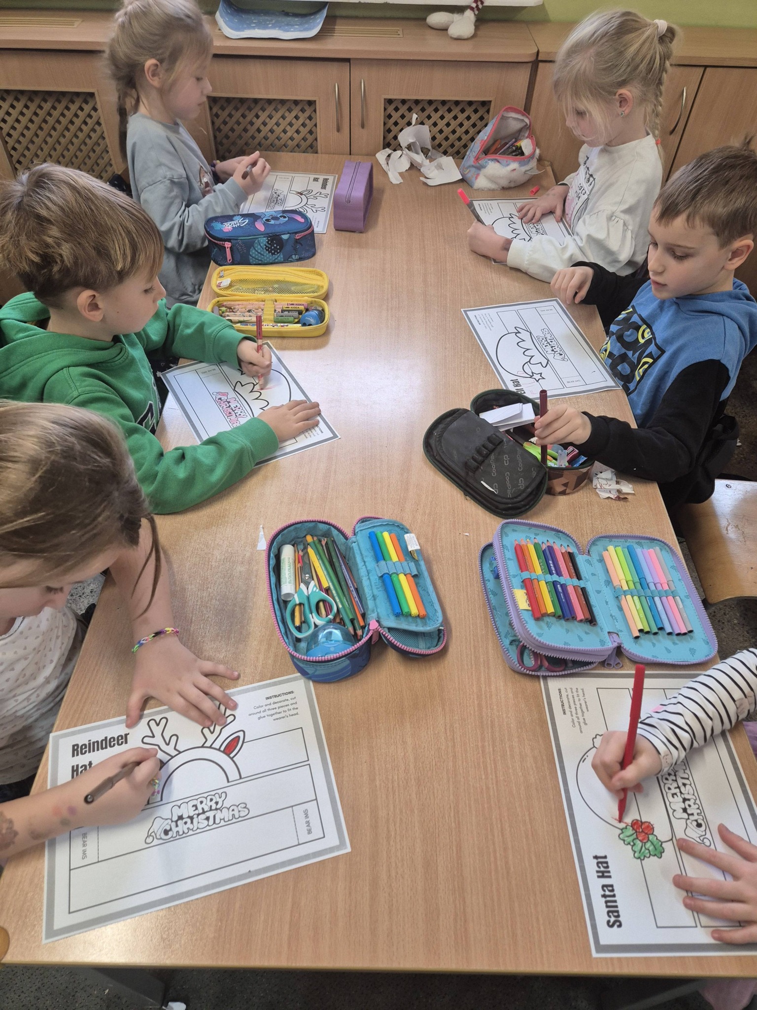 Klasa 0a już czuje świąteczny klimat. Dzieci chętnie wykonują prace z tematyką bożonarodzeniową.