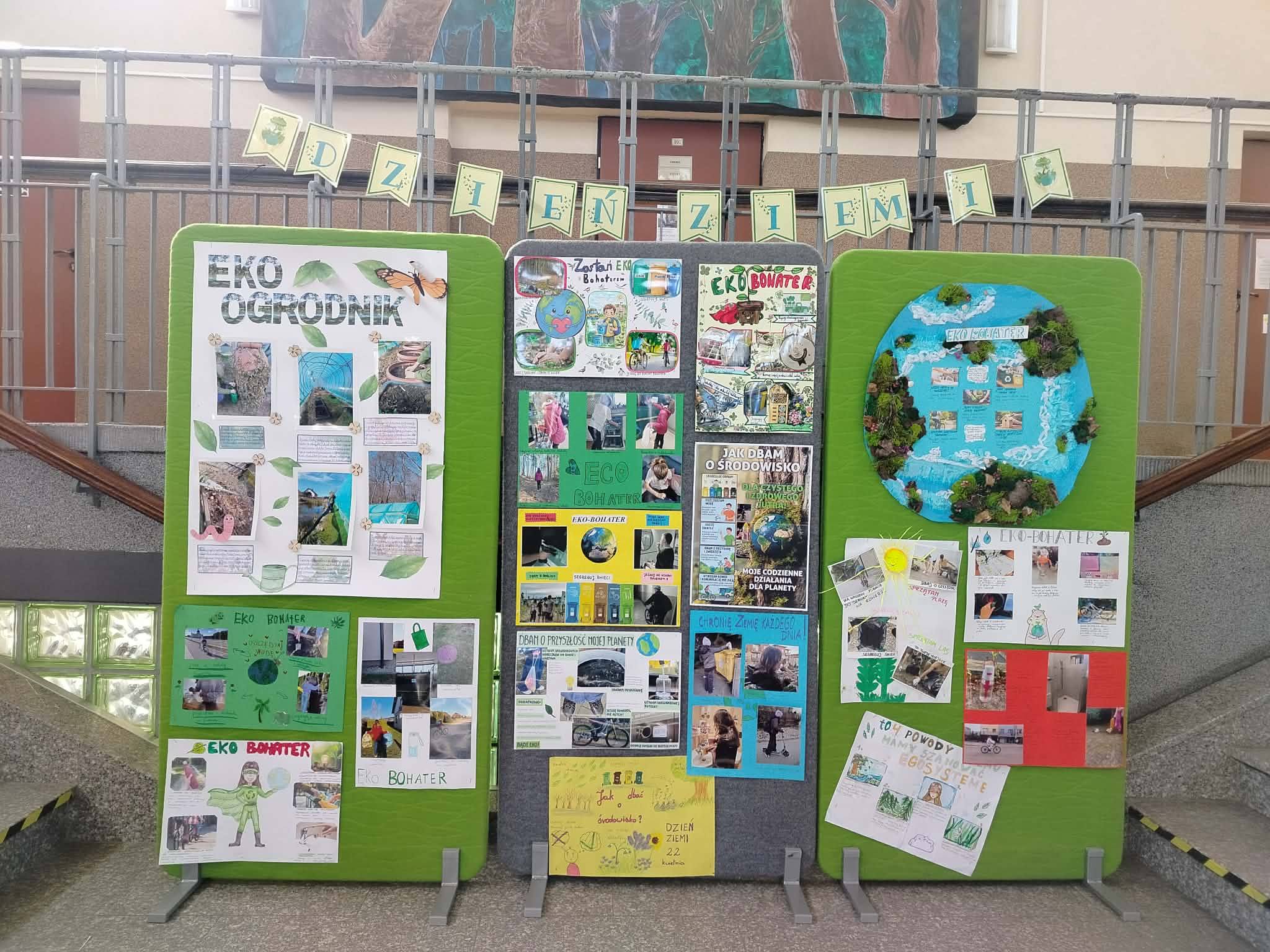 Rozstrzygnięto również konkurs „Eko Bohater”, a jego uczestnicy zaprezentowali swoje pomysłowe prace. Nagrody dla laureatów zostały ufundowane dzięki wsparciu miasta Wejherowo i miały formę wartościowych książek przyrodniczych. Wszystkie prace konkursowe można podziwiać na specjalnie przygotowanych wystawach w naszej szkole.