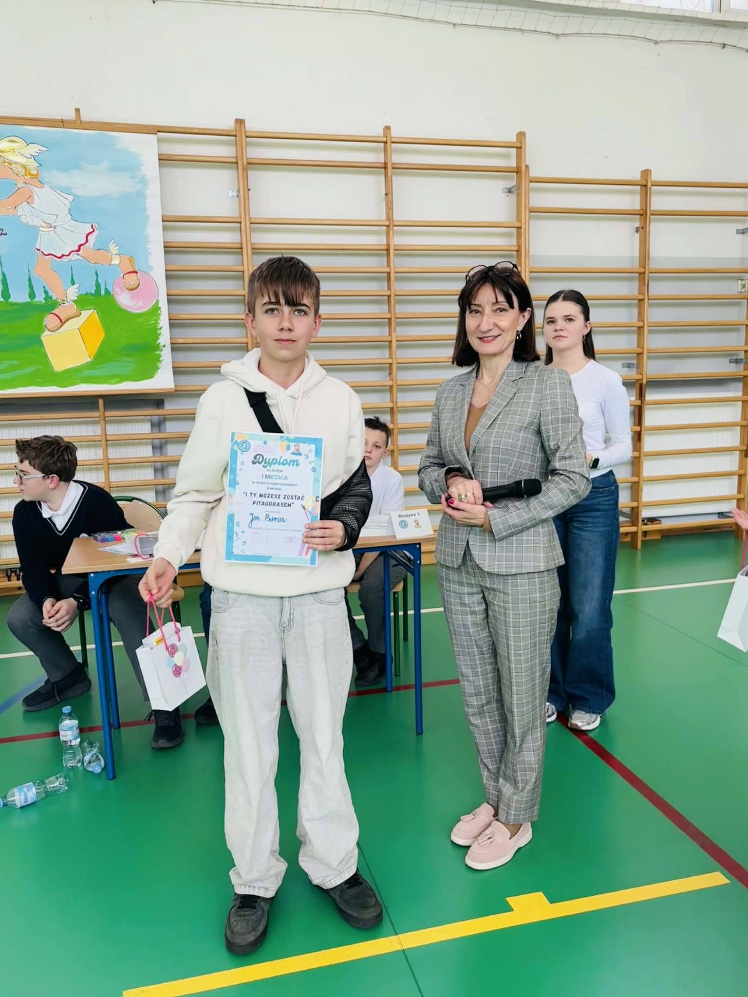 Konkurs składał się z 7 rund, a każda z nich dostarczała uczestnikom wielu emocji. Po każdym etapie następowało sprawdzanie wyników, co dodatkowo podgrzewało atmosferę i budowało napięcie. Rywalizacja była wyrównana i trwała do samego końca, a uczestnicy wykazali się dużą wiedzą, zaangażowaniem i umiejętnościami matematycznymi.Konkurs odbywał się w duchu szlachetnej rywalizacji, a jego wyjątkową formą była praca w grupach mieszanych – uczniowie z różnych szkół współpracowali ze sobą, dzieląc się wiedzą i wspólnie rozwiązując zadania.