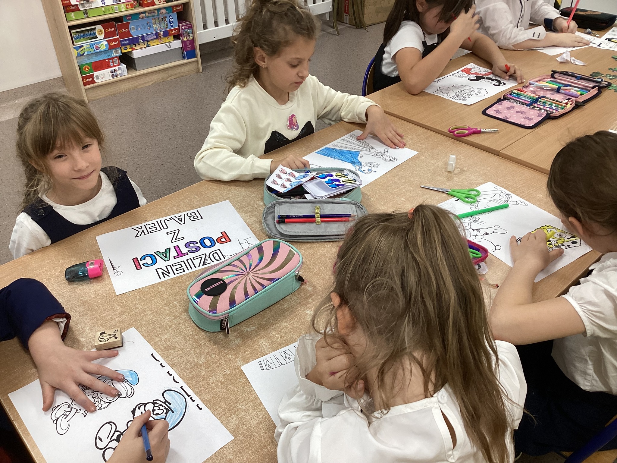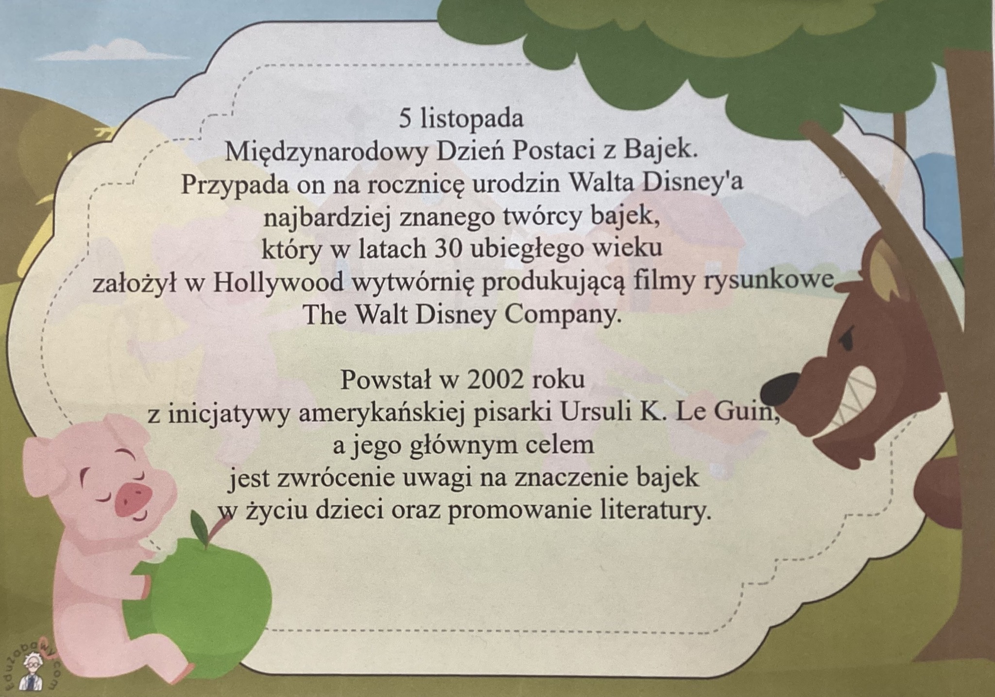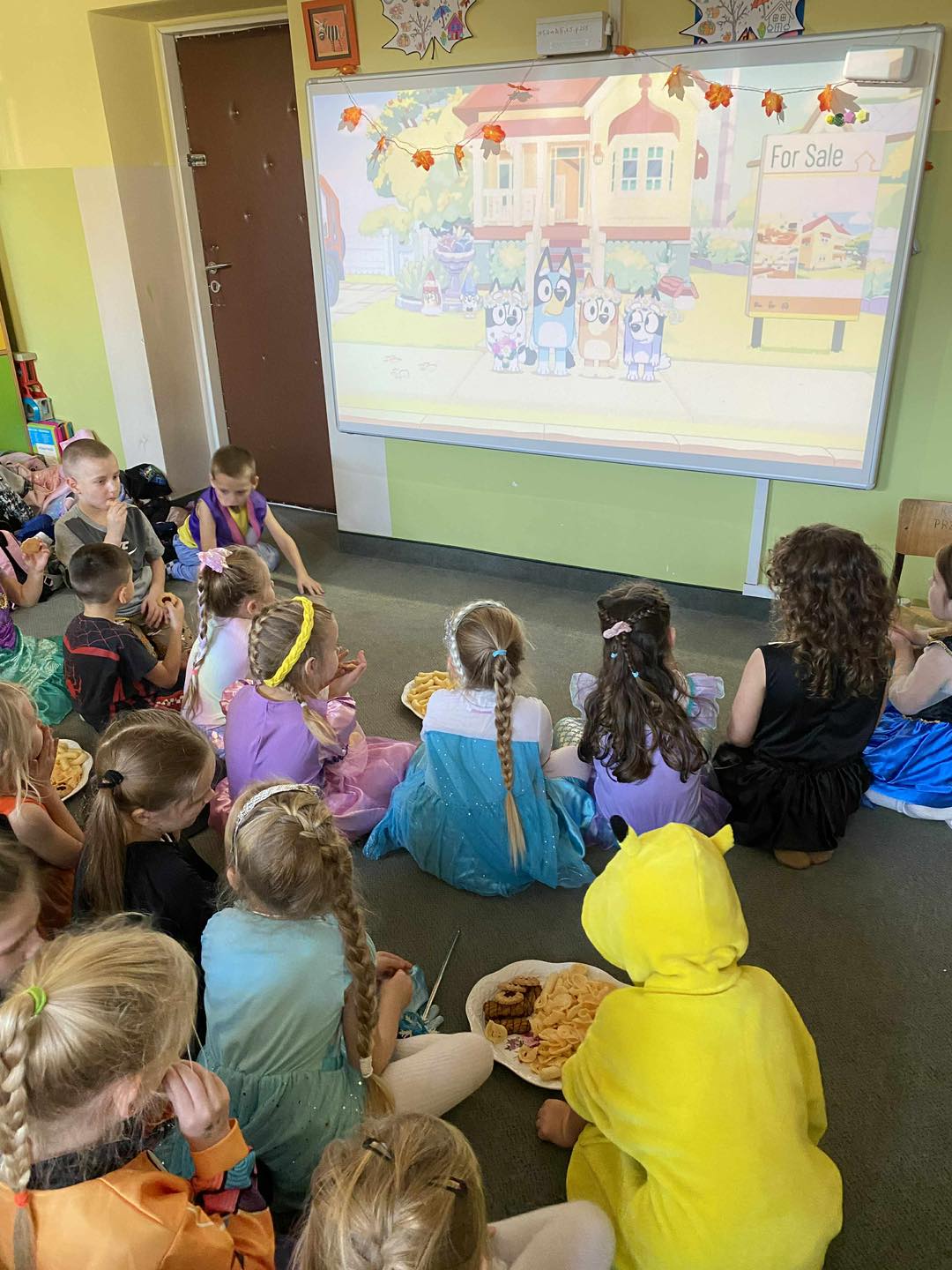 Dzieci brały udział w zabawach i zadaniach – rozwiązywały bajkowe zagadki, przeliczały postacie, rozróżniały bohaterów i przypominały sobie ich przygody. Nie zabrakło też wspólnej zabawy! Klasa 0b gościnnie odwiedzilła klasę 0A, gdzie oglądali króciutkie bajeczki i bawiliśmy się razem w szkolnym ogródku.