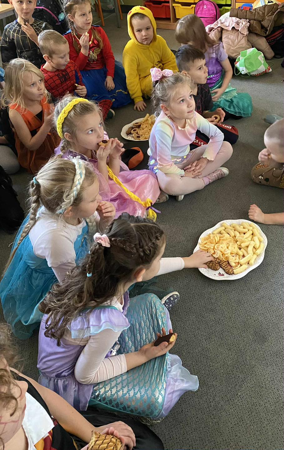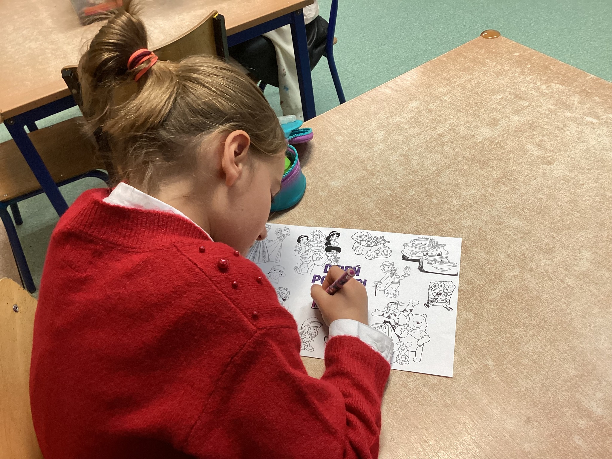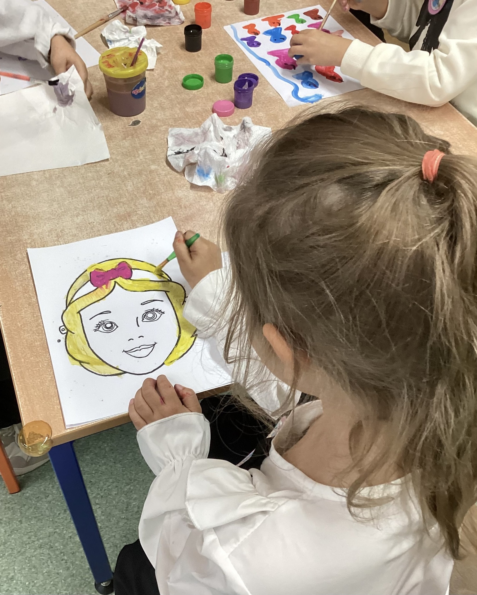Dzieci brały udział w zabawach i zadaniach – rozwiązywały bajkowe zagadki, przeliczały postacie, rozróżniały bohaterów i przypominały sobie ich przygody. Nie zabrakło też wspólnej zabawy! Klasa 0b gościnnie odwiedzilła klasę 0A, gdzie oglądali króciutkie bajeczki i bawiliśmy się razem w szkolnym ogródku.