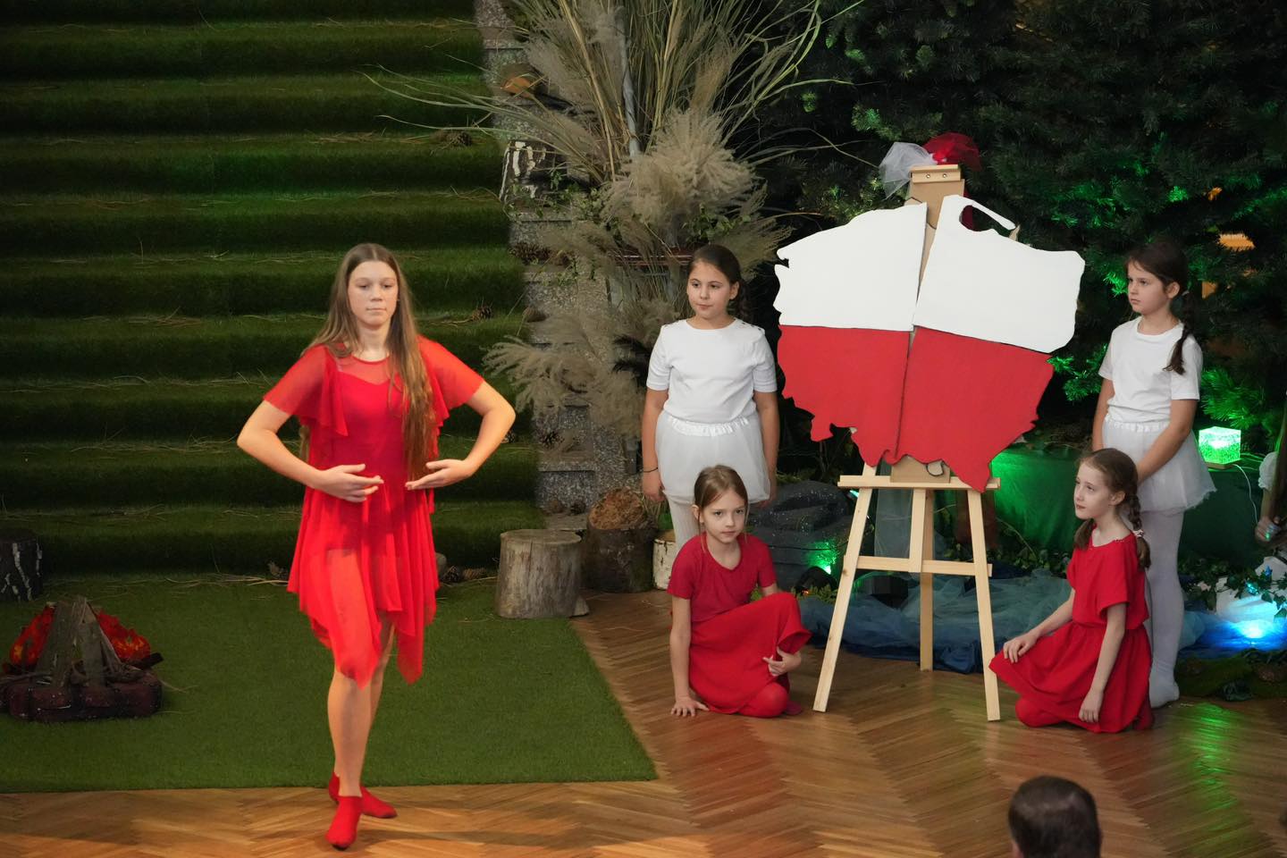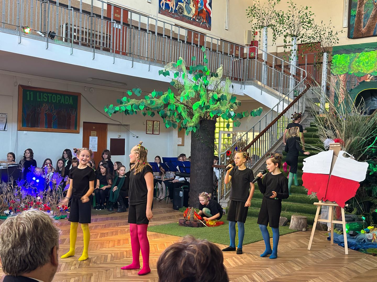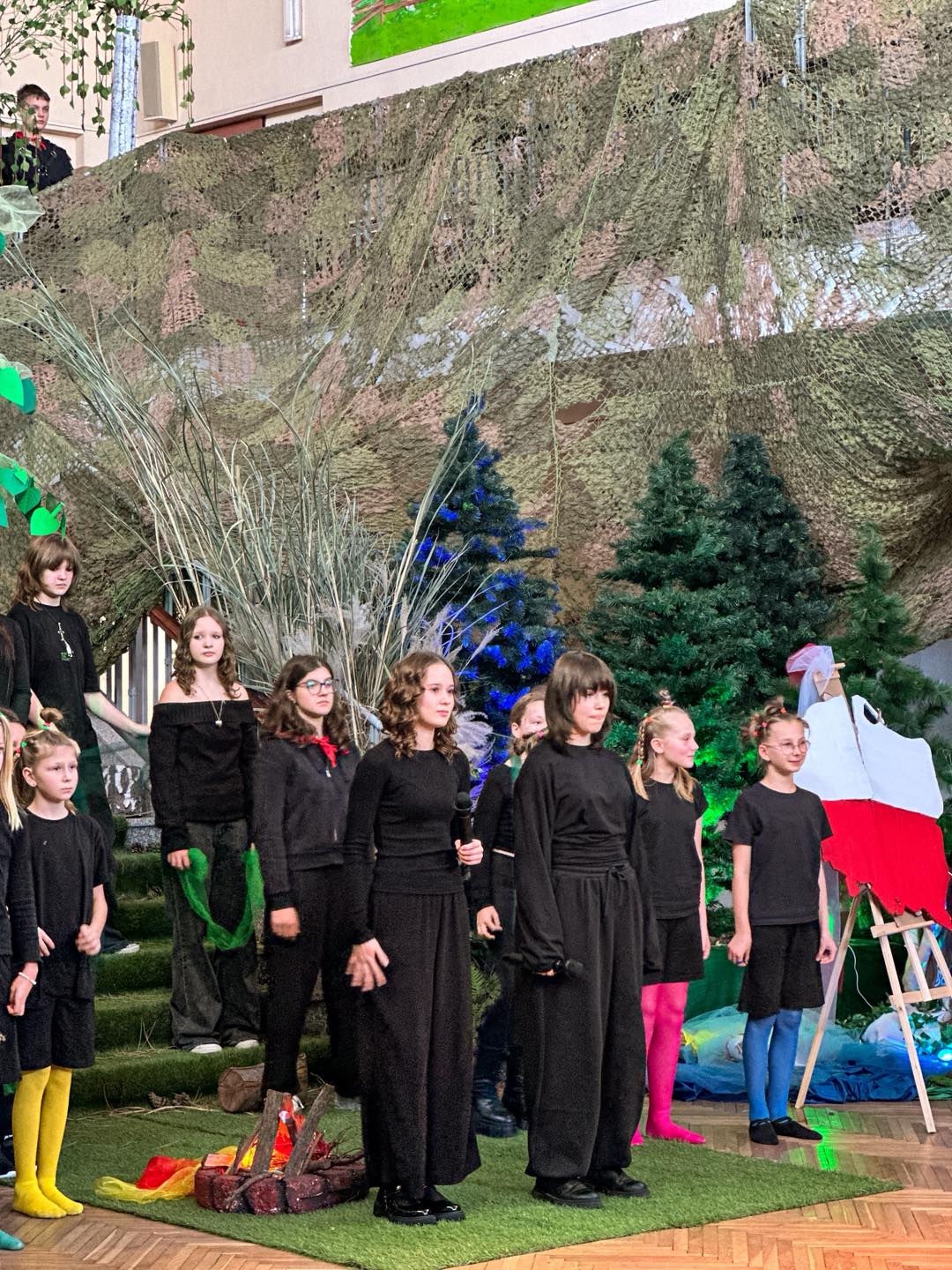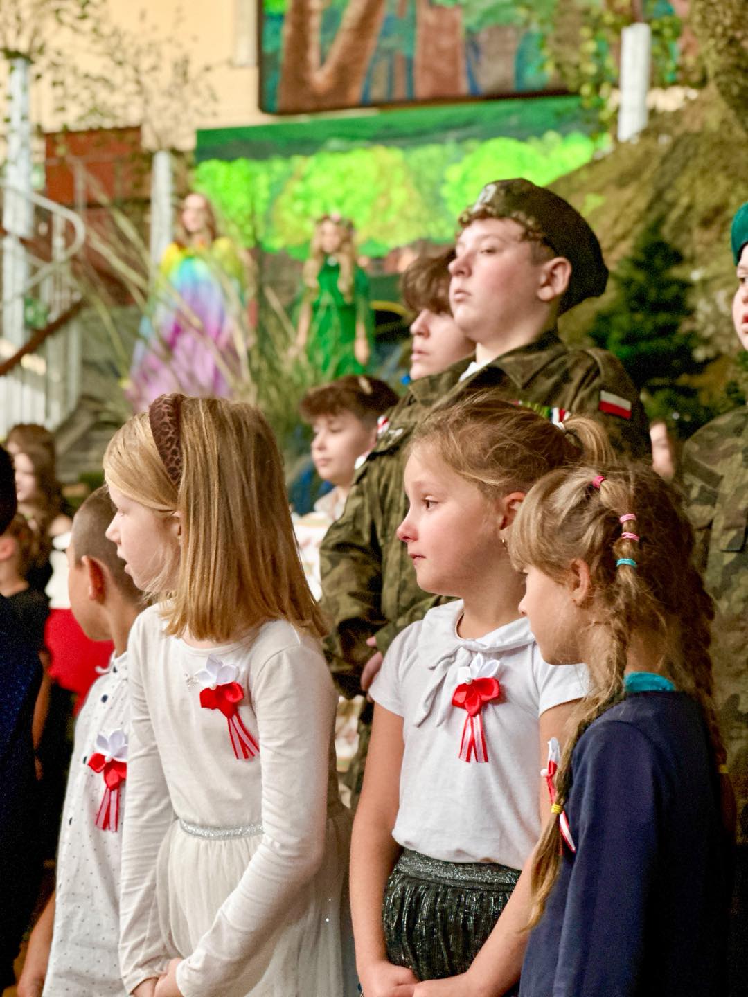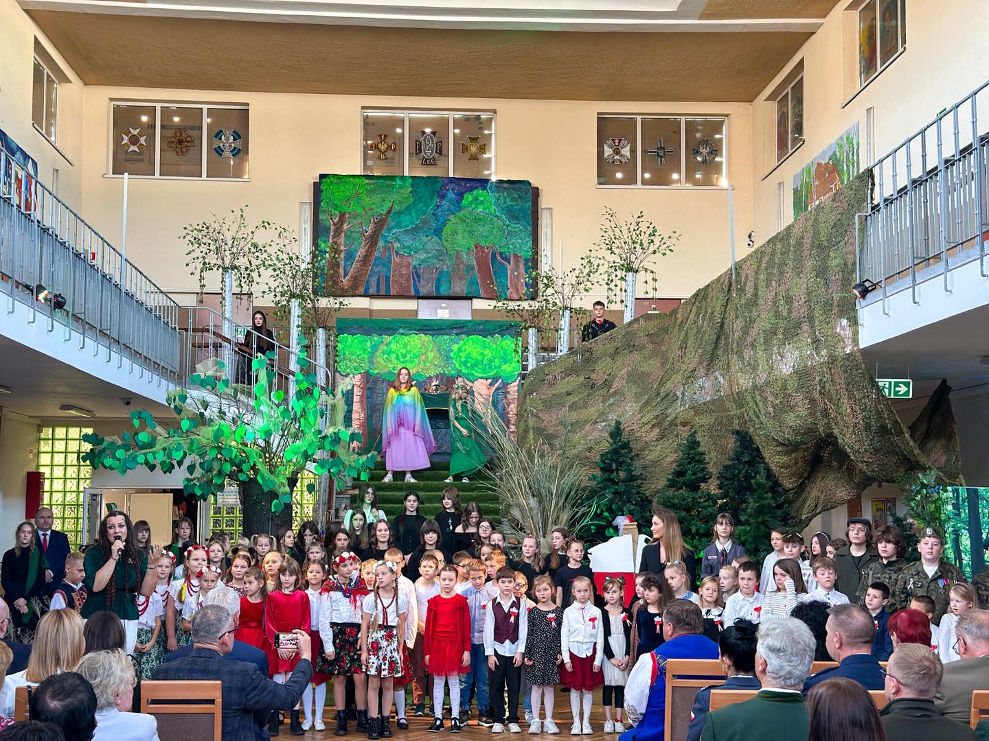 W tym roku, z okazji 107. rocznicy odzyskania przez Polskę niepodległości, na scenie wystąpiło aż 107 uczniów naszej szkoły! Od tygodni trwały intensywne próby, przygotowania muzyczne i artystyczne. Uczniowie – od klasy 1 do 8 – włożyli w ten występ ogrom pracy, serca i emocji. Ich zaangażowanie, wspólna praca i radość tworzenia przyniosły piękny efekt, który mogliśmy w miniony piątek 7 listopada podziwiać. Po spektaklu odbył się wspólny śpiew pieśni patriotycznych przy akompaniamencie orkiestry dętej Panstwowej Szkoły Muzycznej I st. z Wejherowa. Takie działania to nie tylko nauka patriotyzmu, ale też rozwijanie wielu kompetencji kluczowych – współpracy, komunikacji, kreatywności, koncentracji, odpowiedzialności i wiary we własne możliwości. Dziękujemy wszystkim uczniom, nauczycielom i rodzicom za wsparcie oraz wspólne przeżywanie tej wyjątkowej uroczystości. Niech duma z naszej historii i miłość do Ojczyzny towarzyszą nam każdego dnia!