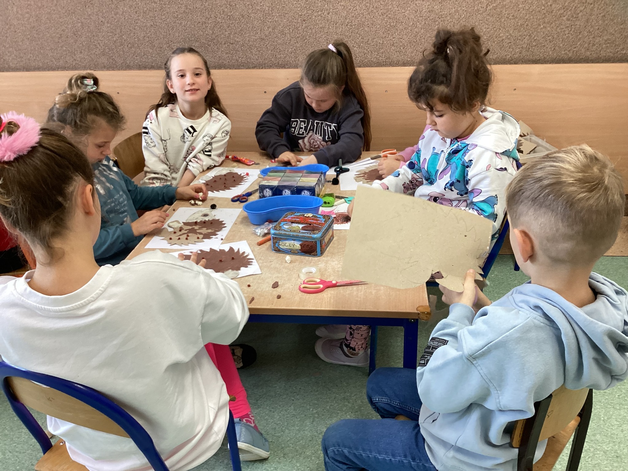 06.11.2025 r. korzystając z pięknej listopadowej pogody wybraliśmy się do lasu. Obserwowaliśmy liście i rozpoznawaliśmy drzewa. Zbieraliśmy gałęzie do leśnego szałasu i obserwowaliśmy wysokie korony drzew iglastych. Udało nam się znaleźć pająki, konary porośnięte grzybami i norki zwierząt. Spędziliśmy bardzo przyjemnie ten jesienny czas.