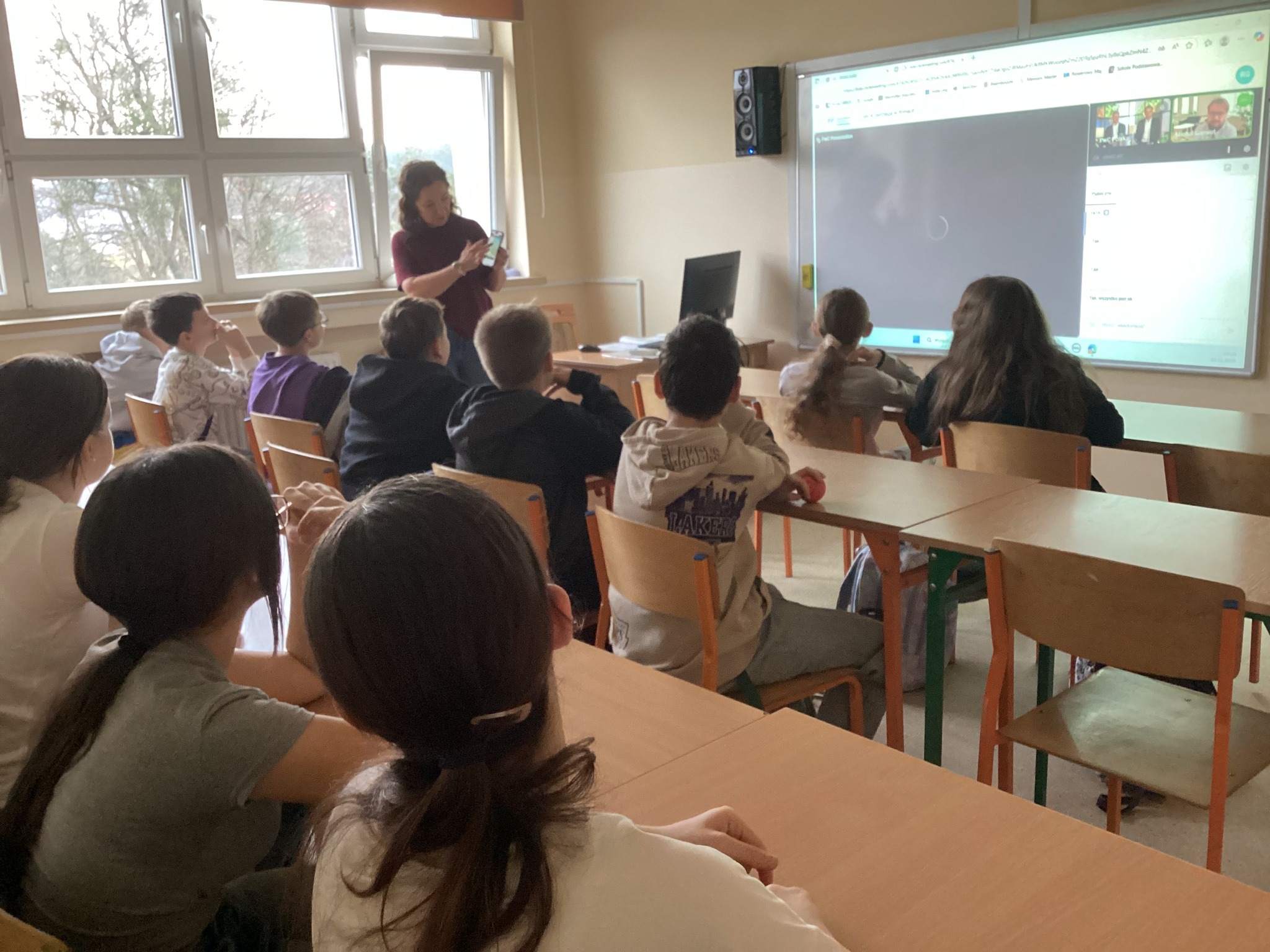 Uczniowie klasy 6c uczestniczyli w lekcji online: „Jak AI pomaga w firmach” organizowanej przez Warszawski Instytut Bankowości. Uczestnicy dowiedzieli się m.in., że AI to nie tylko chat GPT, a także jak się wdraża sztuczną inteligencję w firmach. Po obejrzeniu lekcji uczniowie rozmawiali o tym, jakie zawody mogą w przyszłości zostać wyparte przez AI.