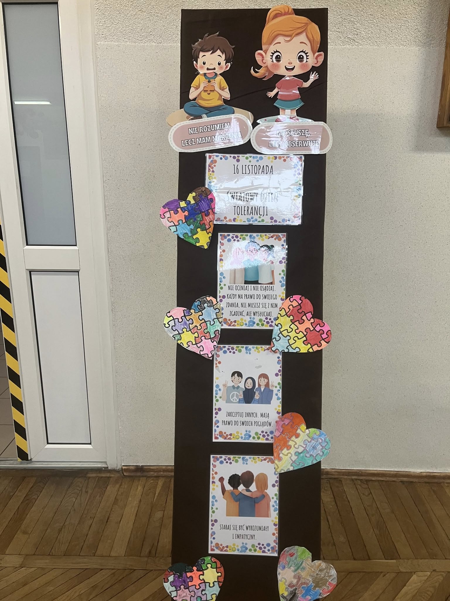 17 listopada obchodziliśmy Światowy Dzień Tolerancji, który przypada 16 listopada, aby promować poszanowanie, akceptację, empatię oraz zrozumienie między ludźmi o różnych kulturach, poglądach i stylach życia. Młodsi i starsi uczniowie włączyli się w akcje oglądając film edukacyjny, wykonując pracę plastyczną ,,Serce puzzle. Natomiast 18 listopada klasa 1c mogła uczestniczyć wyjątkowych warsztatach przeprowadzonych przez p. Karolinę i p. Beatę z fundacji ,,MOC SERC pt.: ,,Budujemy zrozumienie. Razem o niepełnosprawności. Podczas warsztatów uczniowie mogli nie tylko poznać, czym zajmuje się fundacja, ale również wczuć się w rolę osób z różnymi dysfunkcjami. Dzięki specjalnie przygotowanym ćwiczeniom mogli, poczuć, doświadczyć i w pełni przeżyć sytuacje, z którymi na co dzień mierzą się osoby z niepełnosprawnościami. Było to wartościowe i poruszające doświadczenie, które poszerzyło ich świadomość oraz wrażliwość na potrzeby innych.DZIĘKUJEMY!!!