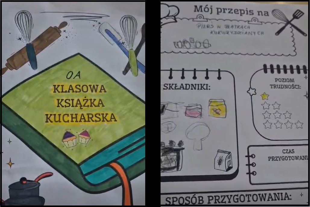 Dzieci z klasy 0A biorące udział w Ogólnopolskim Projekcie "To jest Polska, tutaj mieszkam", z zaangażowaniem wykonały kolejne, bo już 6 zadanie wynikające z udziału w projekcie. Rozmawialiśmy na temat kuchni polskiej oraz regionalnej. Przy pomocy książek z przepisami kuchni polskiej stworzyliśmy Klasową Książkę Kucharską z ulubionymi potrawami dzieci.