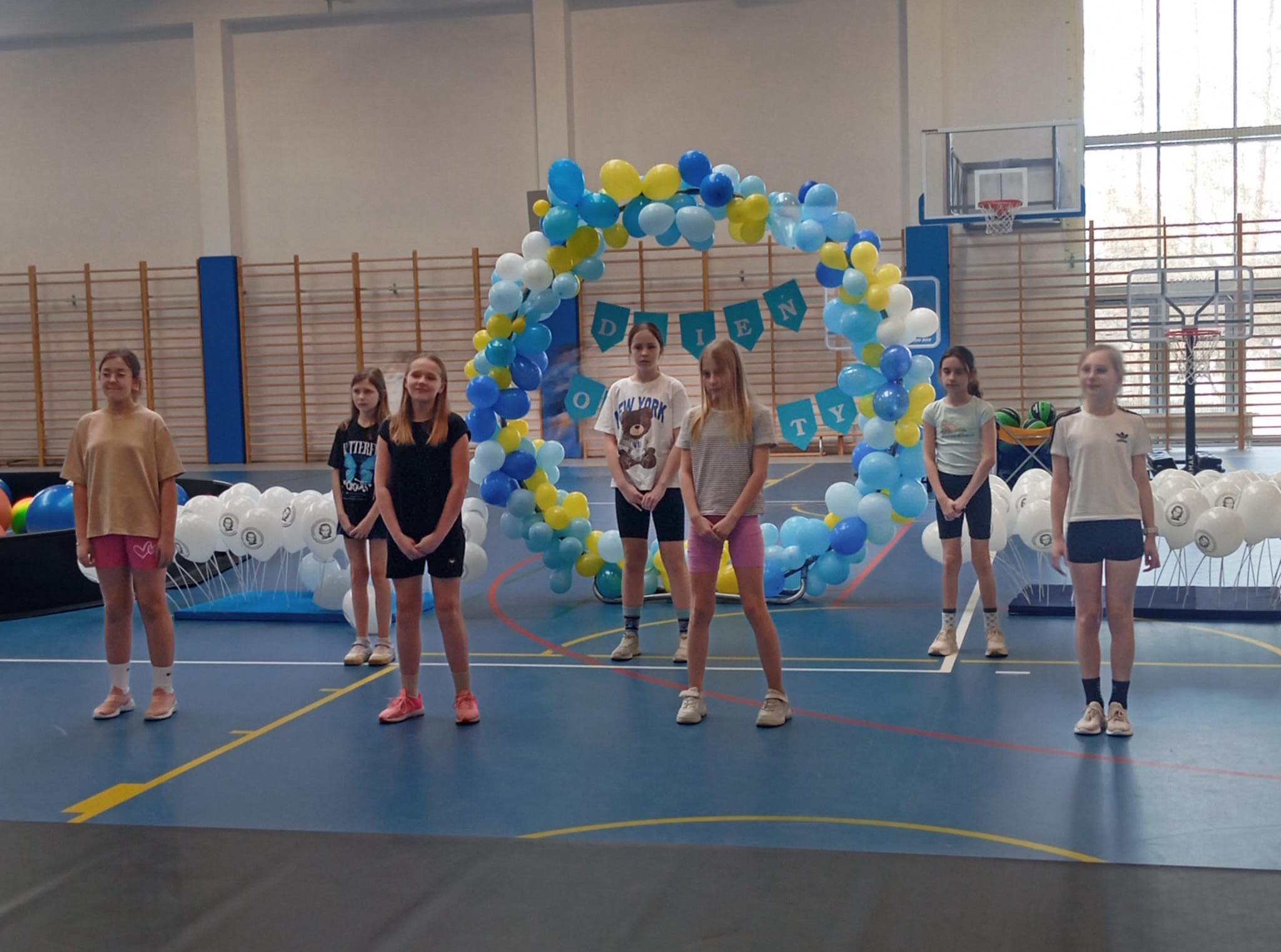 Skład reprezentacji ,,Piątki ": Zosia 8d, Nadia 8d, Martyna 8c, Agata 8b, Agata 8a, Zuzia 8a, Maja 7b, Zuzia 7b, Oliwia 7a, Nikola 7d, Helena 7dOpiekun - pani Magda Człapińska