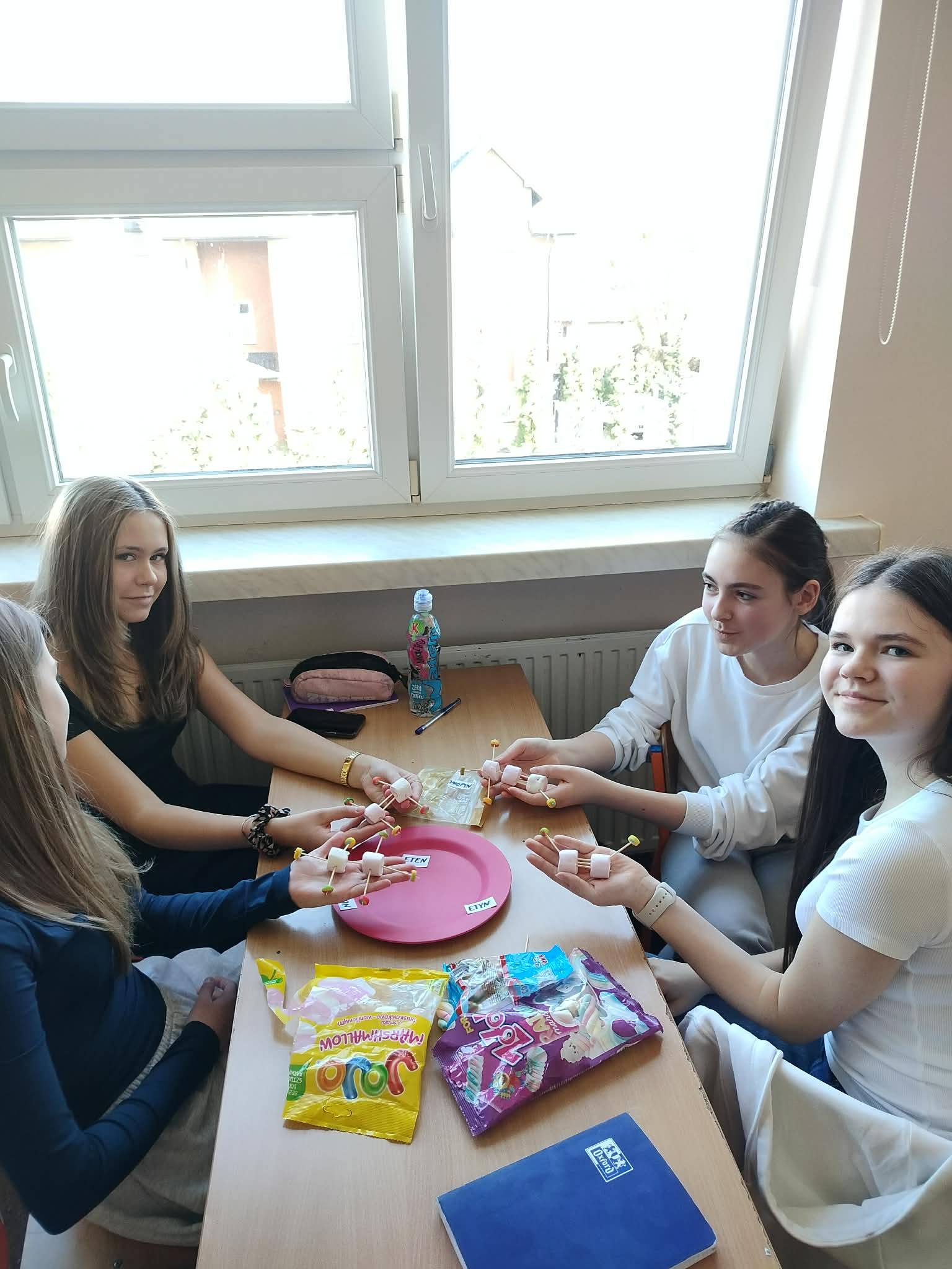 Uczniowie podczas zajęć utrwalali wzory i nazwy węglowodorów. Smakołyki, gra memory i Kahoot były pomocnymi narzędziami podczas tej lekcji.