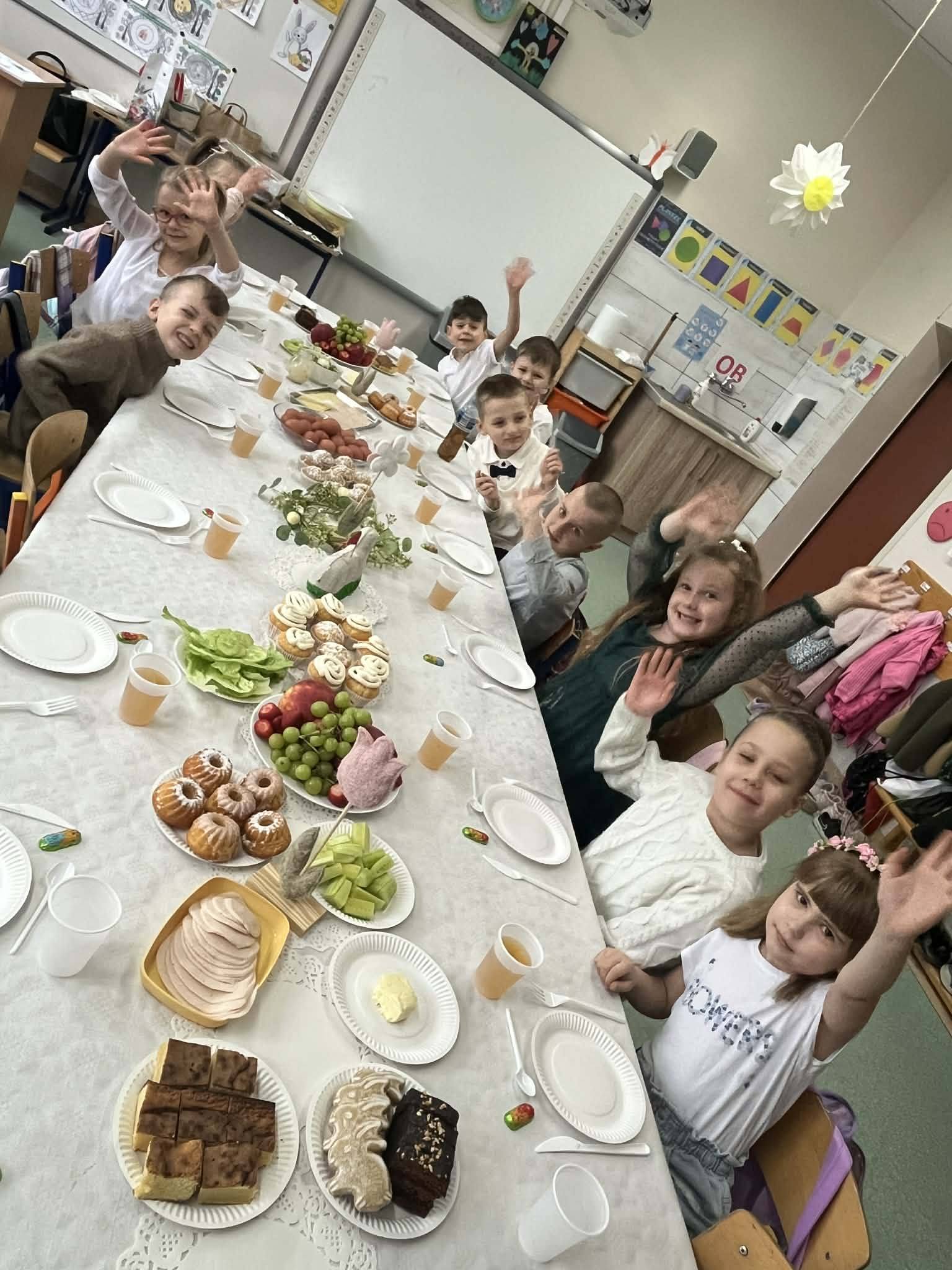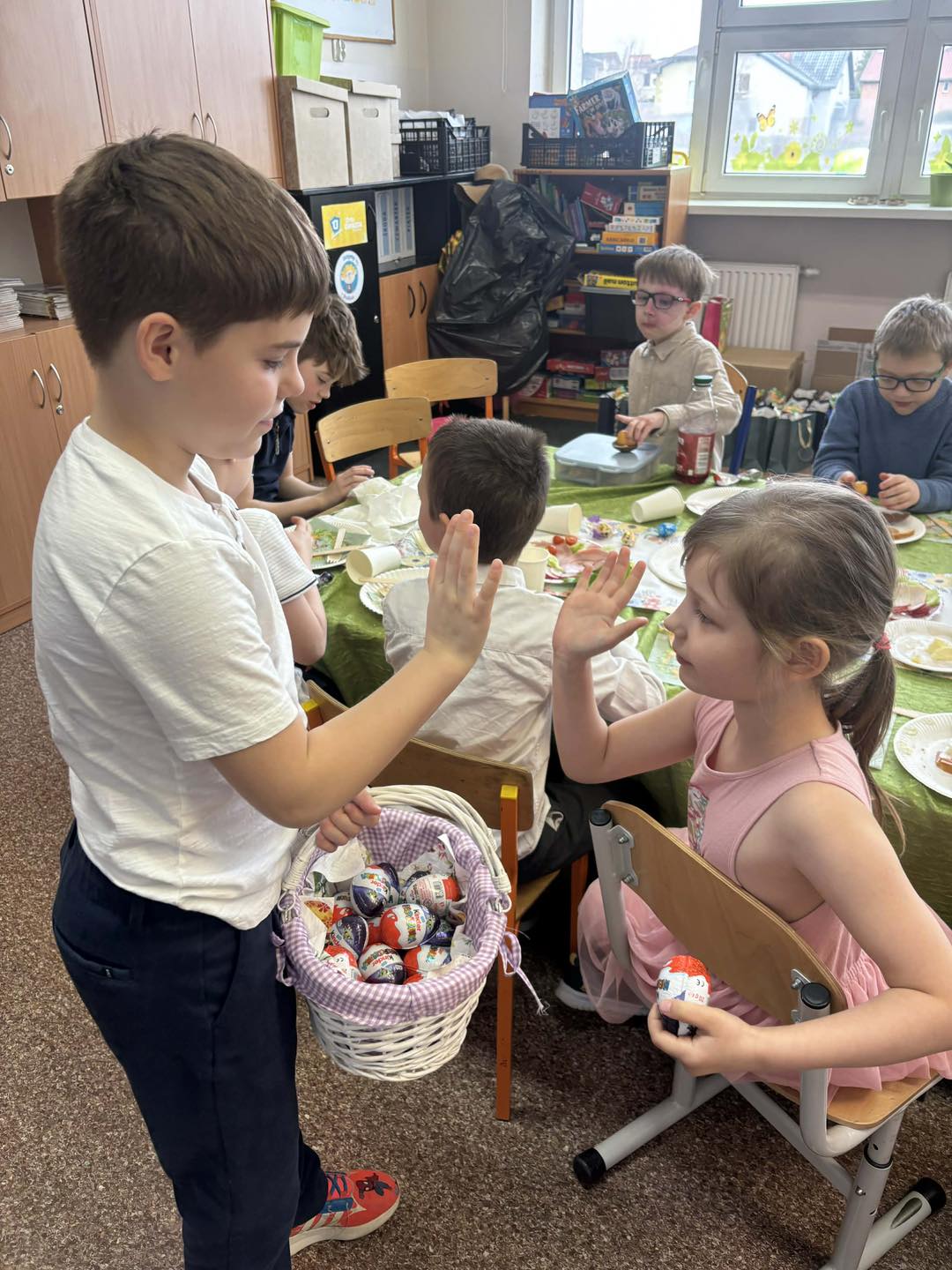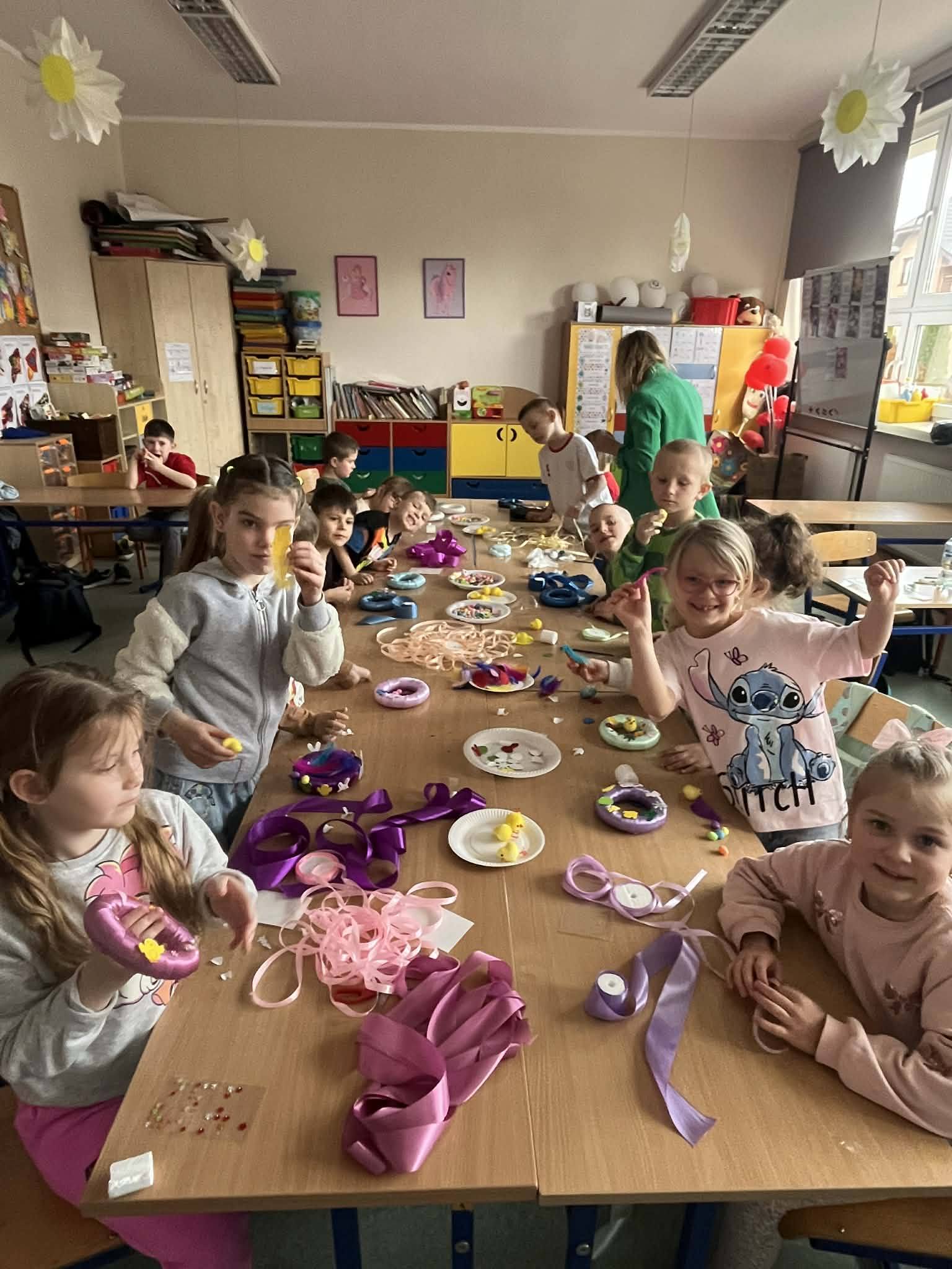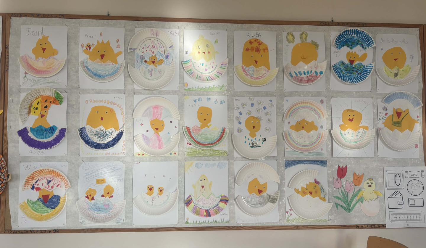 Podczas zajęć przedświątecznych klasa 0 B aktywnie i z dużym zaangażowaniem uczestniczyła w rozmowach oraz działaniach związanych z tematyką Wielkanocy. Dzieci dzieliły się swoimi doświadczeniami dotyczącymi przygotowań świątecznych w domach, opowiadały o znanych im tradycjach oraz zwyczajach wielkanocnych. Rozmawialiśmy również o tym, jak święta obchodzone są w innych krajach, co wzbudziło duże zainteresowanie i ciekawość uczniów.