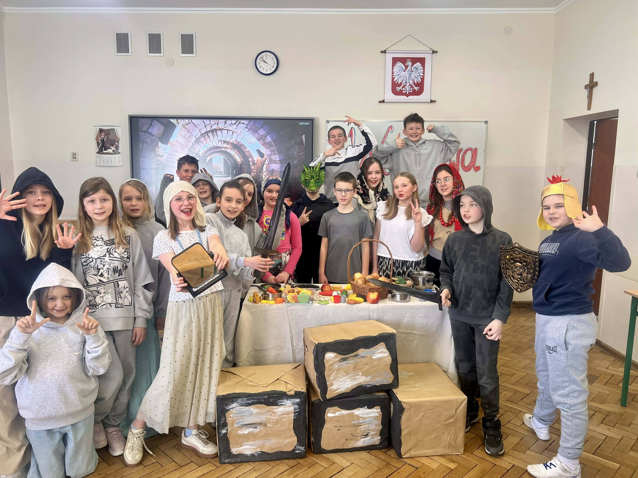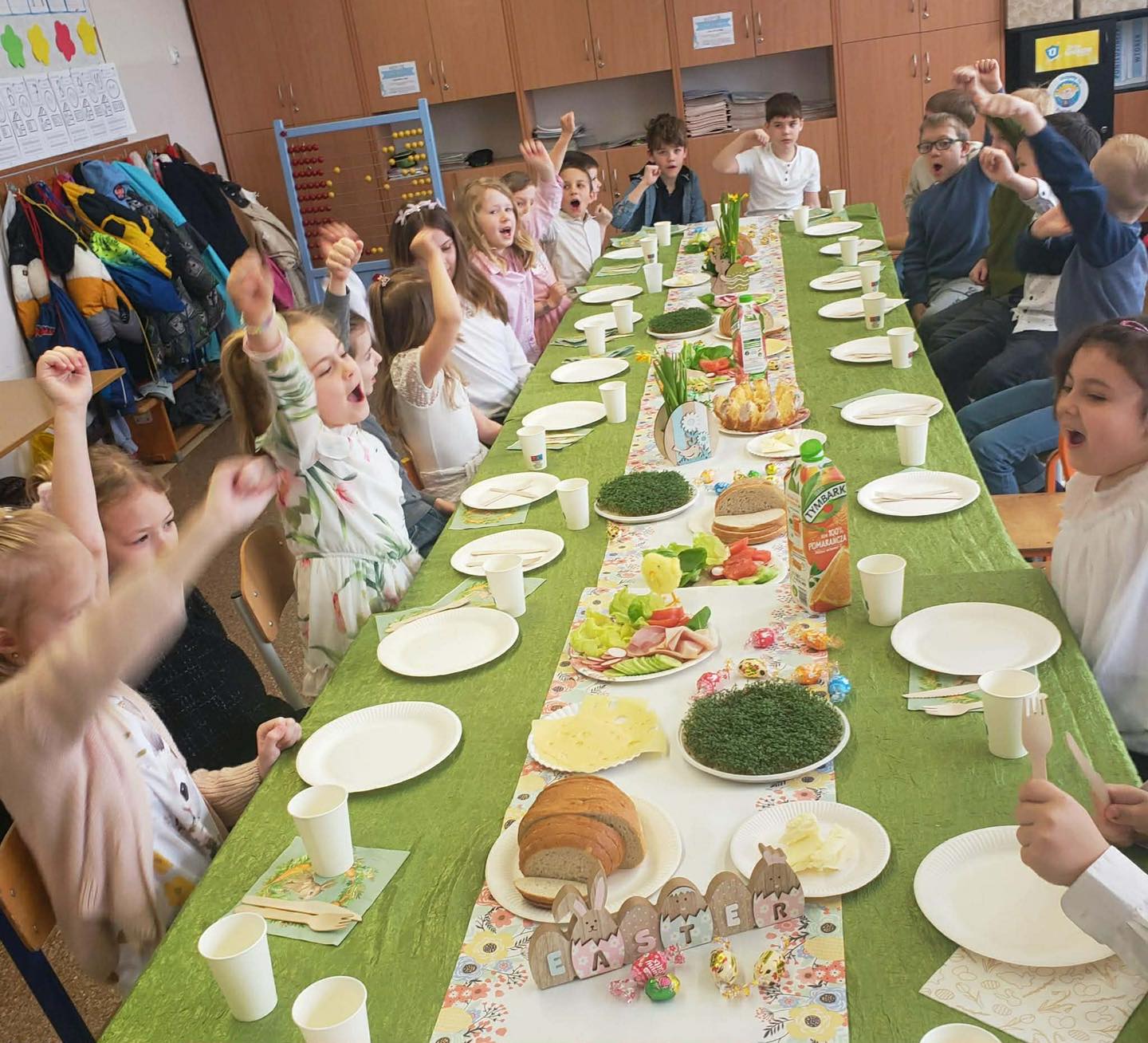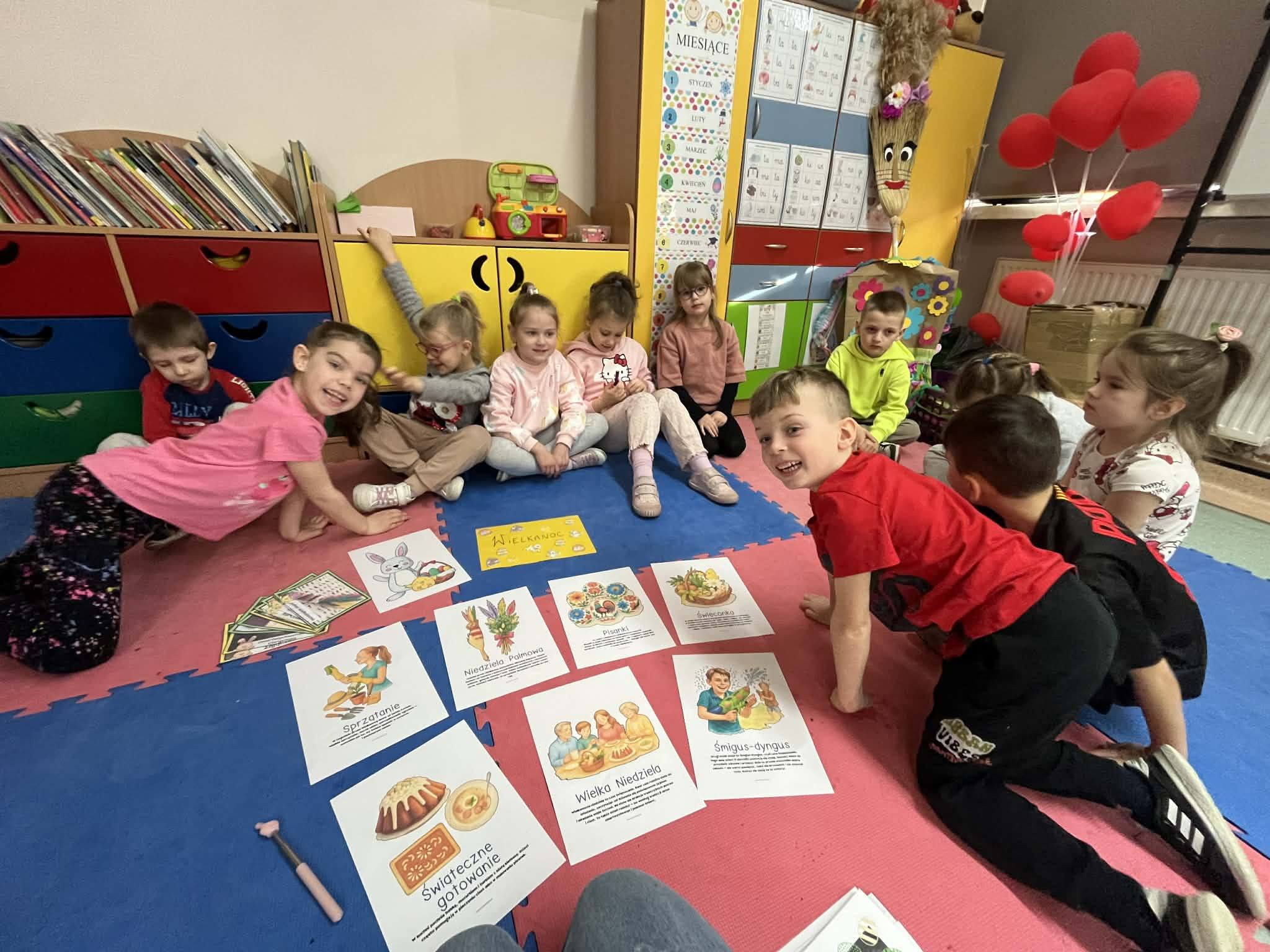 Podczas zajęć przedświątecznych klasa 0 B aktywnie i z dużym zaangażowaniem uczestniczyła w rozmowach oraz działaniach związanych z tematyką Wielkanocy. Dzieci dzieliły się swoimi doświadczeniami dotyczącymi przygotowań świątecznych w domach, opowiadały o znanych im tradycjach oraz zwyczajach wielkanocnych. Rozmawialiśmy również o tym, jak święta obchodzone są w innych krajach, co wzbudziło duże zainteresowanie i ciekawość uczniów.
