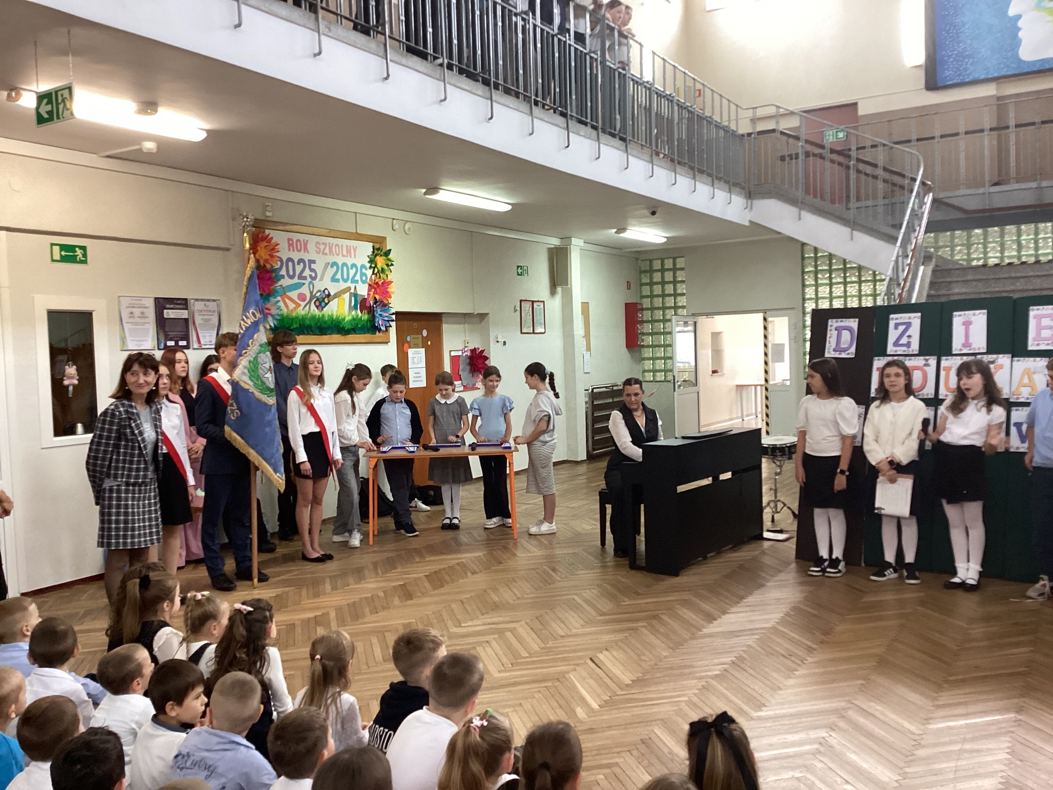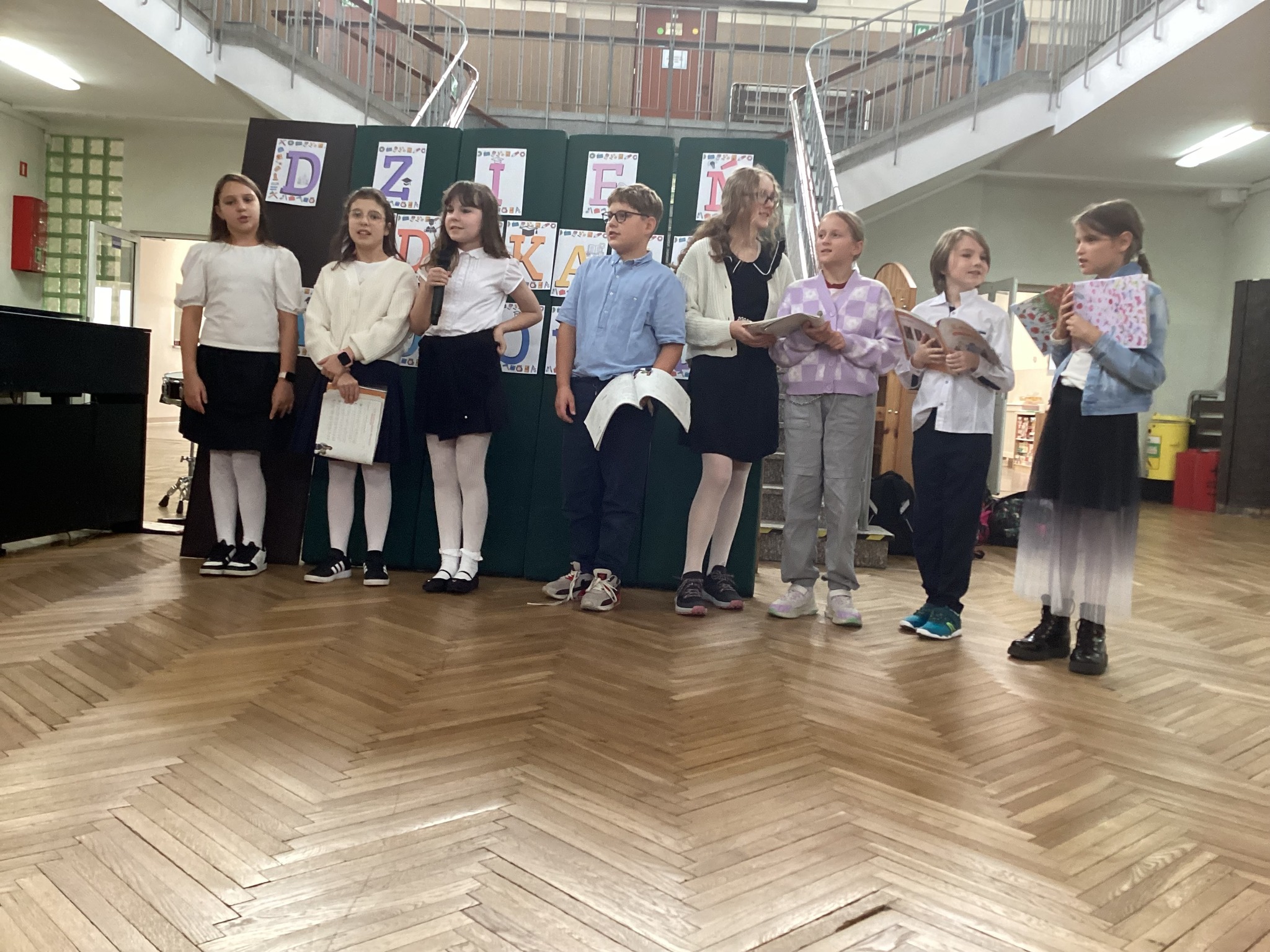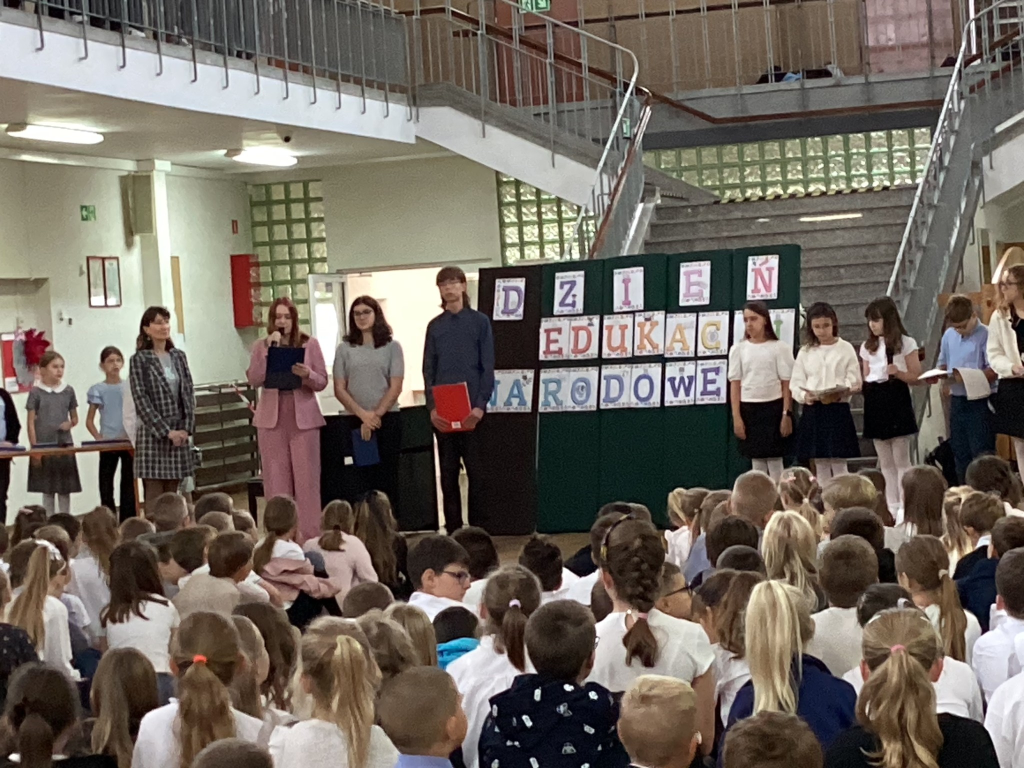 Dzisiaj podczas miejskiej uroczystości DNIA EDUKACJI NARODOWEJ wystąpiły uczennice naszej szkoły: Natalia Kur z klasy 6a oraz Kinga Basendowska z klasy 7b.