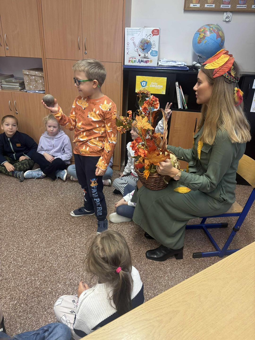 23 października w klasie 1b dzieci odkrywały jesienne skarby – owoce, warzywa, kasztany i kolorowe liście. Segregowały dary jesieni, utrwalały cyfrę 4 układając ją z patyczków i kasztanów, a na koniec stworzyliśmy wspólnie piękny lapbook. Było twórczo, radośnie i kolorowo.