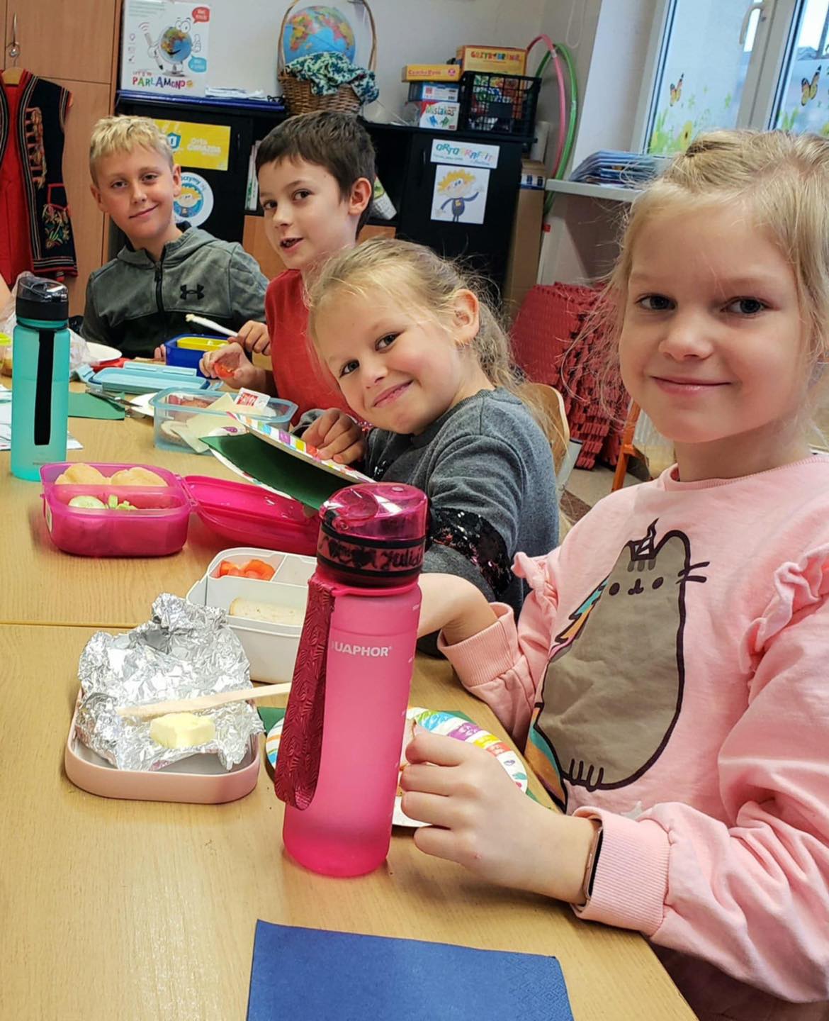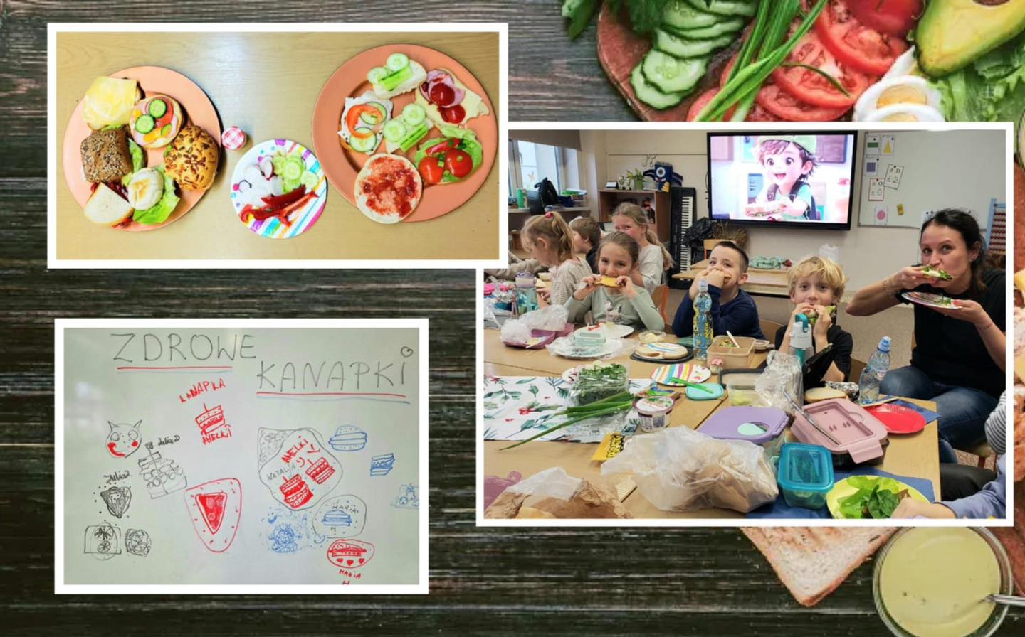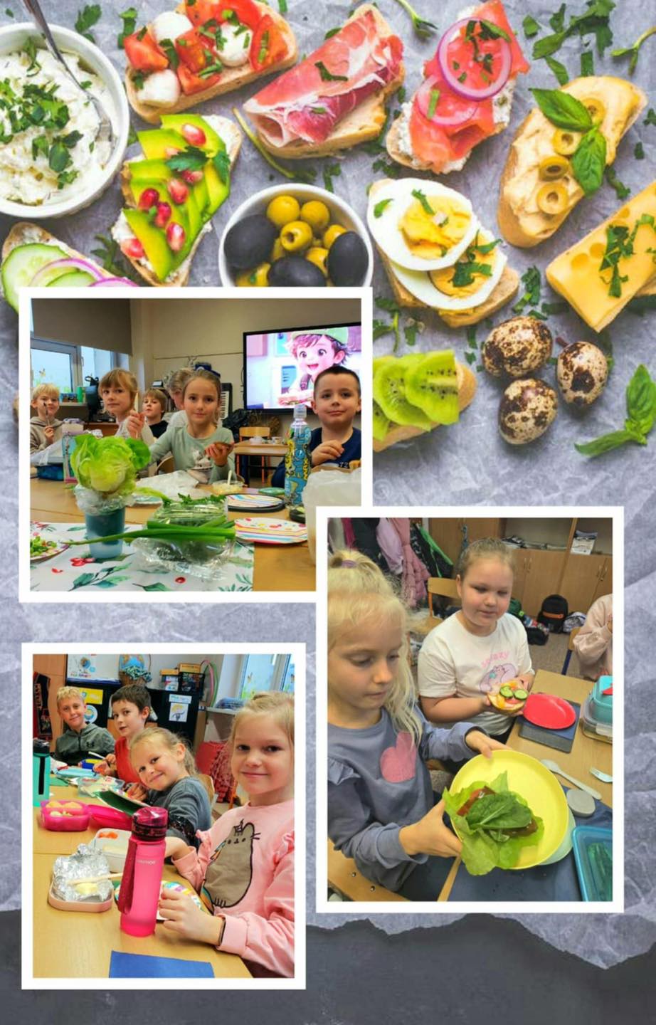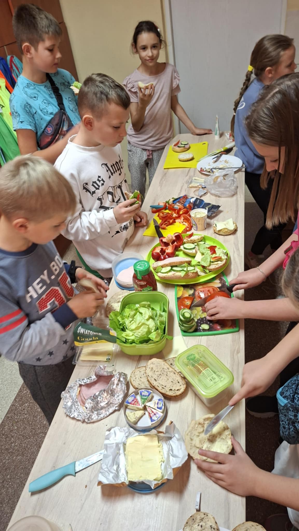 29.10.2025 r. uczniowie z klas: 4a, 4b oraz 5b w ramach zajęć z edukacji zdrowotnej przygotowali pyszne, kolorowe kanapeczki. Jak widać zajęcia o tematyce żywieniowej w formie praktycznej, sprawiły uczniom mnóstwo radości.