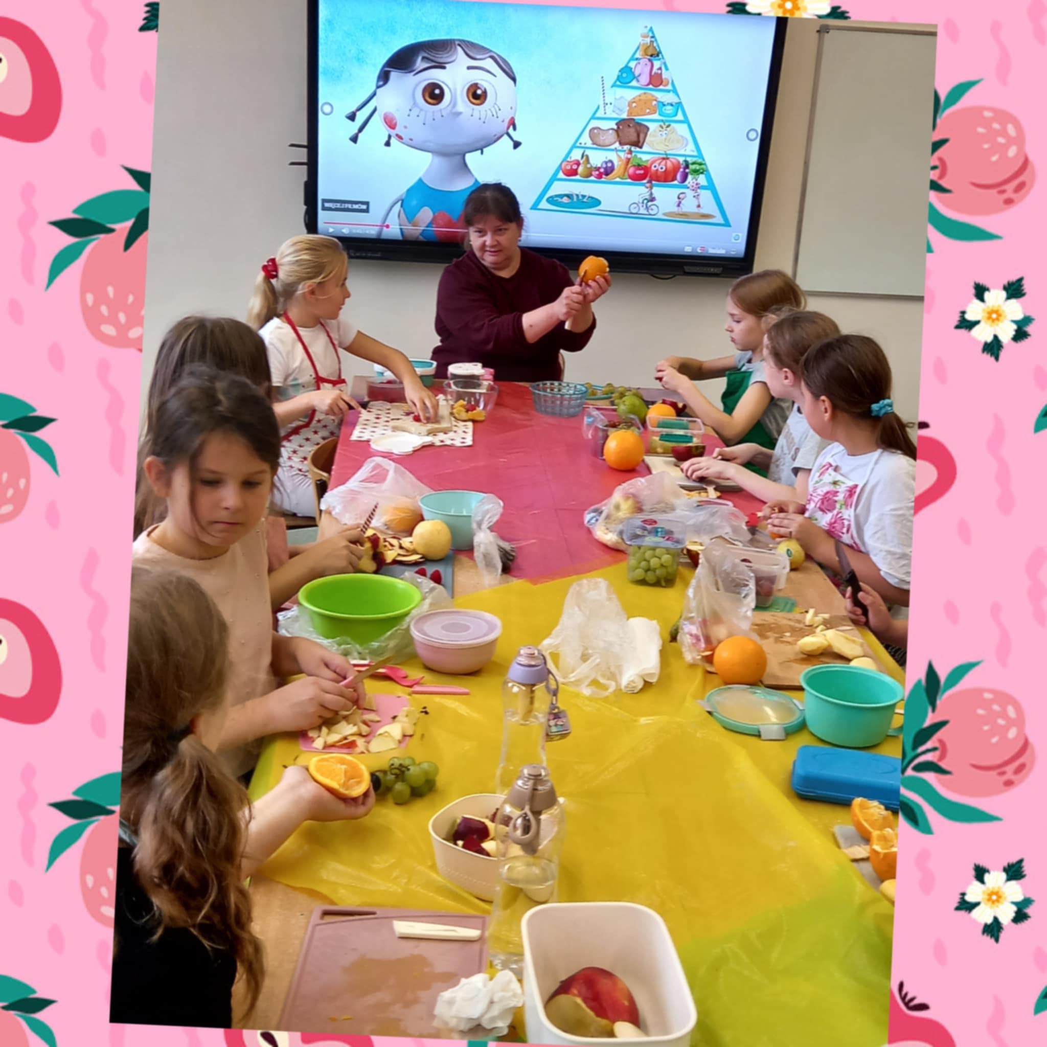 Podczas zajęć z edukacji zdrowotnej uczniowie klasy 3d przypomnieli sobie zasady zdrowego odżywiania, zbudowali piramidę żywieniową, a następnie przystąpili do sporządzenia sałatki owocowej. Było zdrowo, smacznie i kolorowo