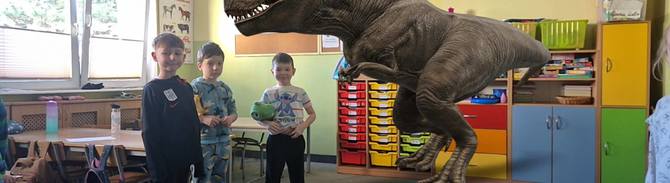 Dzieci poznały ciekawostki o dinozaurach, dowiedziały się, kiedy żyły i dlaczego wyginęły. Obejrzeliśmy film edukacyjny oraz poznaliśmy nazwy dinozaurów. Rozmawialiśmy też o zwierzętach żyjących dziś, np. kura domowa, które są potomkami dinozaurów. Były zagadki, kodowanie, wyścigi dinozaurów oraz gry memory i dopasowywanki. To był dzień pełen nauki i świetnej zabawy! W czwartek 26.02.2026 r. klasa 0A odkrywała fascynujący świat dinozaurów. Wspólnie szukaliśmy ciekawostek w książkach przniesionych przez dzieci i dopasowywaliśmy informacje do przyniesionych figurek oraz maskotek. Nie zabrakło również świetnej zabawy przy kodowaniu oraz budowaniu szkieletu dinozaura.