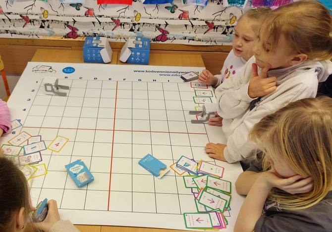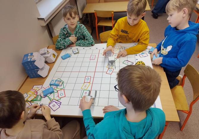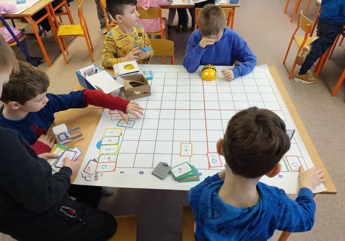 W ramach zajęć z edukacji komputerowej uczniowie klas pierwszych pracowali z Geni Botami. Dzieci wykazały się ogromną kreatywnością w tworzeniu własnych kodów do uruchomienia robotów.