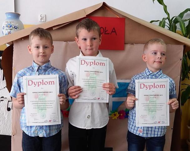 Dnia 25.04.2016 r. odbył się szkolny etap konkursu pt.: „Z BEZPIECZEŃSTWEM ZA PAN BRAT”. Trójka laureatów tego etapu: Andrzej Ulatowski z klasy 1C, Krystian Dzierzba z klasy IE oraz Franciszek Zarzycki z klasy IF, została oddelegowana na miejski etap, który odbył się dnia 18.05.2016 w Społecznej Szkoły Podstawowej w Wejherowie. Przedstawiciele prawie wszystkich wejherowskich szkół zmagali się ze znajomością znaków drogowych, łamigłówkami, rebusami, zagadkami i krzyżówkami dotyczącymi tematyki bezpieczeństwa. Pierwszaki walczyły dzielnie, a różnice punktowe między trzyosobowymi drużynami były naprawdę niewielkie. Drużynie z Naszej szkoły udało się wywalczyć, wspaniałe II miejsce za co im serdecznie gratulujemy i dziękujemy !