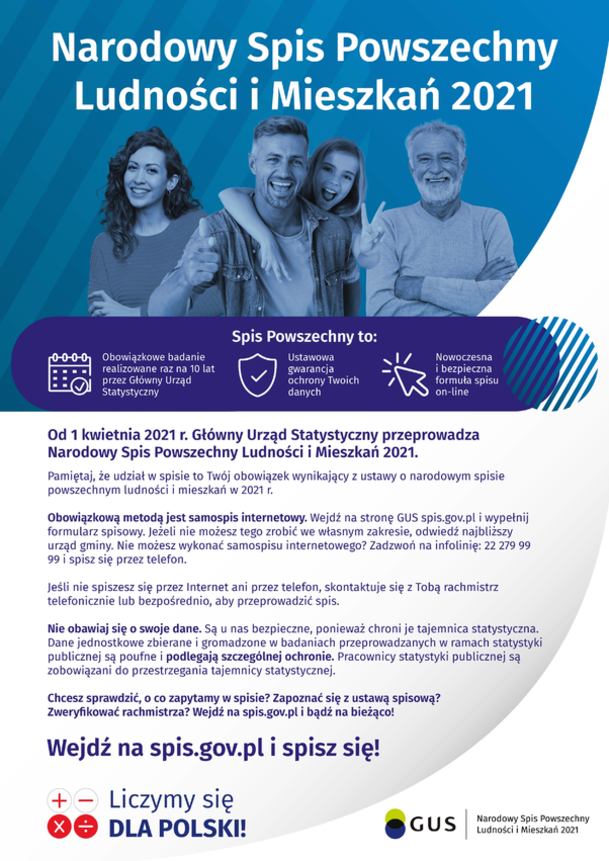 w Polsce już od 100 lat – Narodowy Spis Powszechny Ludności i Mieszkań 2021. Z wyników spisu korzystamy wszyscy, są podstawą do podejmowania kluczowych decyzji zarówno na szczeblu krajowym, jak i regionalnym i lokalnym.