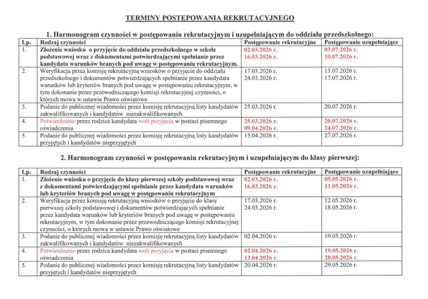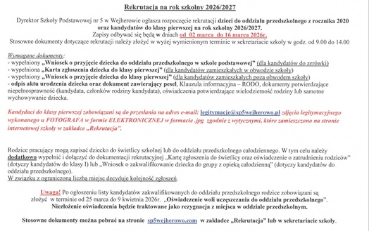 Rekrutacja na rok szkolny 2026/2027